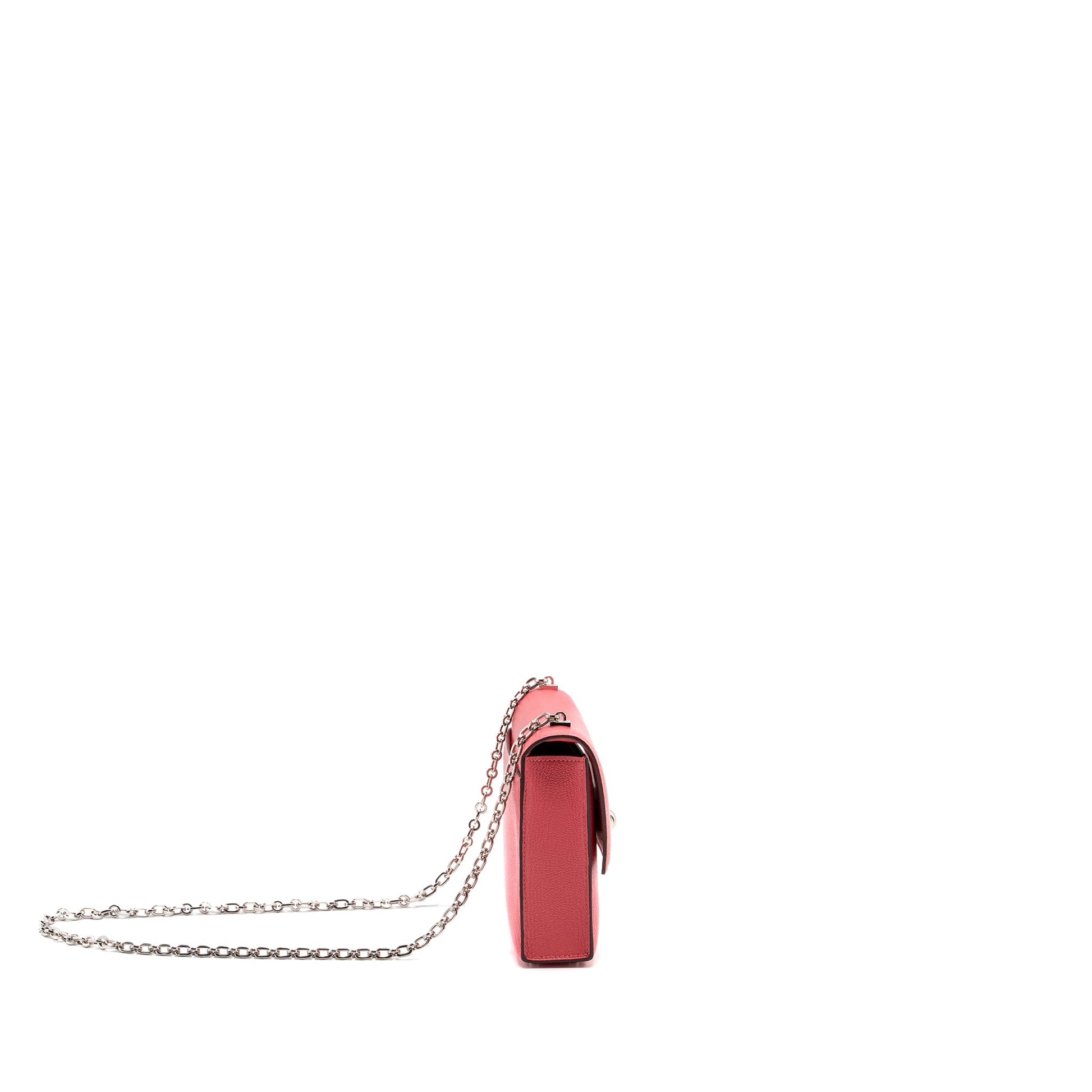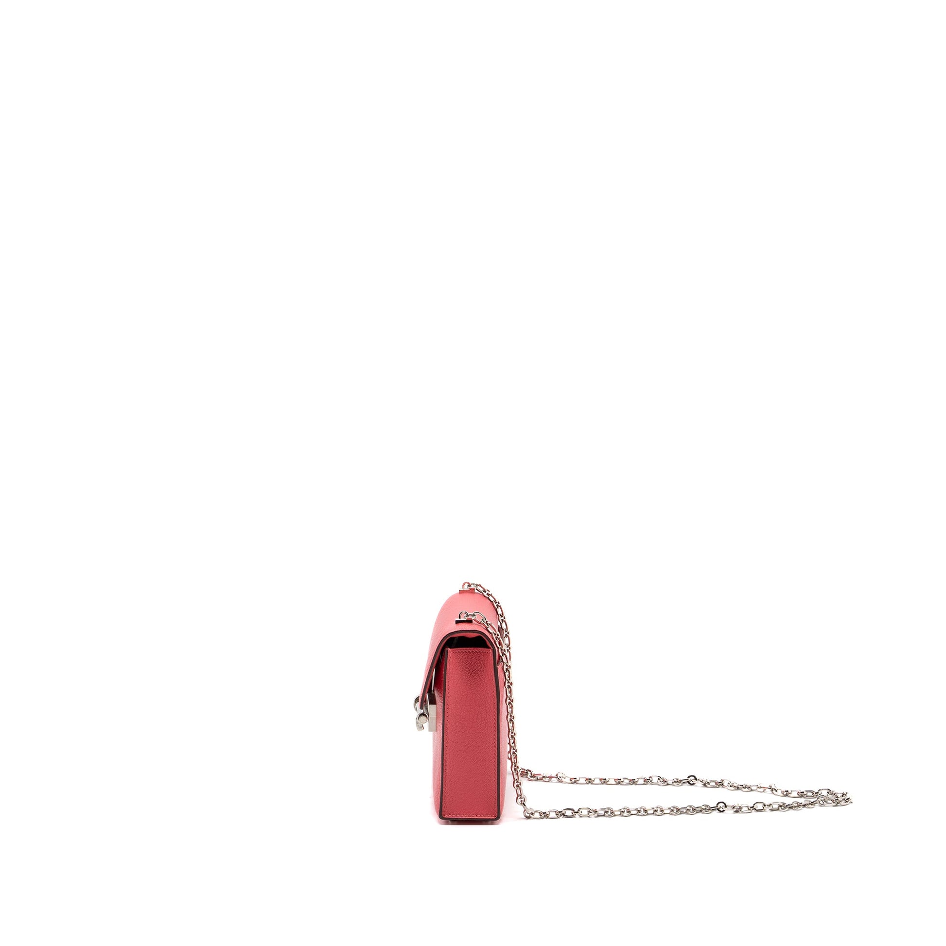 Details: Condition : 9.9/10 New ( This item is in excellent conditionwith m inor scratches on hardware.) Colour: Rose Lipstick Hardware Colour: Silver Tone Measurement: Length: 17 cm Height: 13.5 cm Depth: 4 cm Chain Drop: 41 cm Material : Chvre Mysore Leather Stamp: C Origin :
