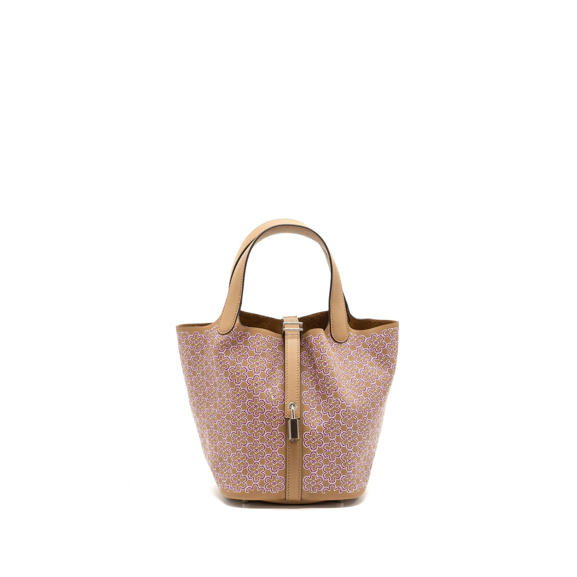 Hermes picotin 18 lucky daisy lock bag swift chai-rose-blanc / rose SHW stamp U