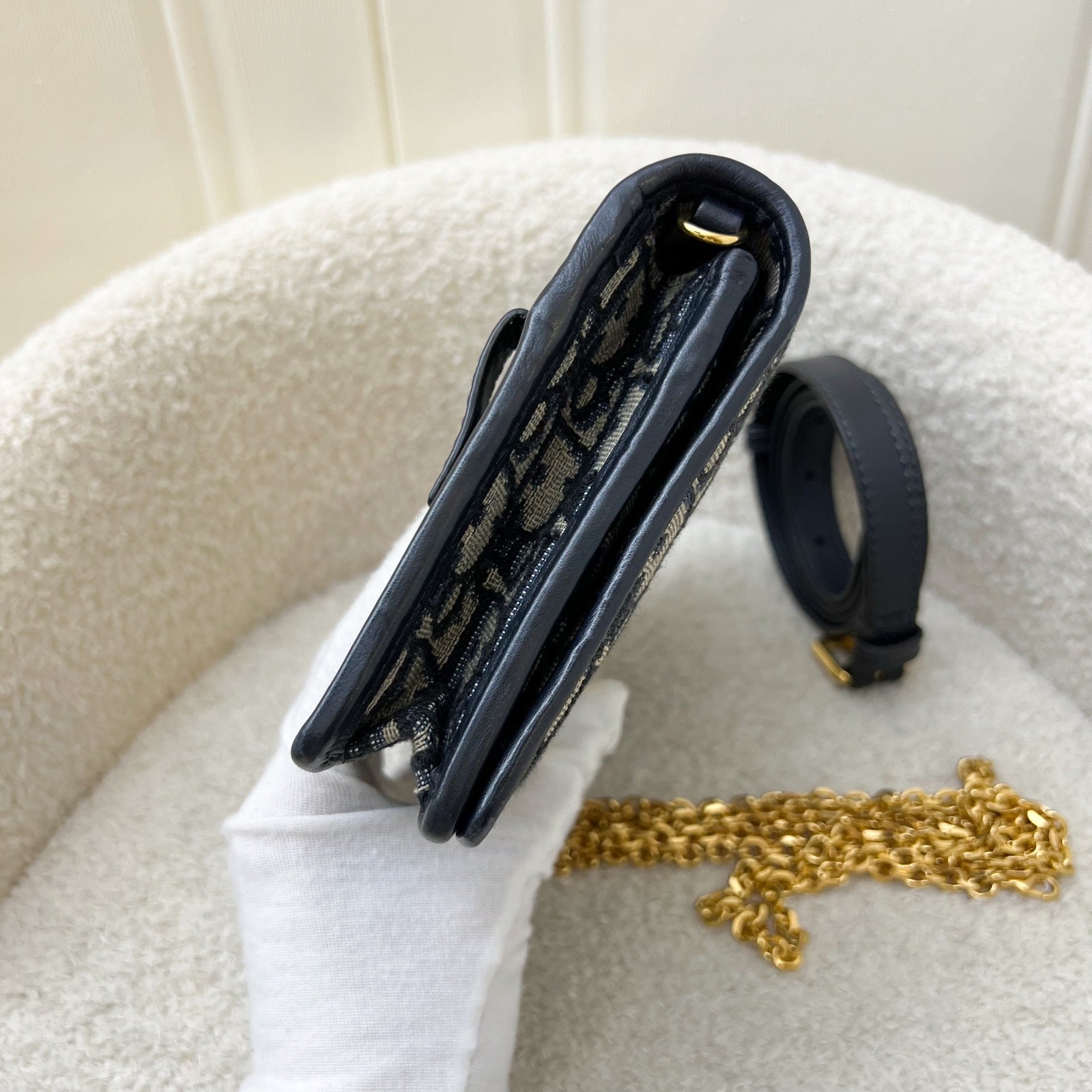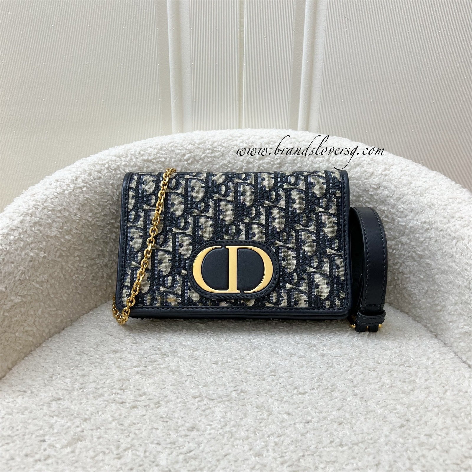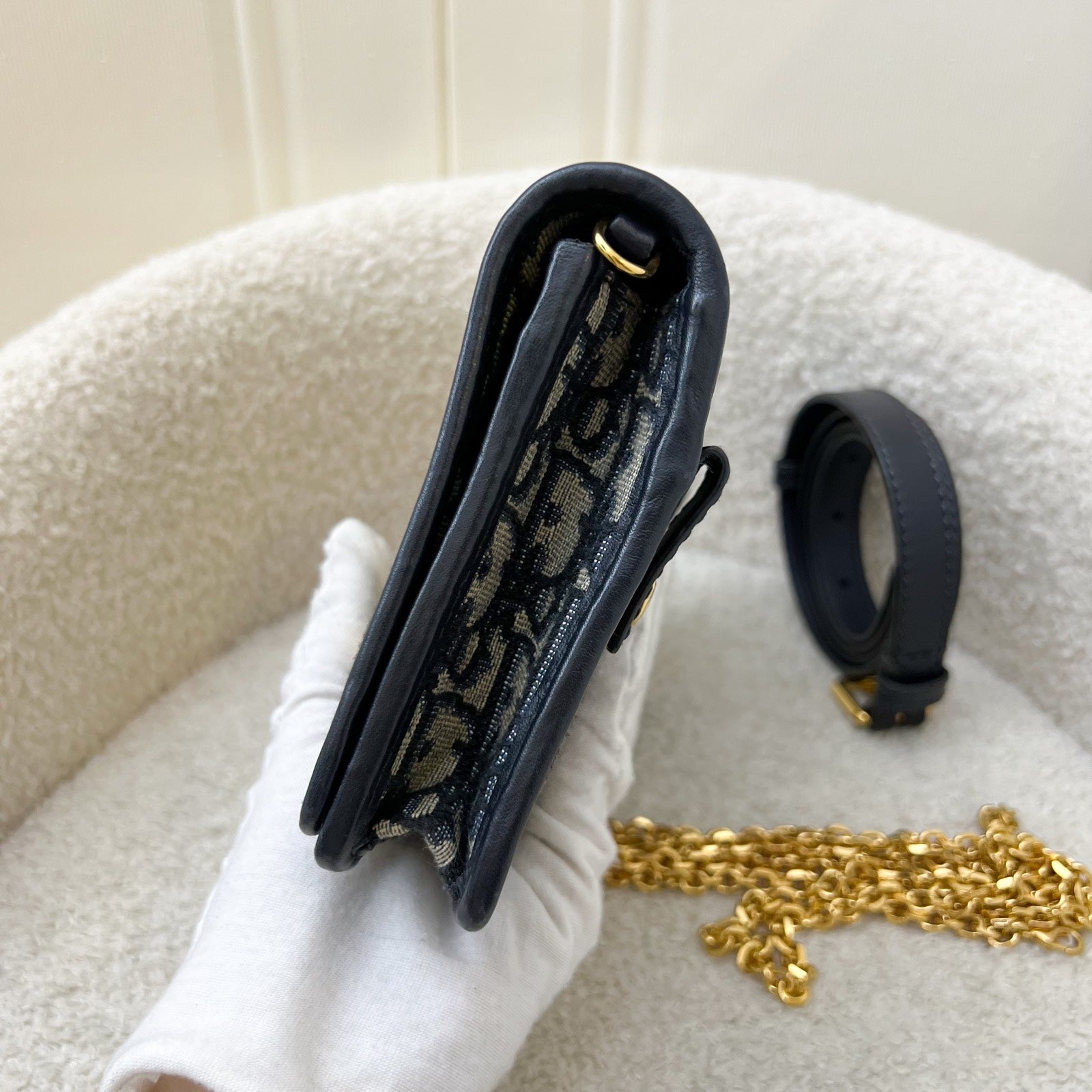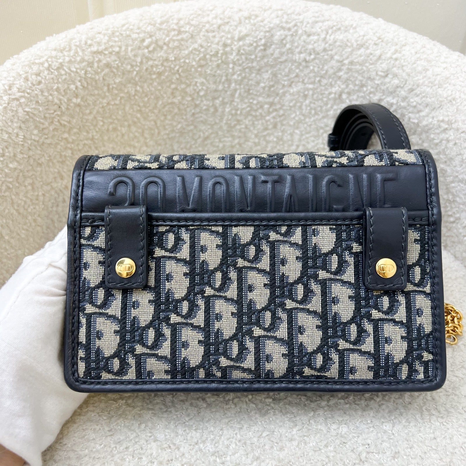 Dior 2-in-1 30 Montaigne Pouch / Wallet on Chain WOC in Navy Oblique Canvas GHW