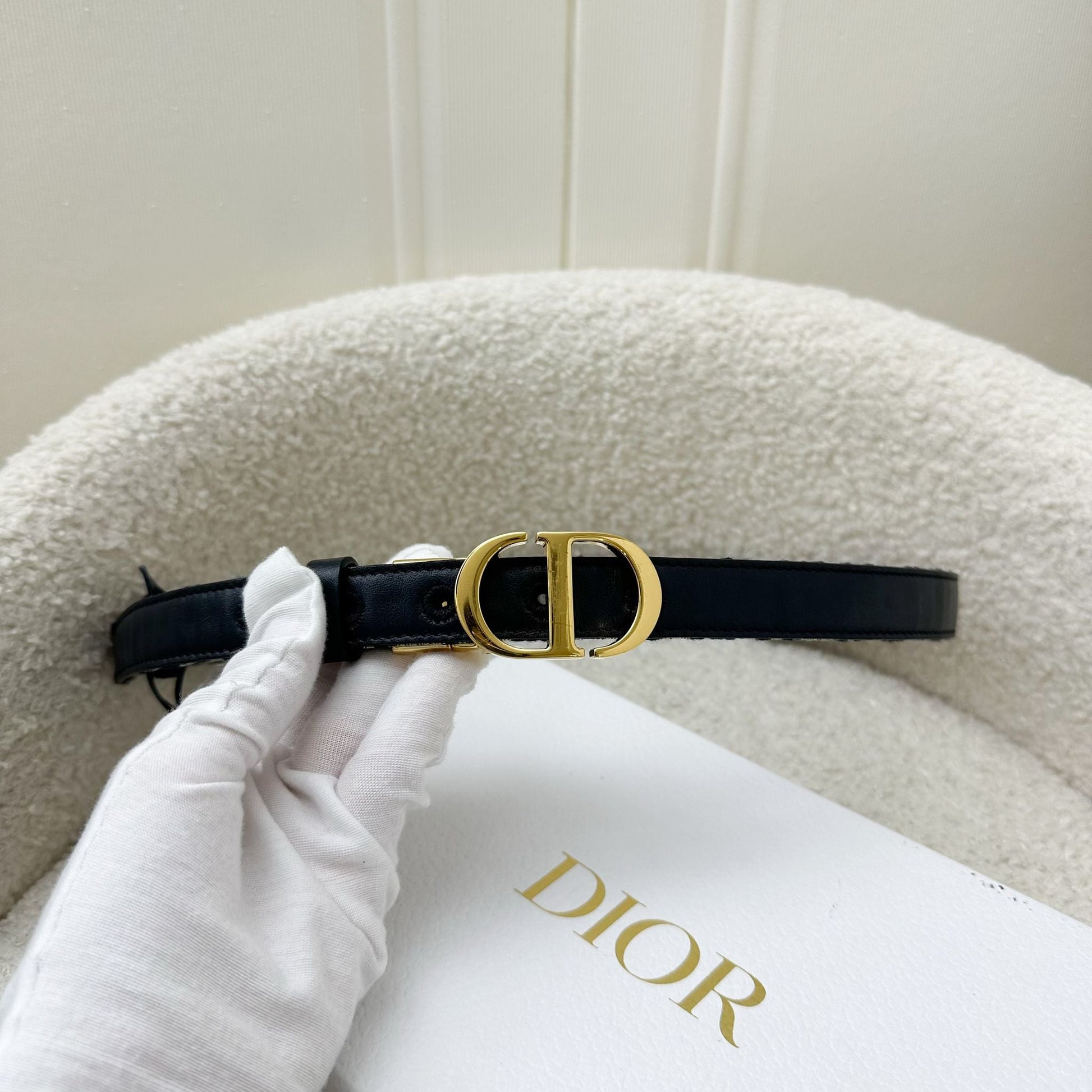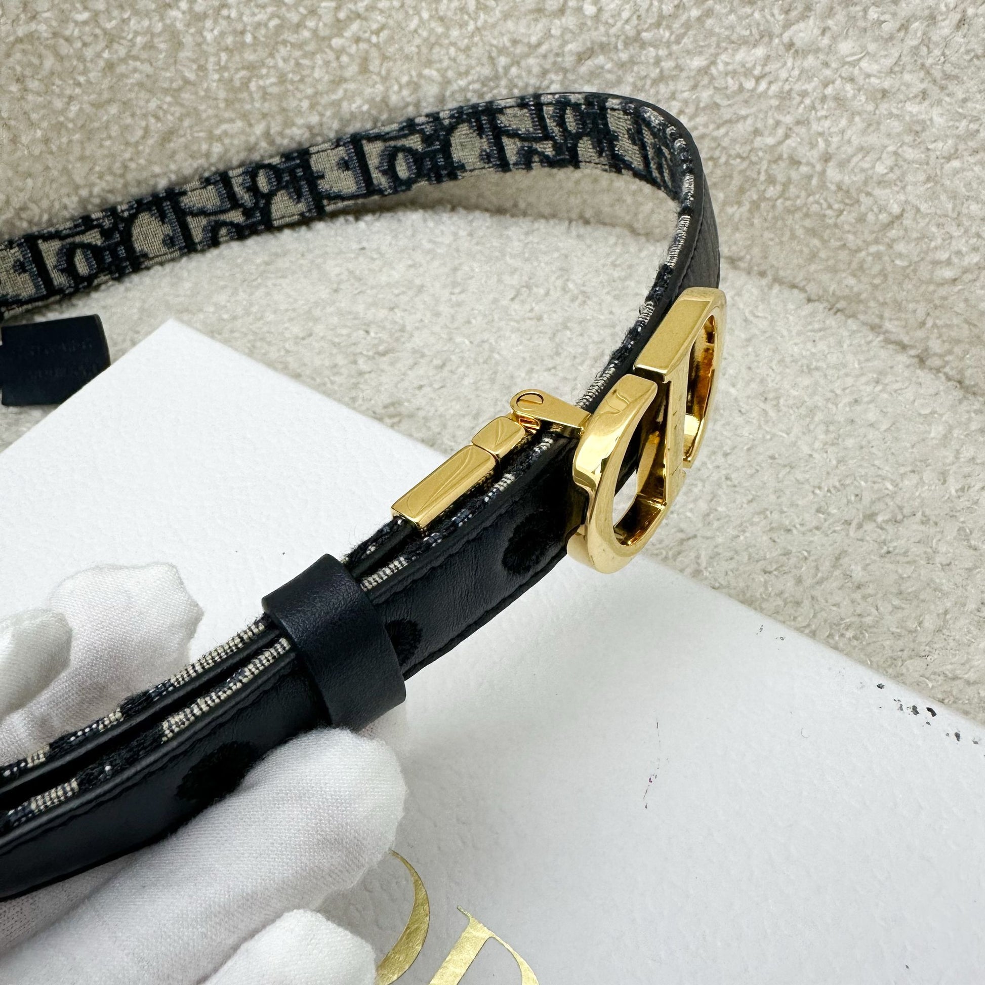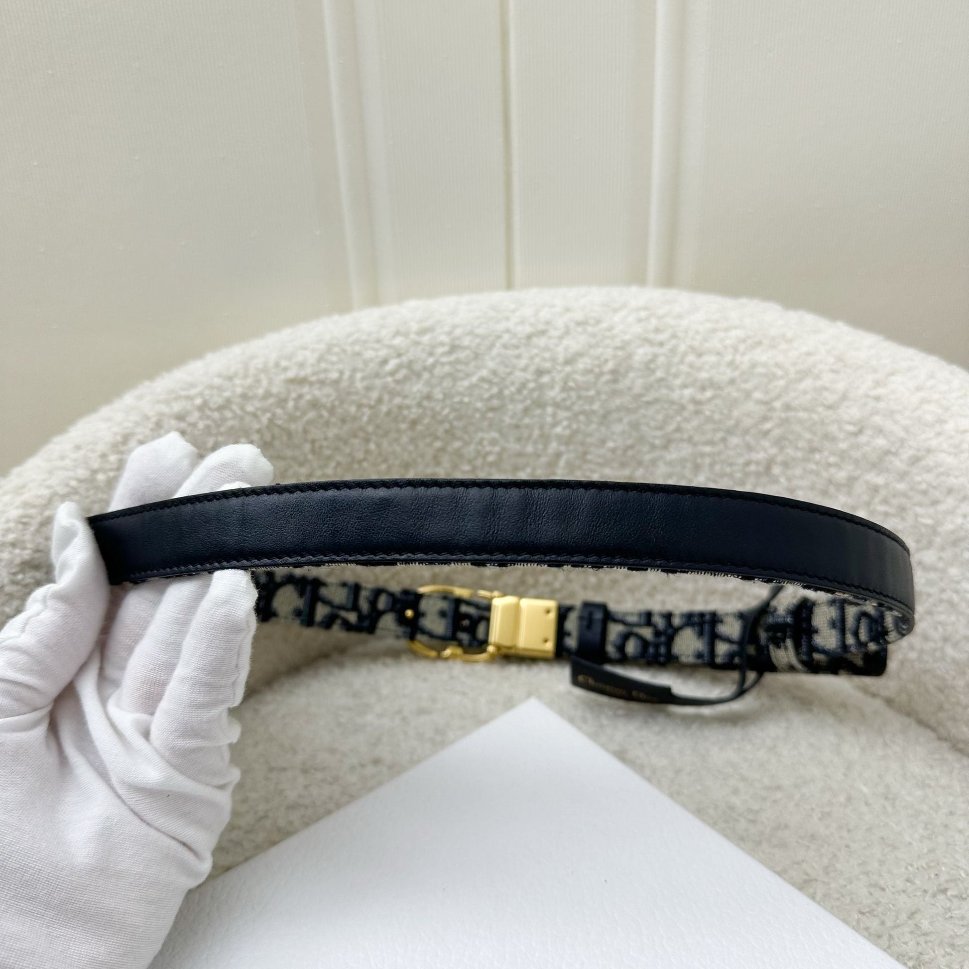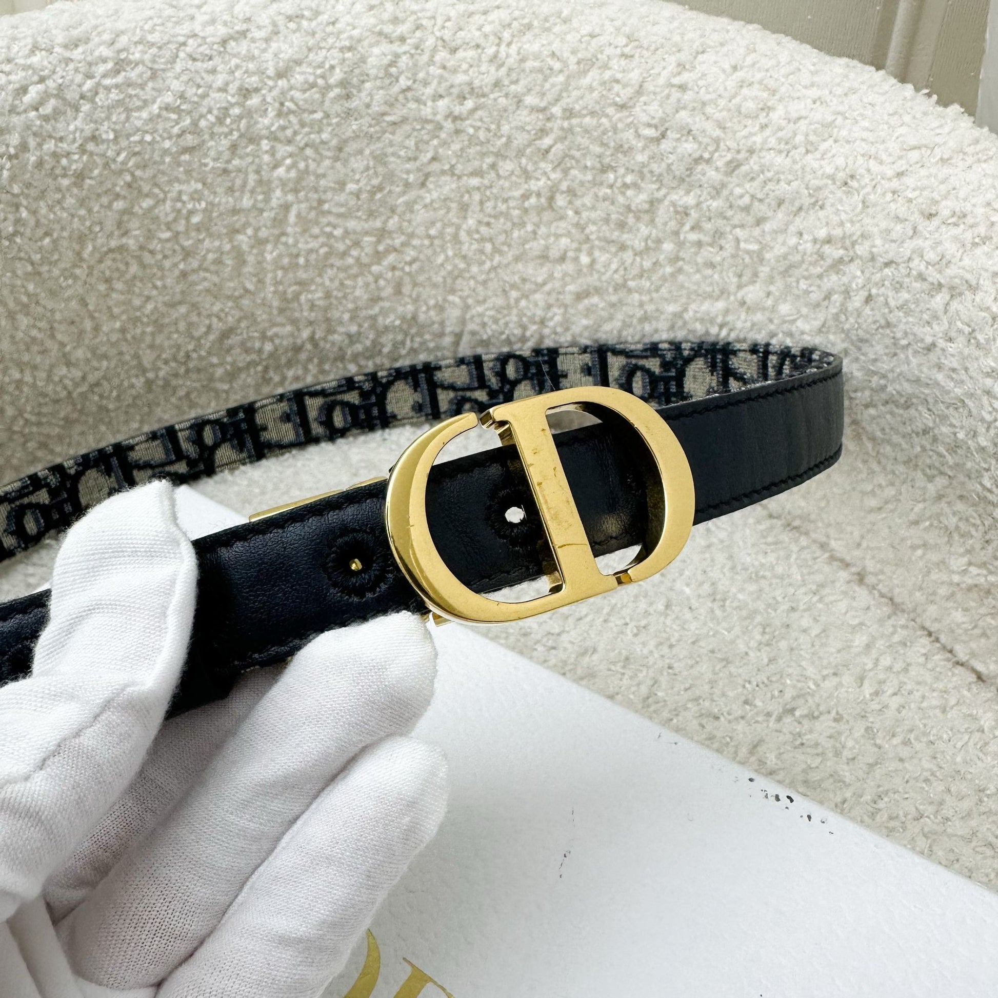 Dior 30 Montaigne Reversible Women Belt in Blue Smooth Calfskin / Dior Oblique Canvas and GHW