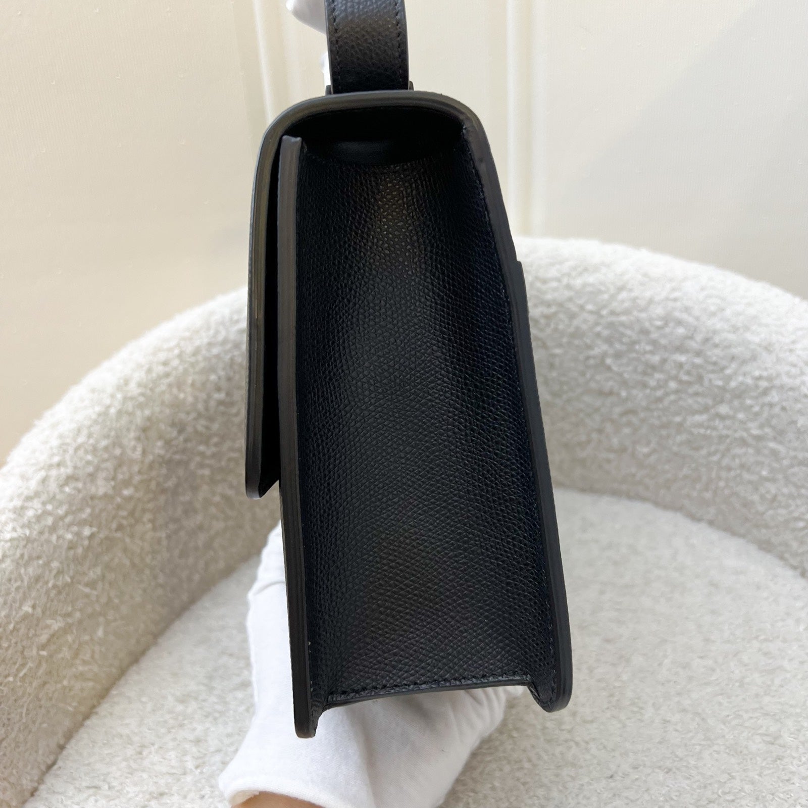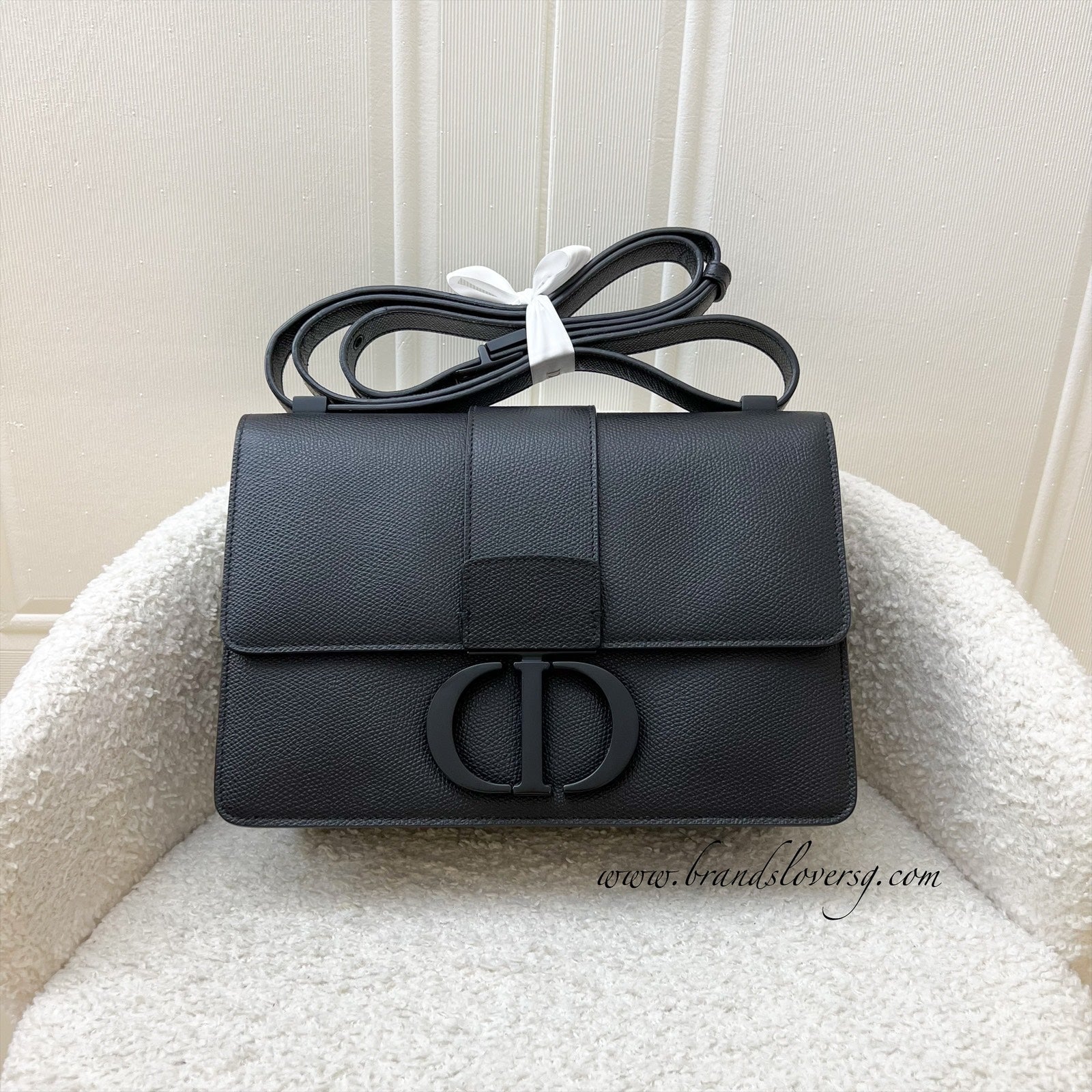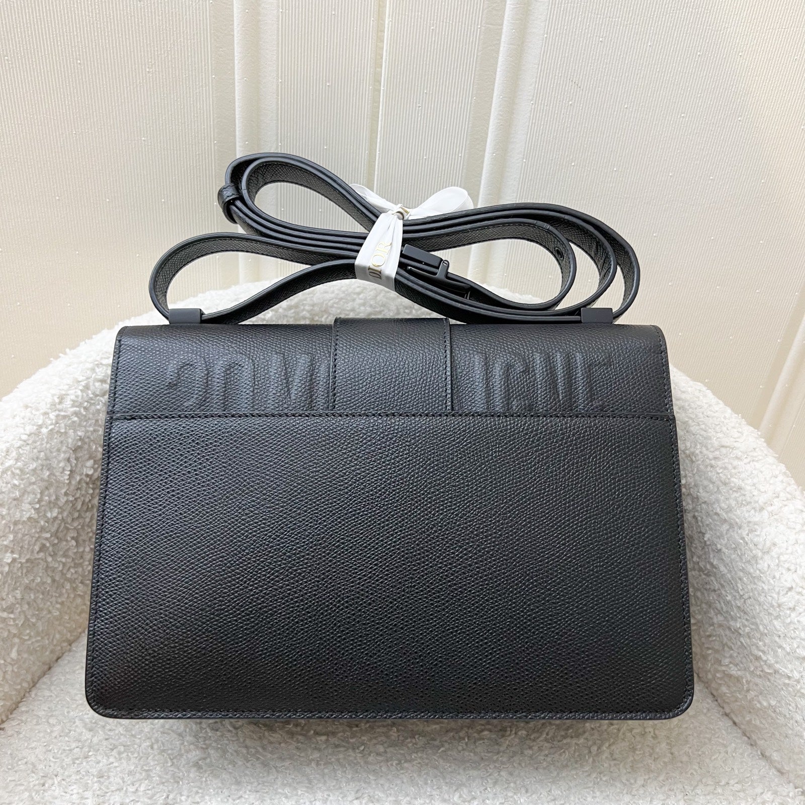 Dior 30 Montaigne Flap Bag in Ultramatte Grained Black Leather and BHW (Model: M9203SBFK)
