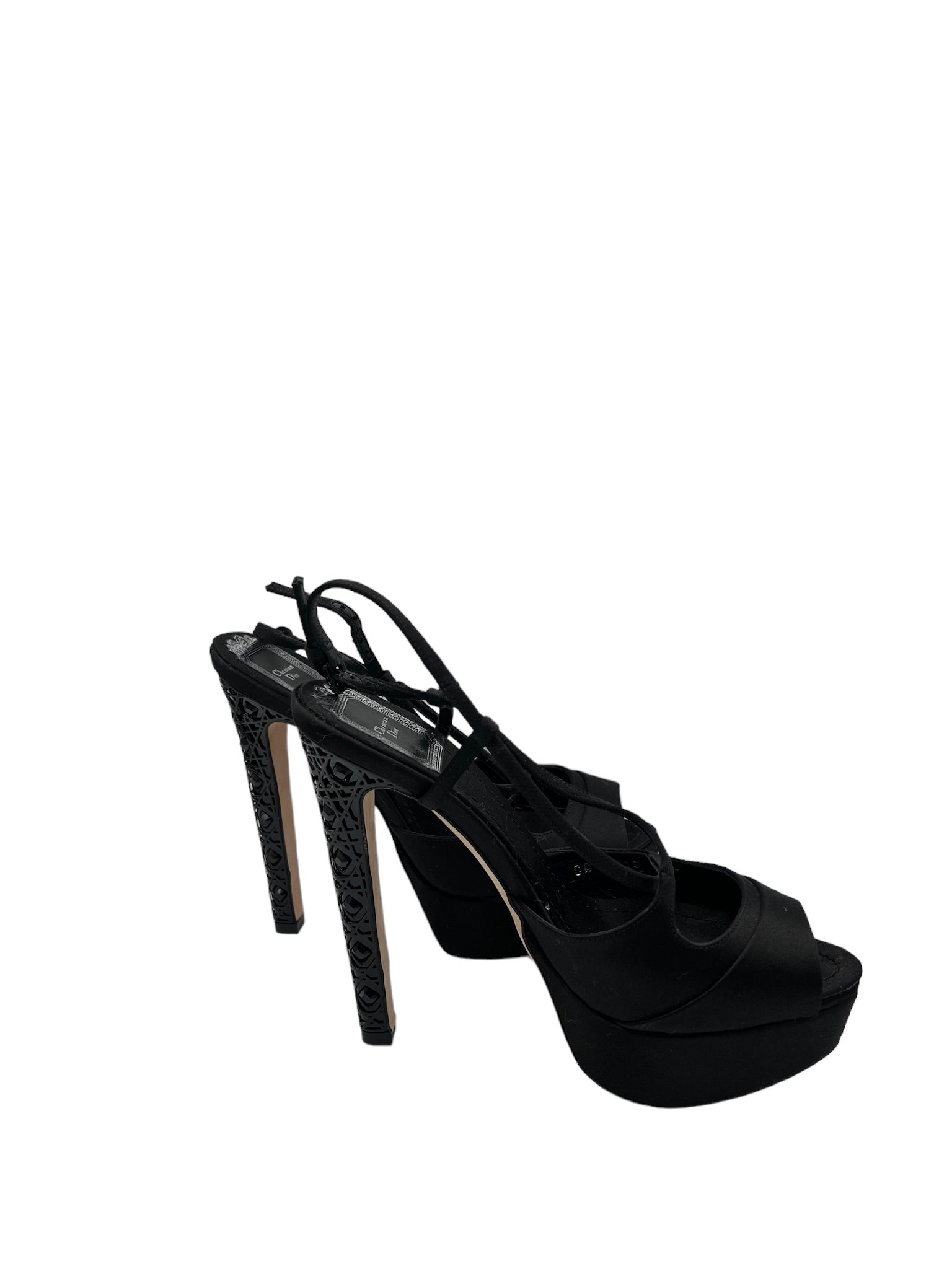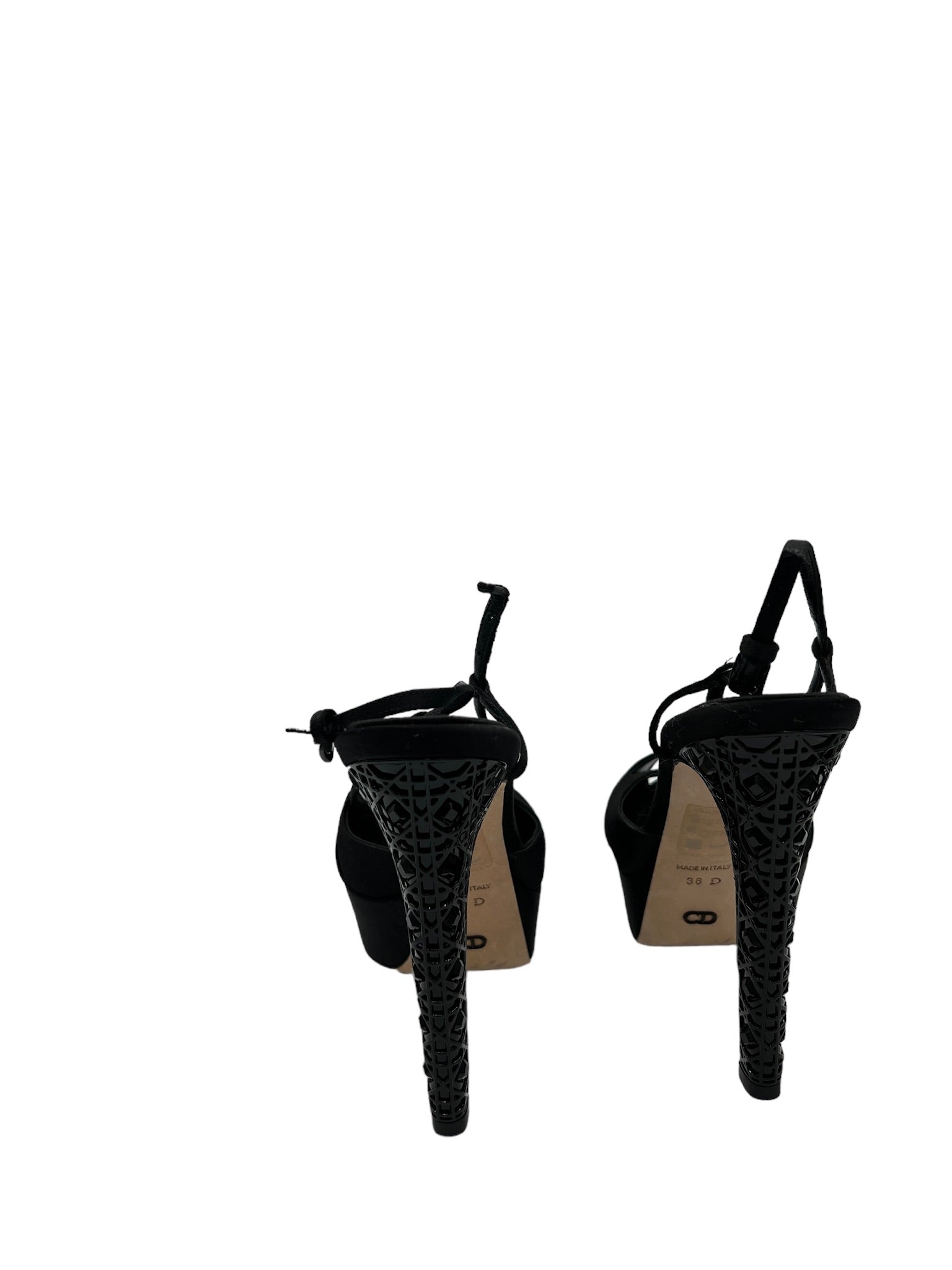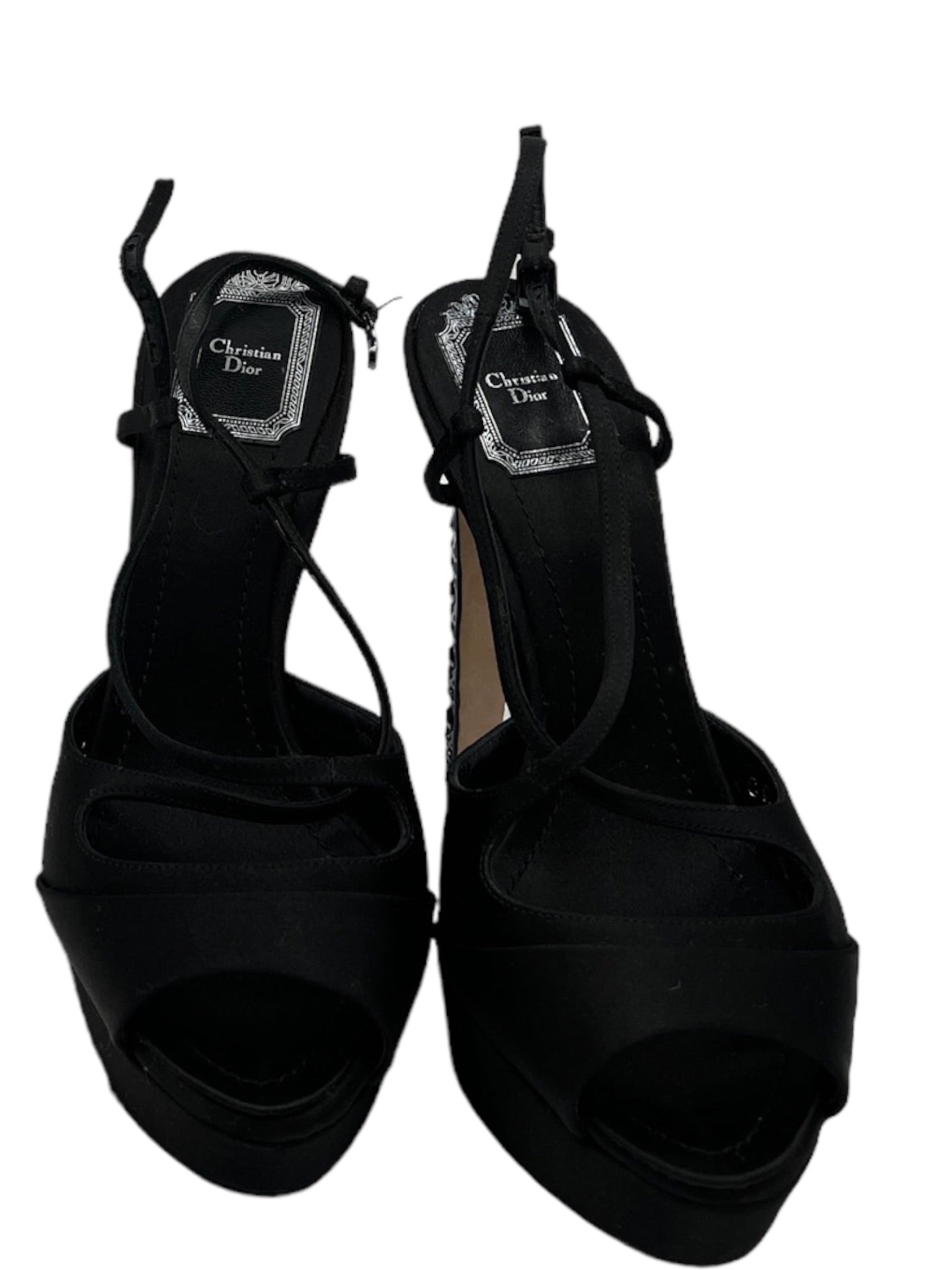 Elevate your style with DIOR's black satin sandals. These luxurious heels will add a touch of sophistication to any outfit. With the iconic DIOR/Christian Dior brand, these shoes are perfect for any fashion-forward woman. Includes box and dust bag. Size: 36.