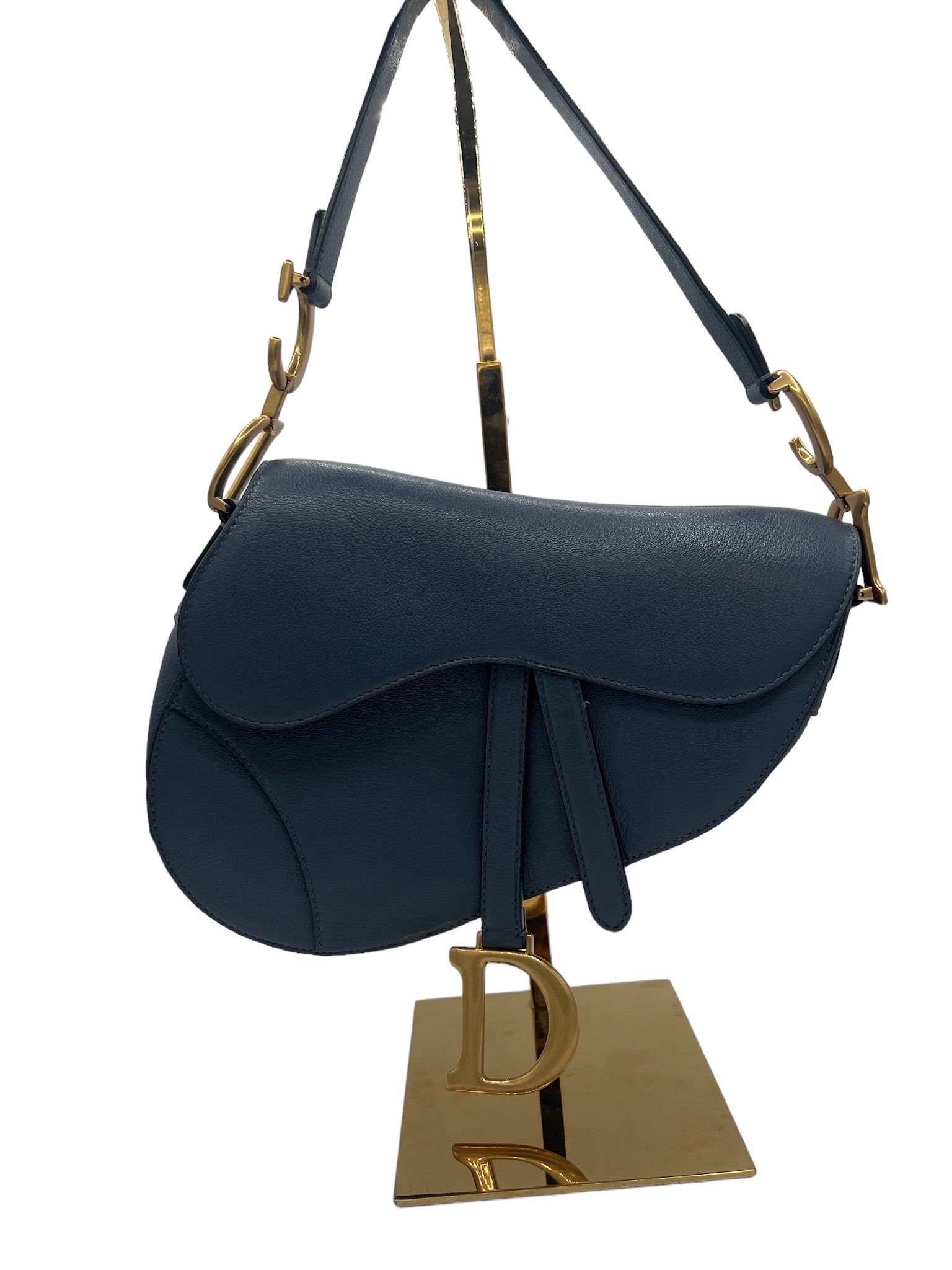 This DIOR blue leather saddle handbag is a stunning addition to any fashionista's collection. Made by Christian Dior, this top handle bag is in good condition and comes with a dust bag.