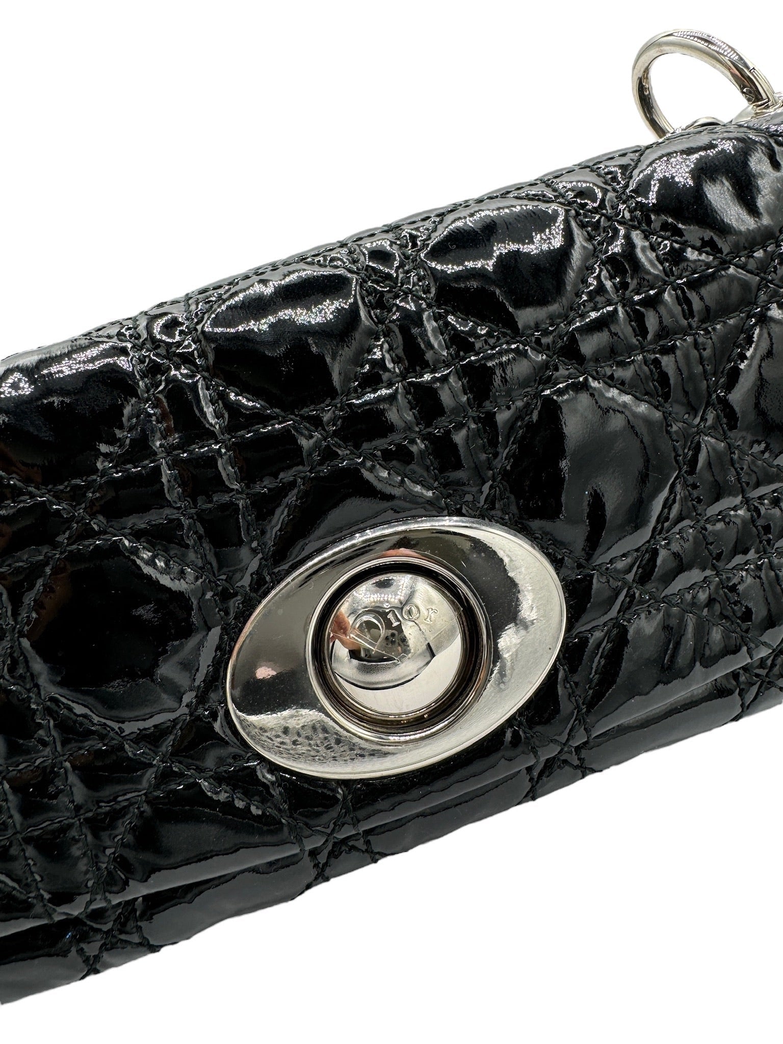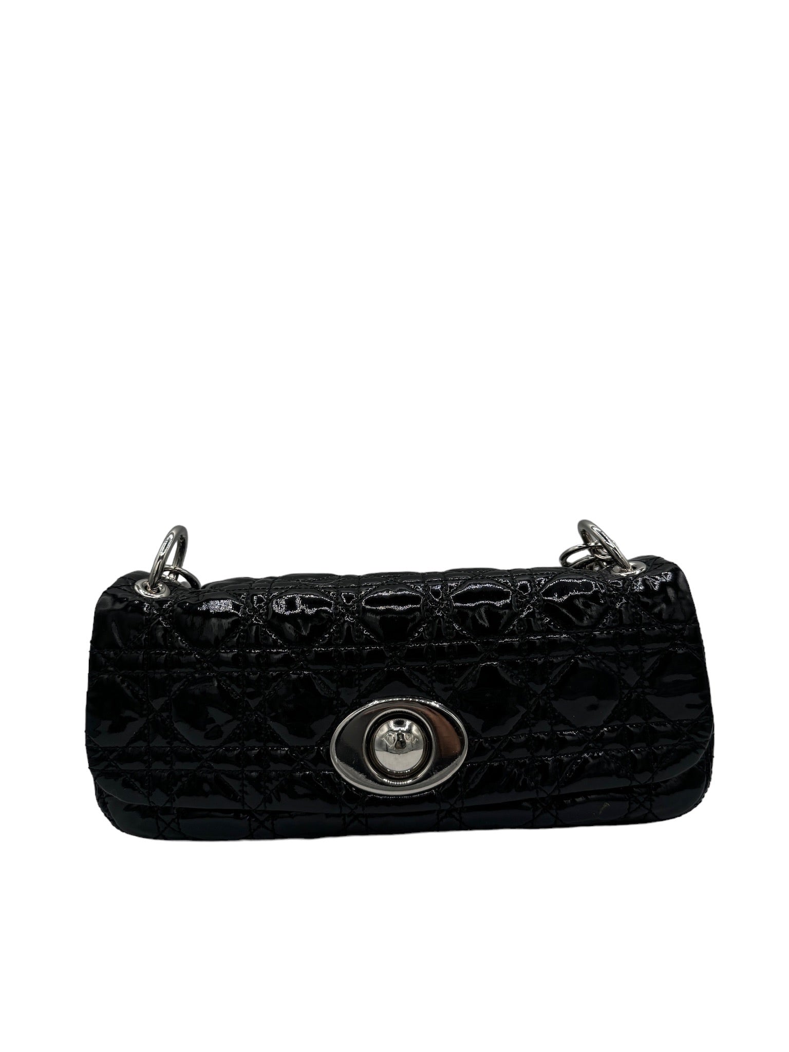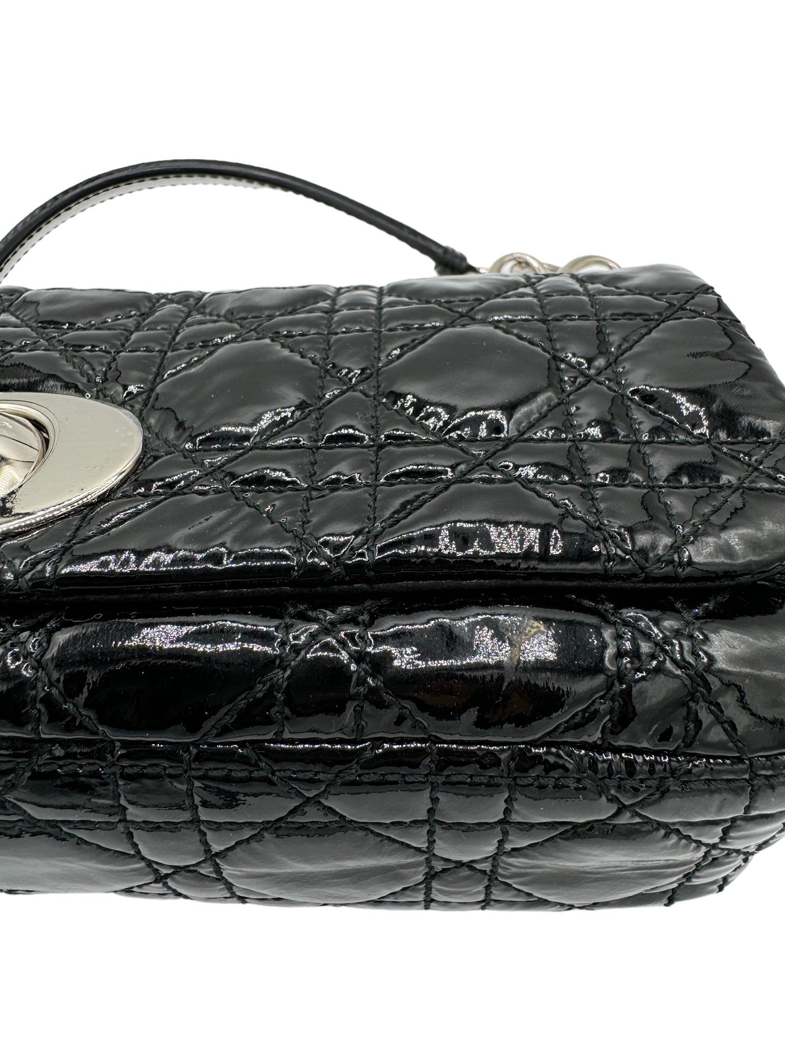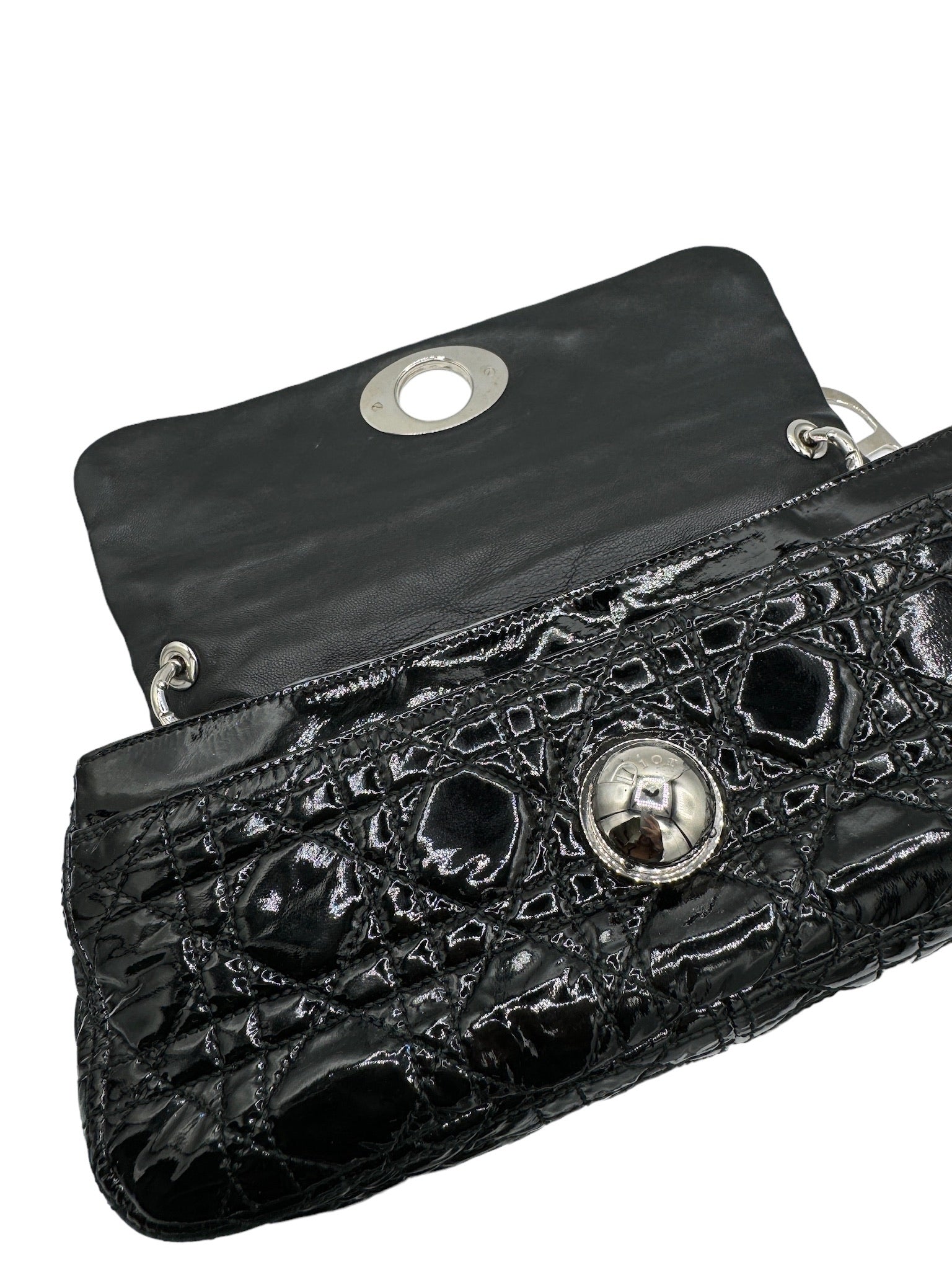 DIOR - Cannage Stitch Black Patent Leather Shoulder Bag
