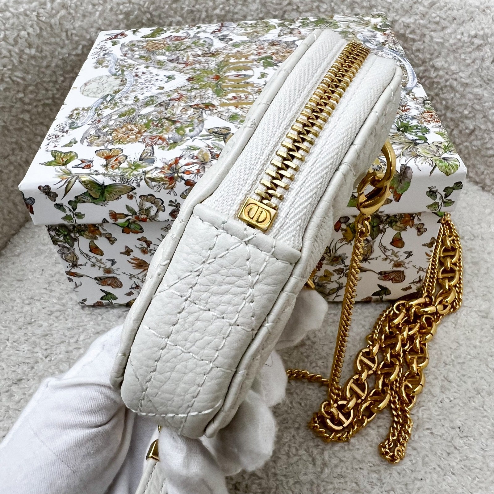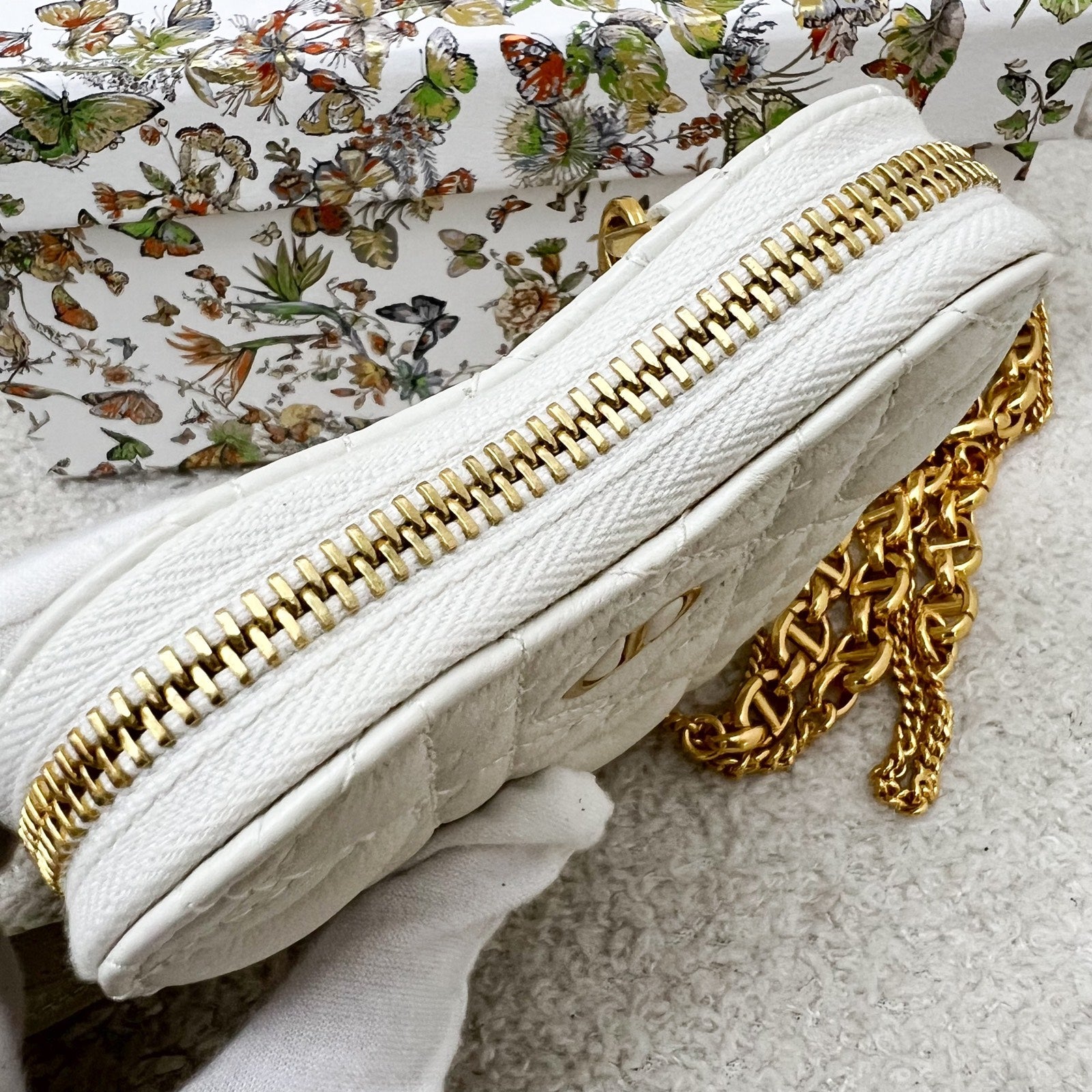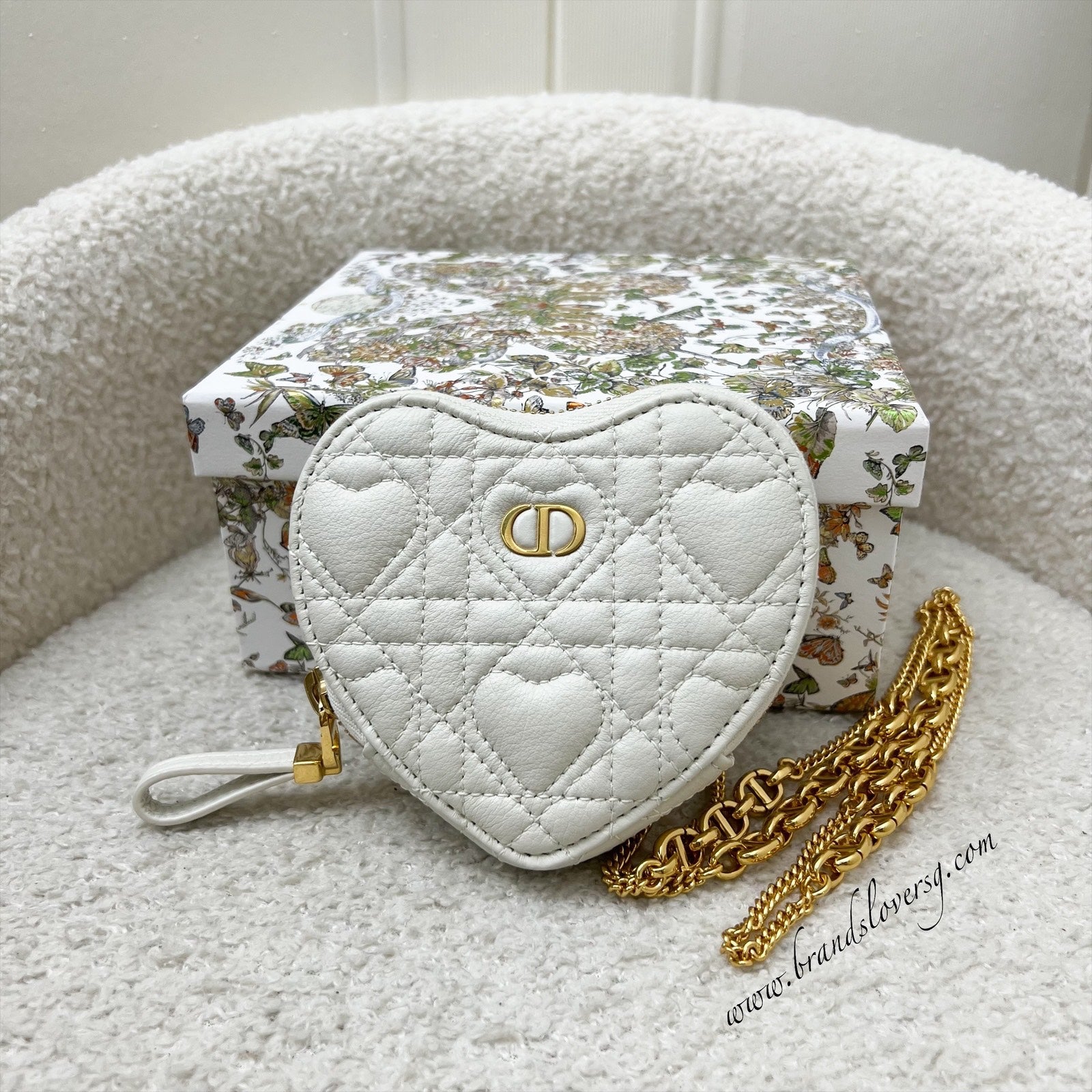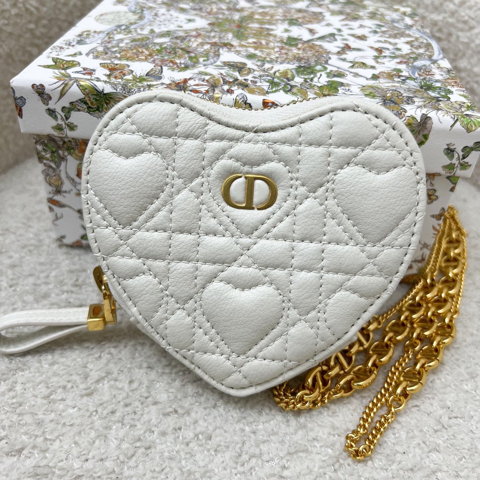 Dior Caro Heart Pouch with Chain in White Calfskin and GHW