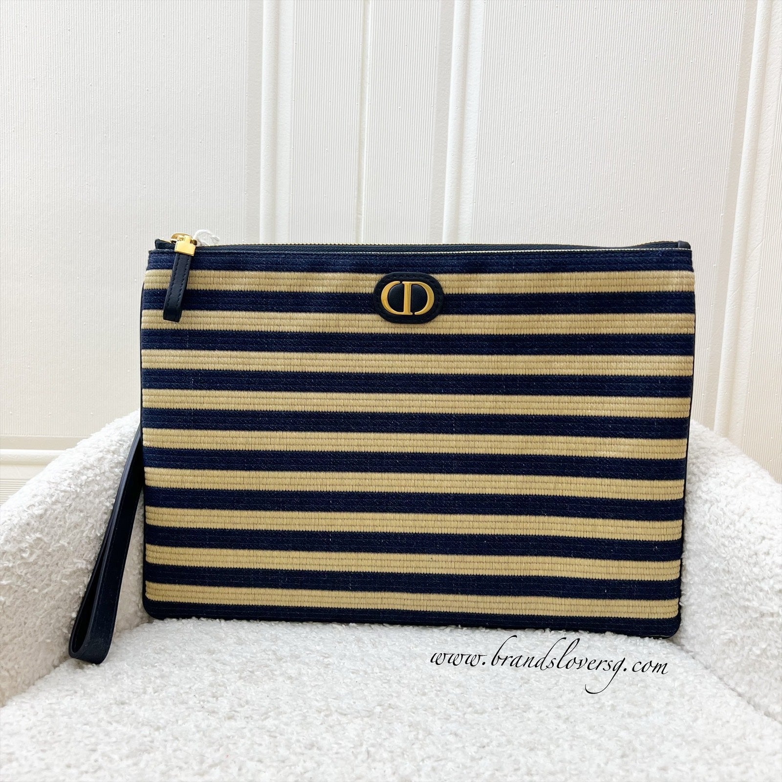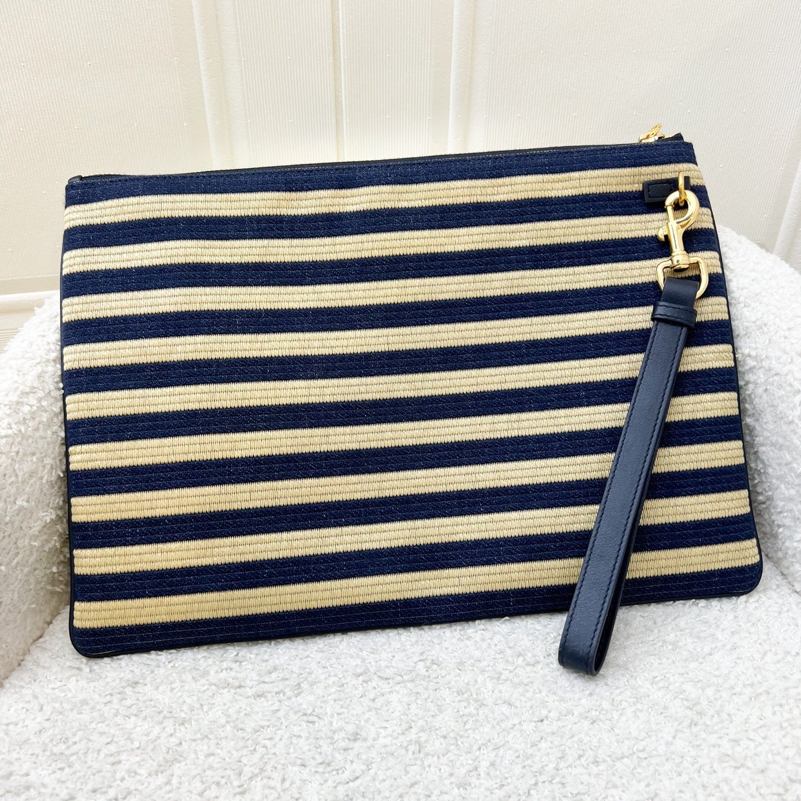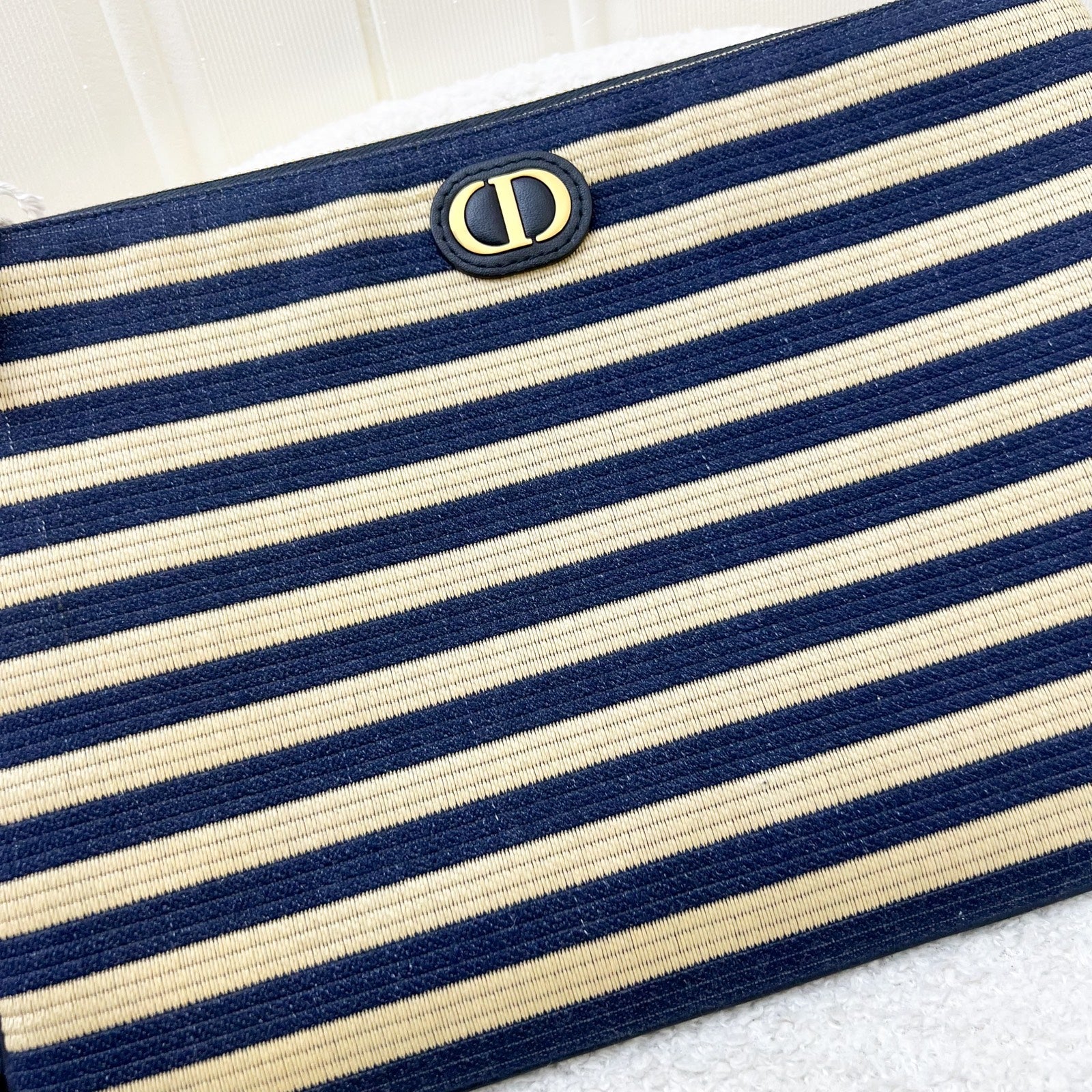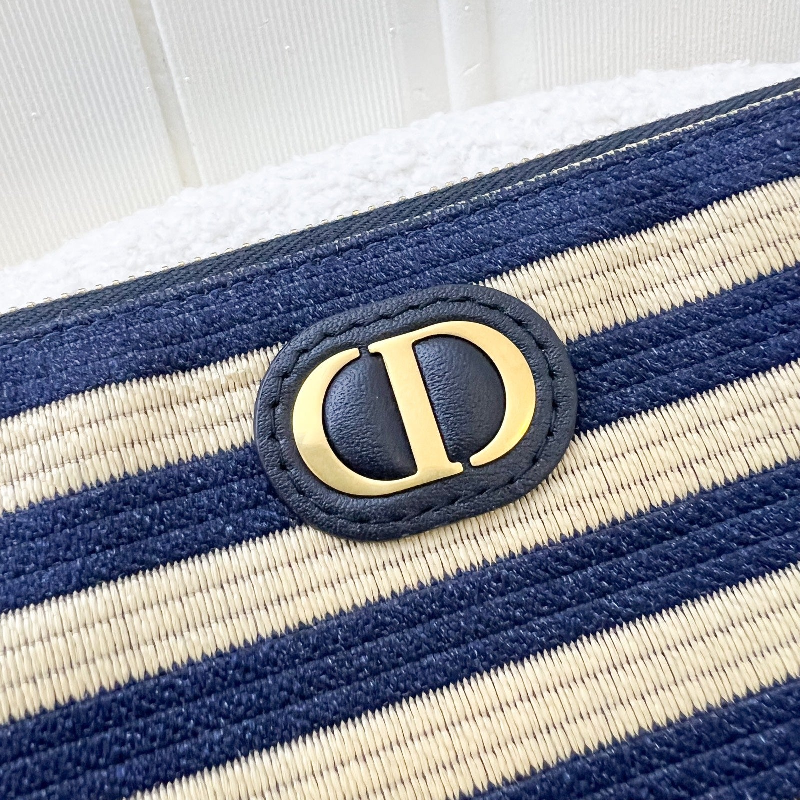 Dior Large Caro Pouch in Denim and Natural Linen and GHW