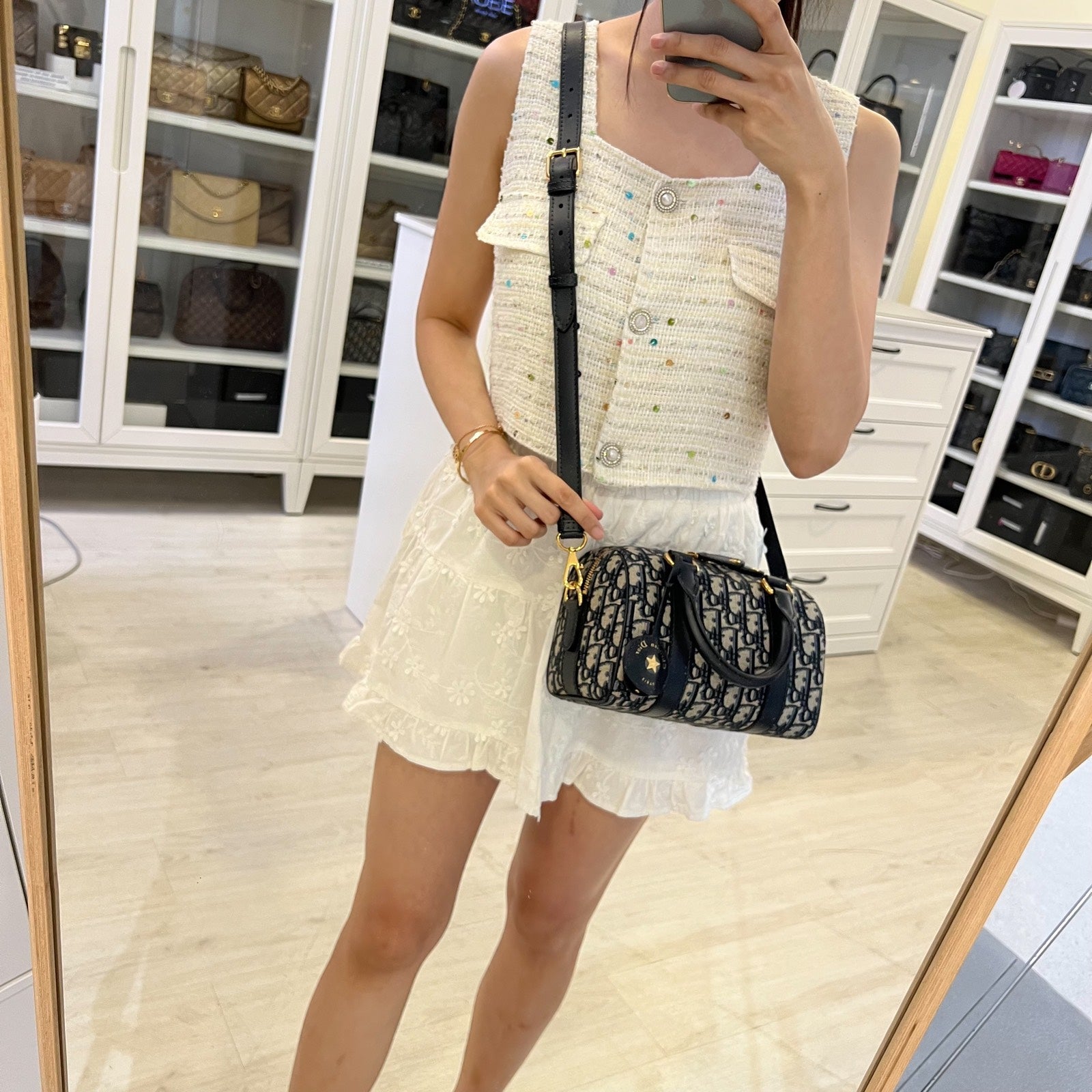 Dior Groove 20 Bowling Bag in in Navy Dark Blue Oblique Jacquard Canvas and AGHW (Model: M1364UTZQ, Colour: M928)