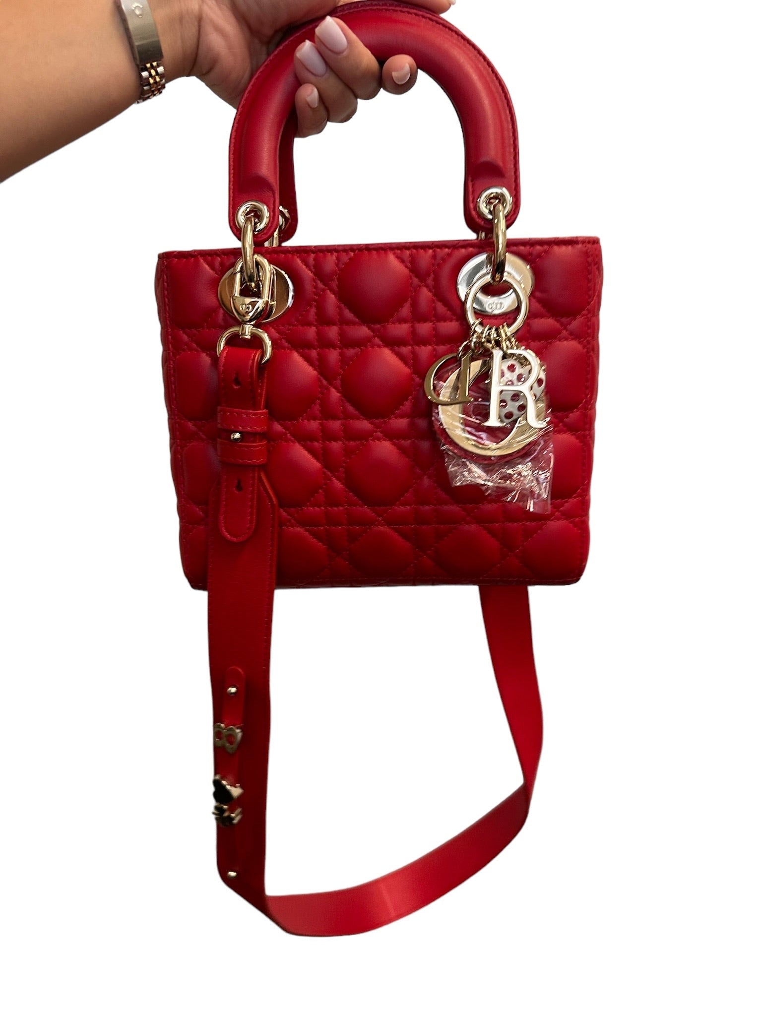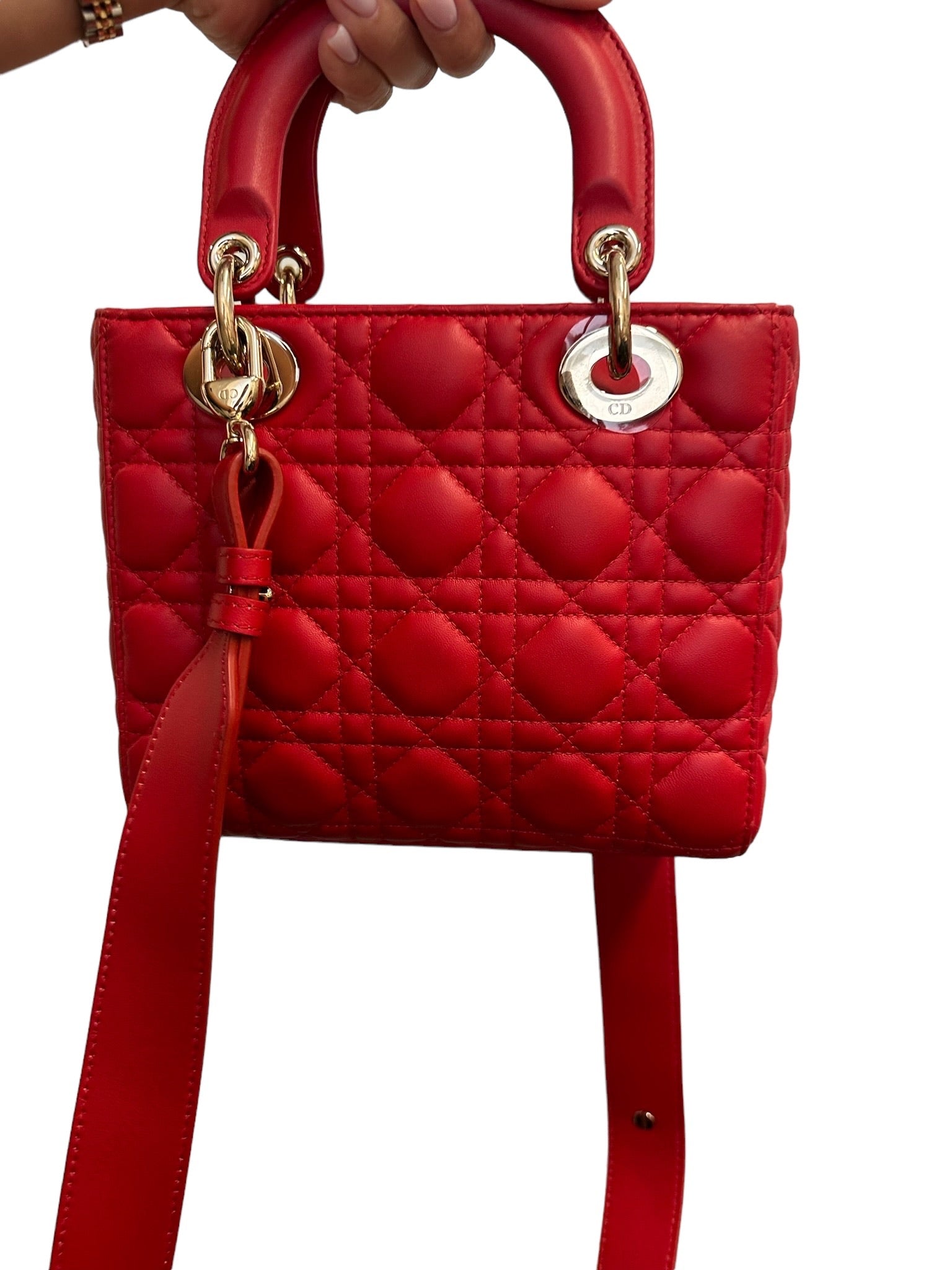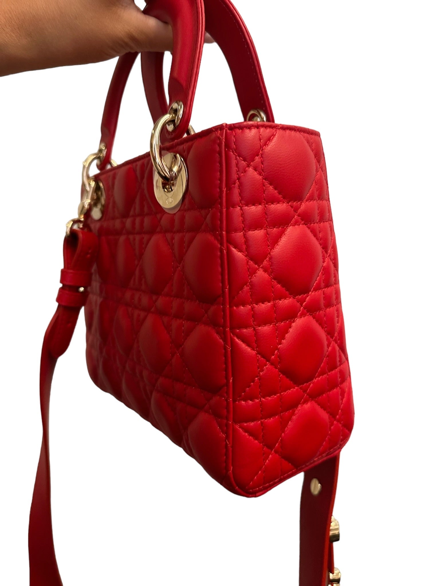 DIOR - Lady Dior Red Cannage Quilted Lambskin Small Amour