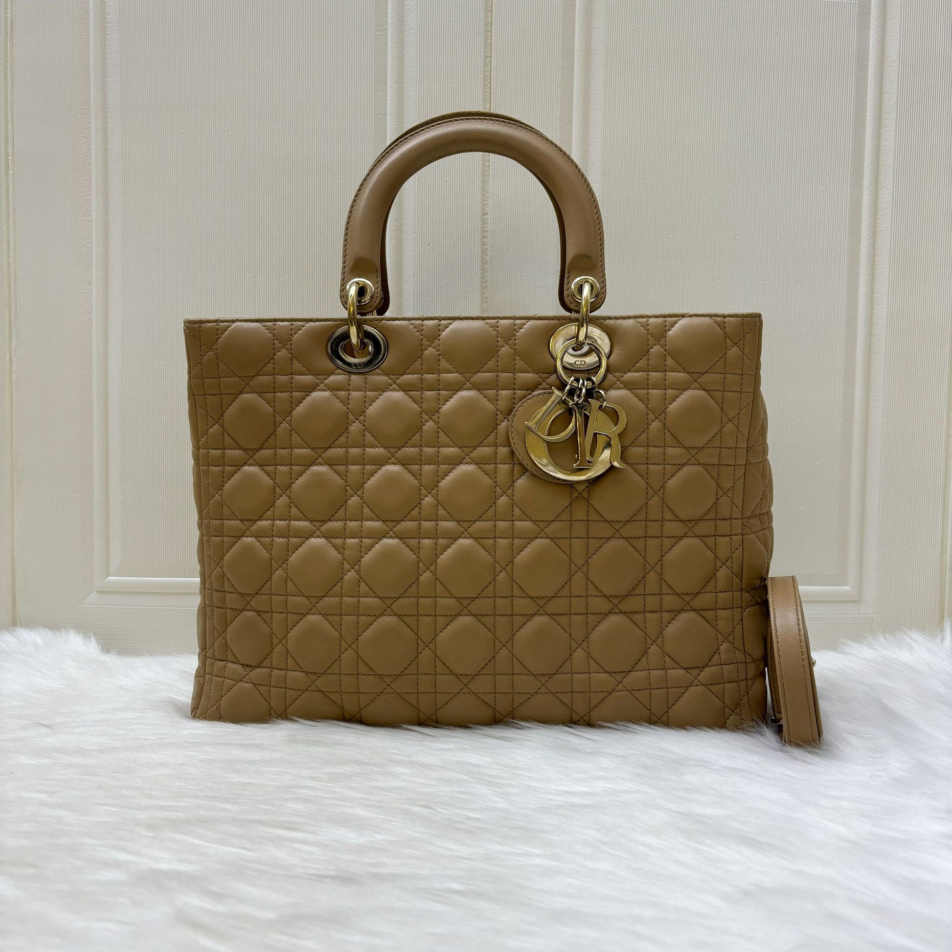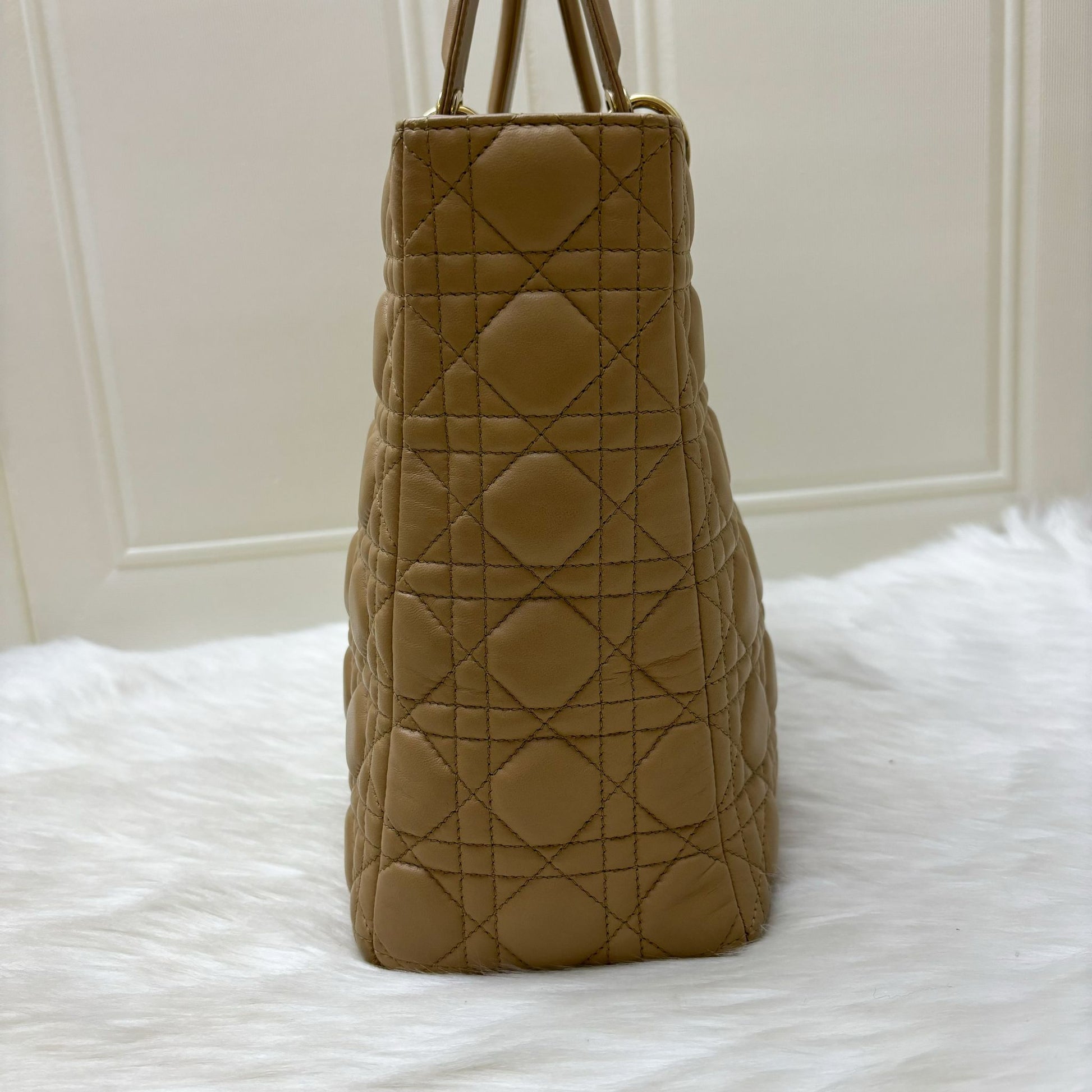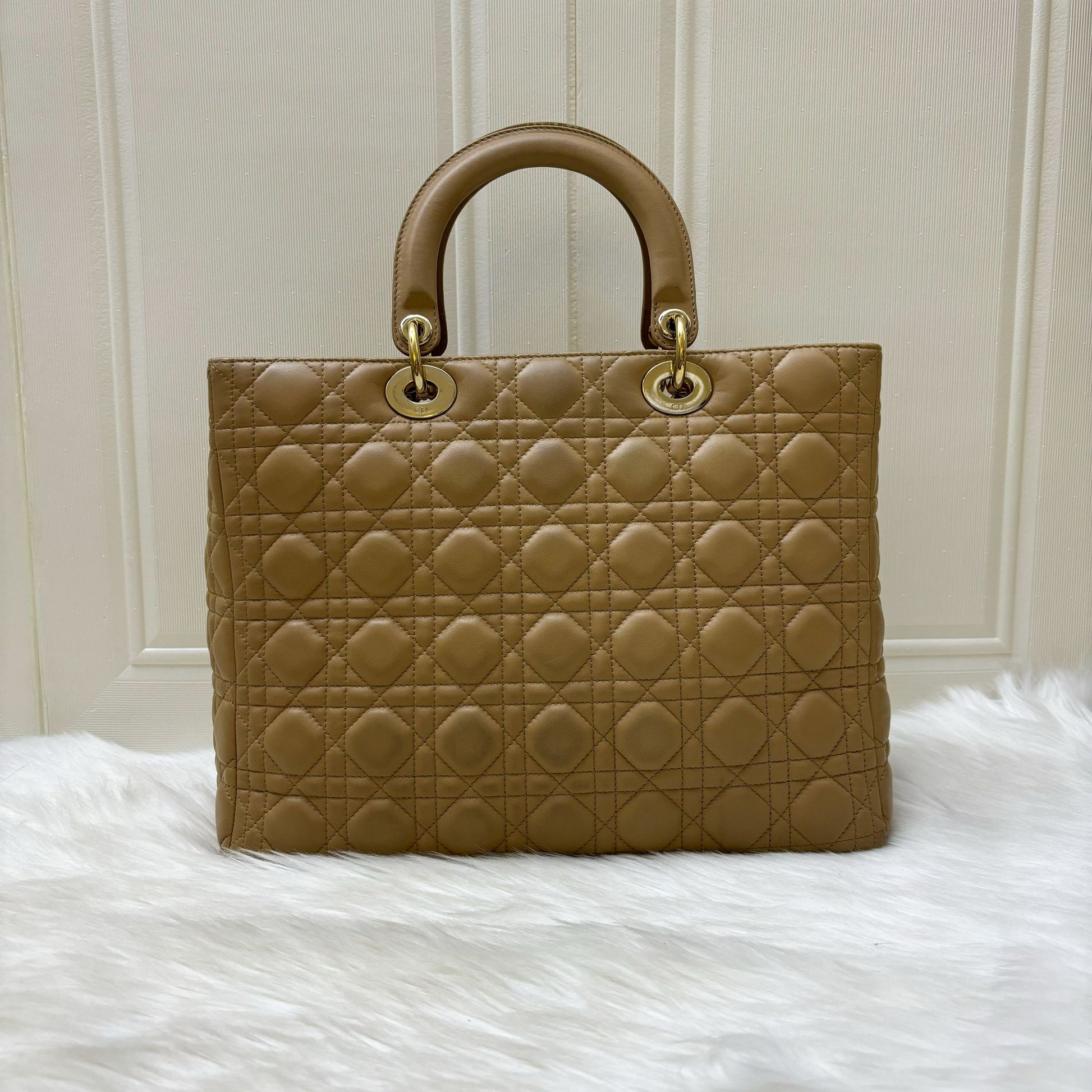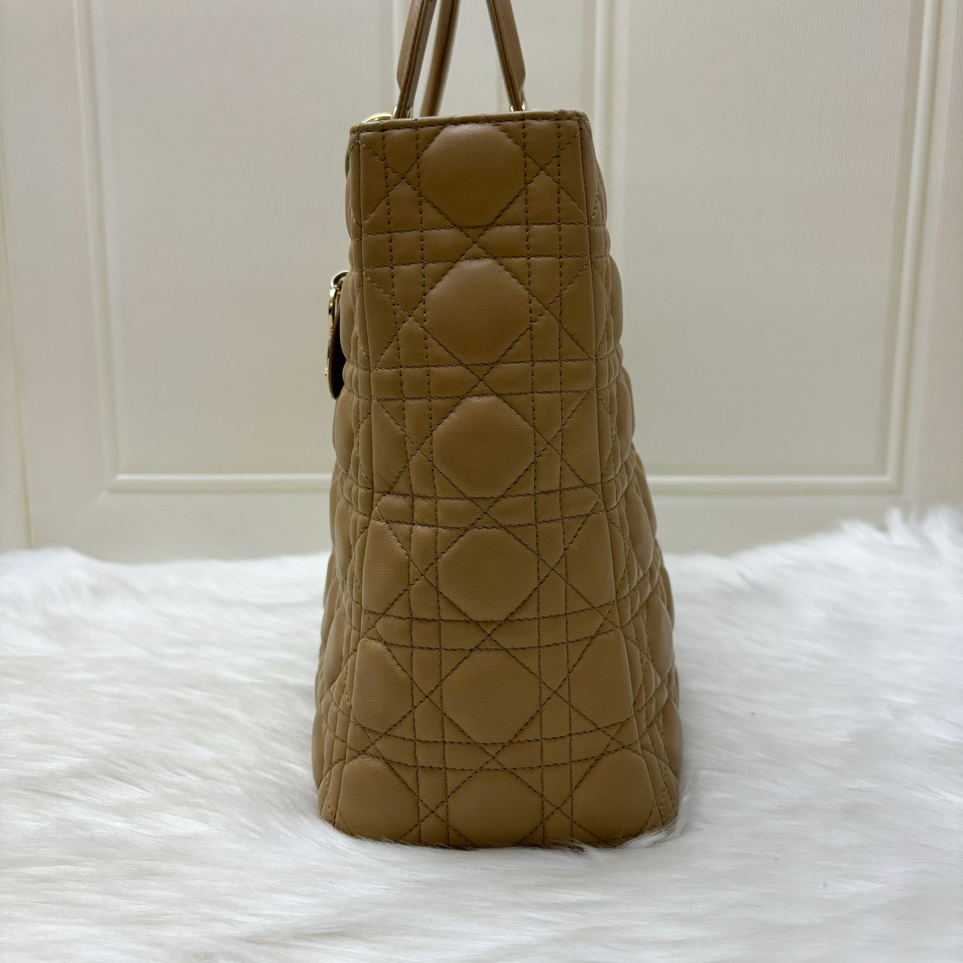 Dior Large Lady Dior in Milk Tea Beige Lambskin and GHW