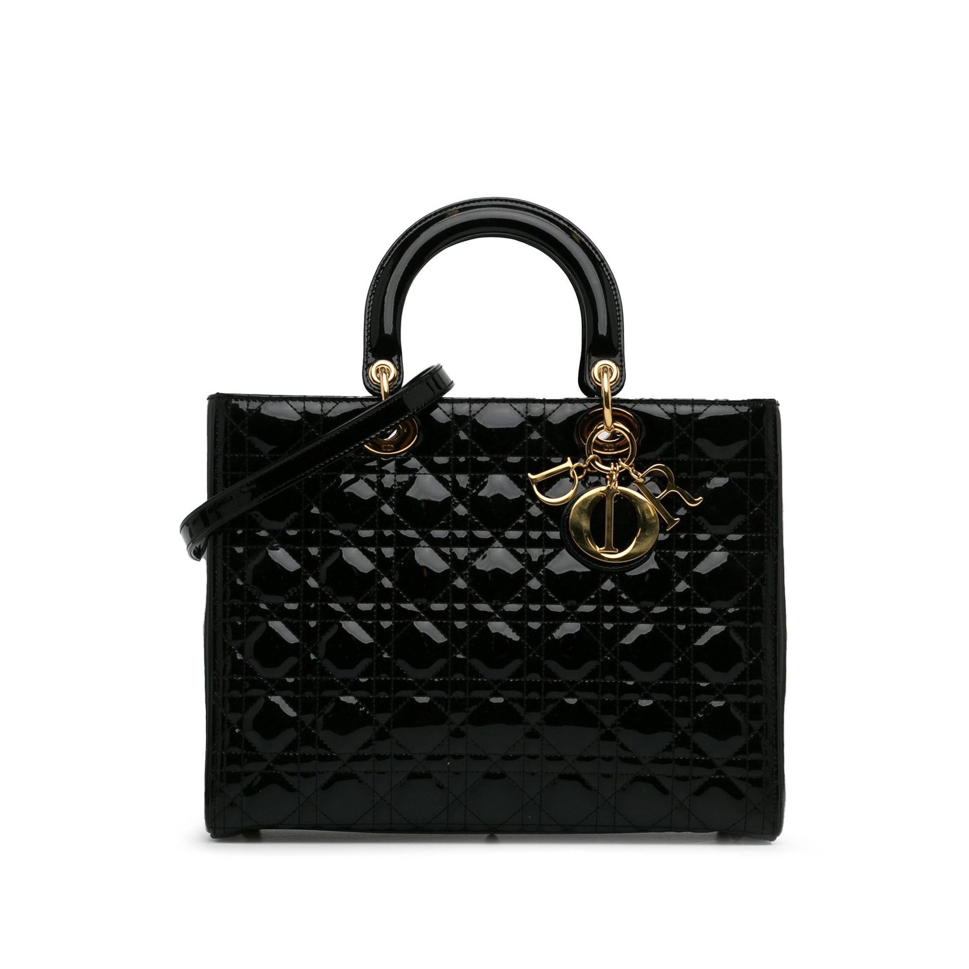 Dior Large Patent Cannage Lady Dior (SHG-WCWHTr)