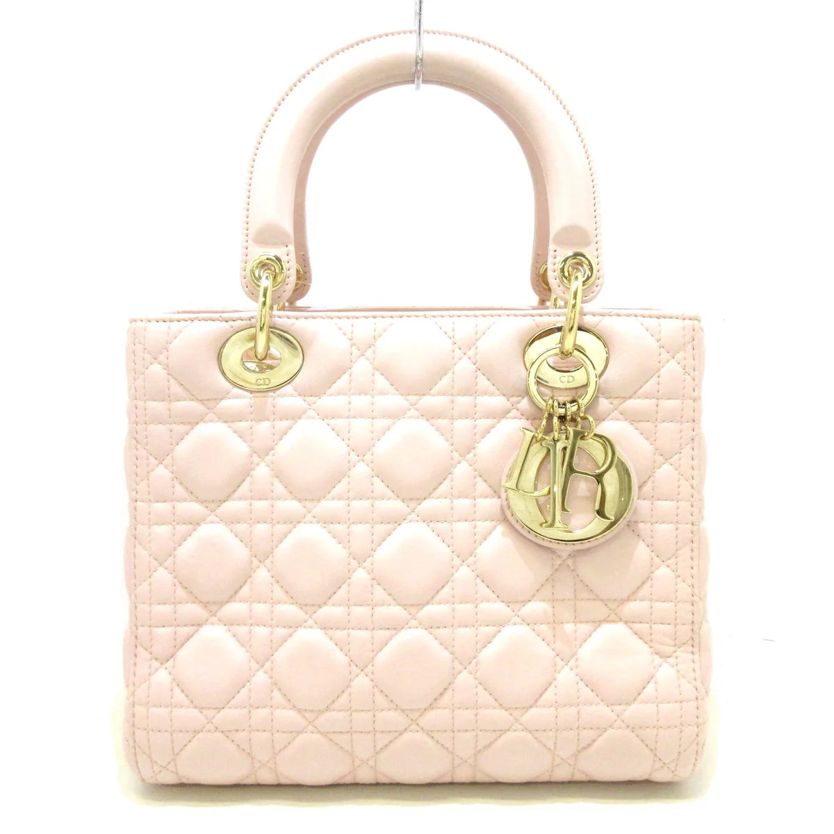 Introducing the DIOR - Light Pink Medium Lady Dior. Elevate your wardrobe with this elegant accessory, complete with a dust bag, , shoulder strap, booklet, and receipt. Expertly crafted with gold hardware, this bag features a spacious interior zipper pocket and a sleek exterior design. Add a touch of sophistication to any outfit with this must-have piece, measuring 8.07 x 9.84 x 4.33 inches with a 3.94 inch handle.