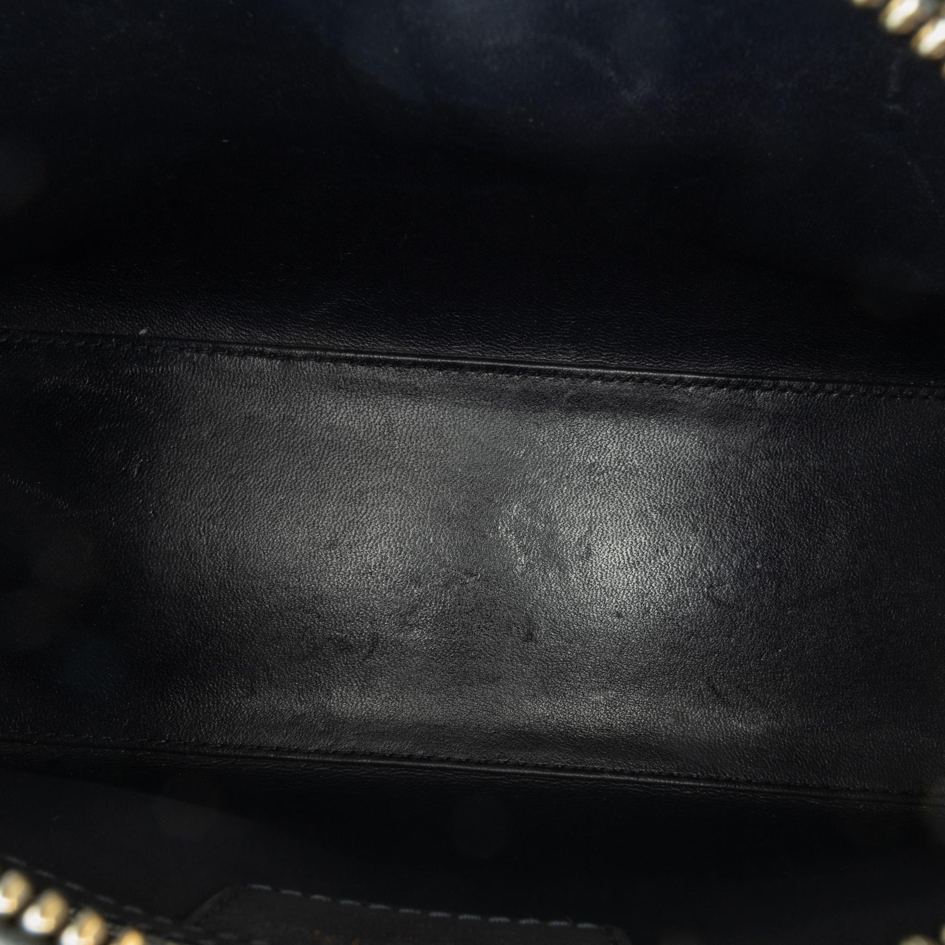 Condition Notes: Exterior Back Scratched. Exterior Bottom Scratched. Exterior Corners Worn. Embellishment Scratched. Exterior Front Scratched. Exterior Handle Scratched. Interior Lining Scratched, Worn. Practical Attachment Scratched. Exterior Side Scratched. Exterior Top Worn. Zipper Scratched.