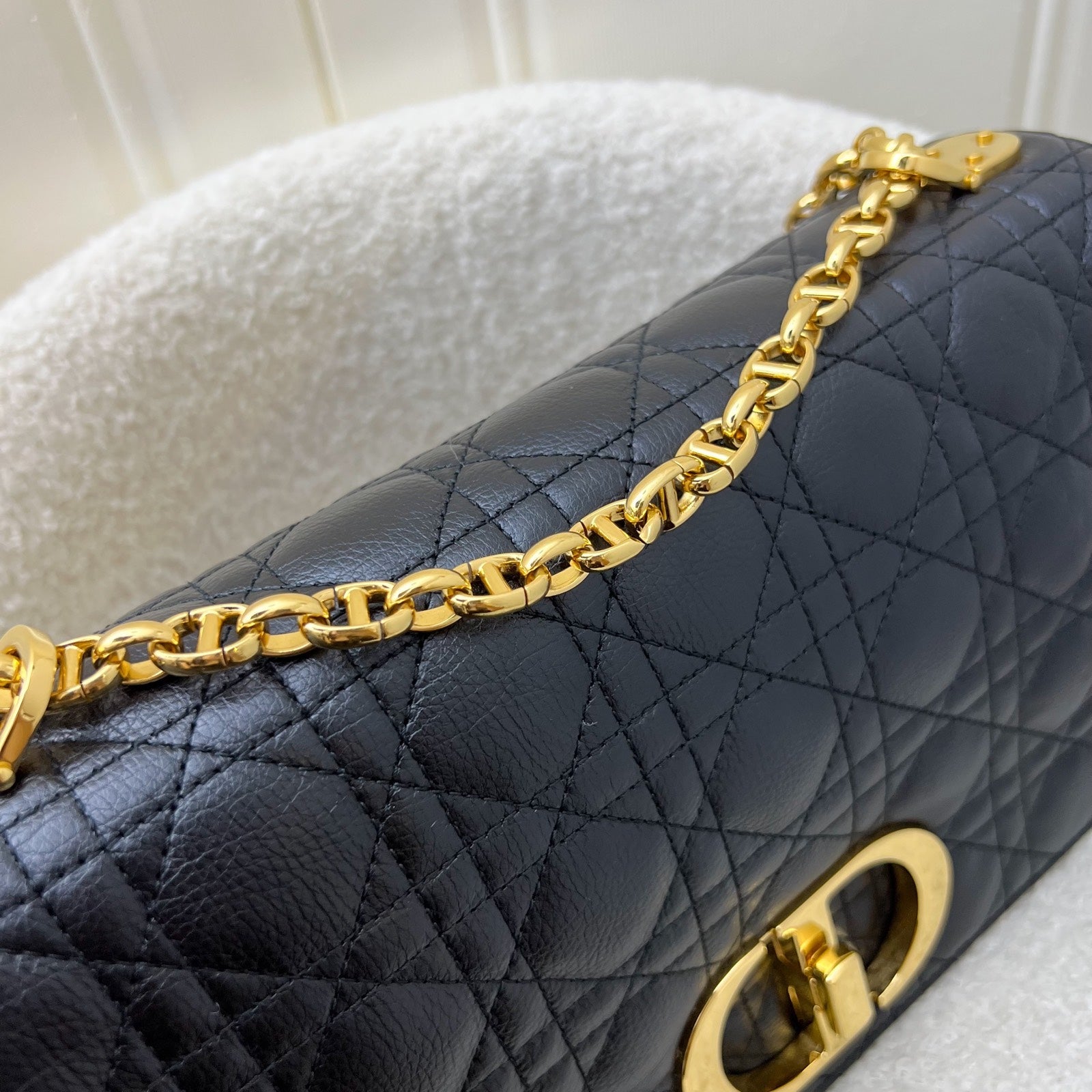 Dior Large Caro Flap Bag in Black Grained Calfskin and GHW
