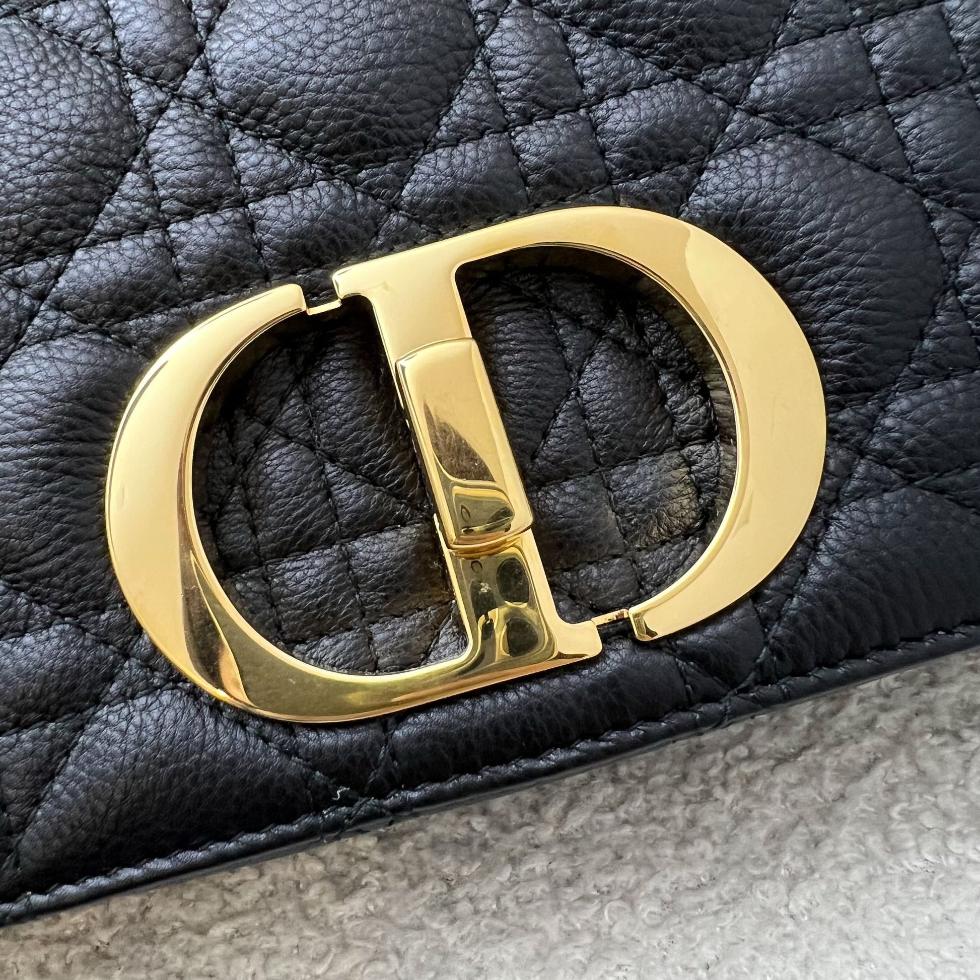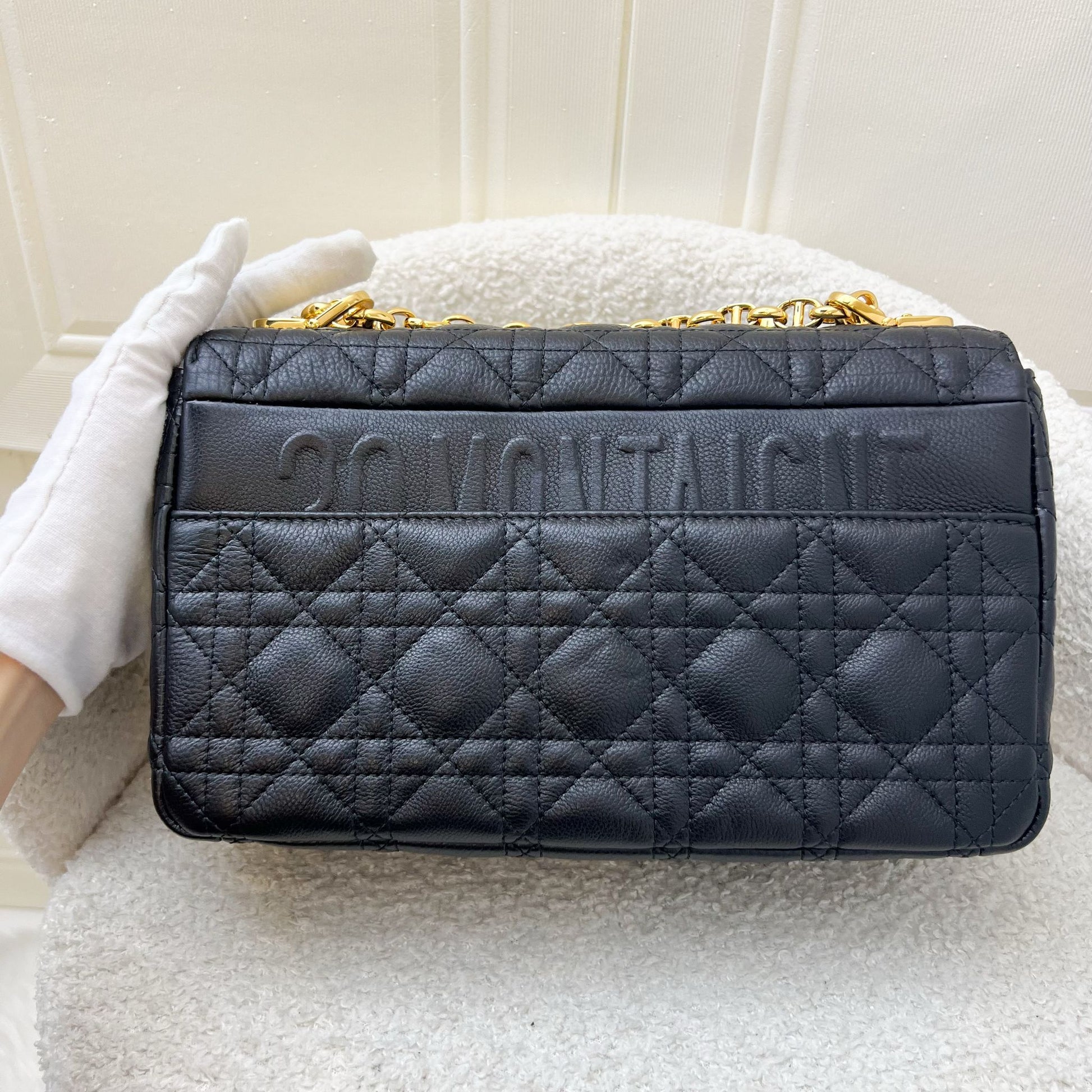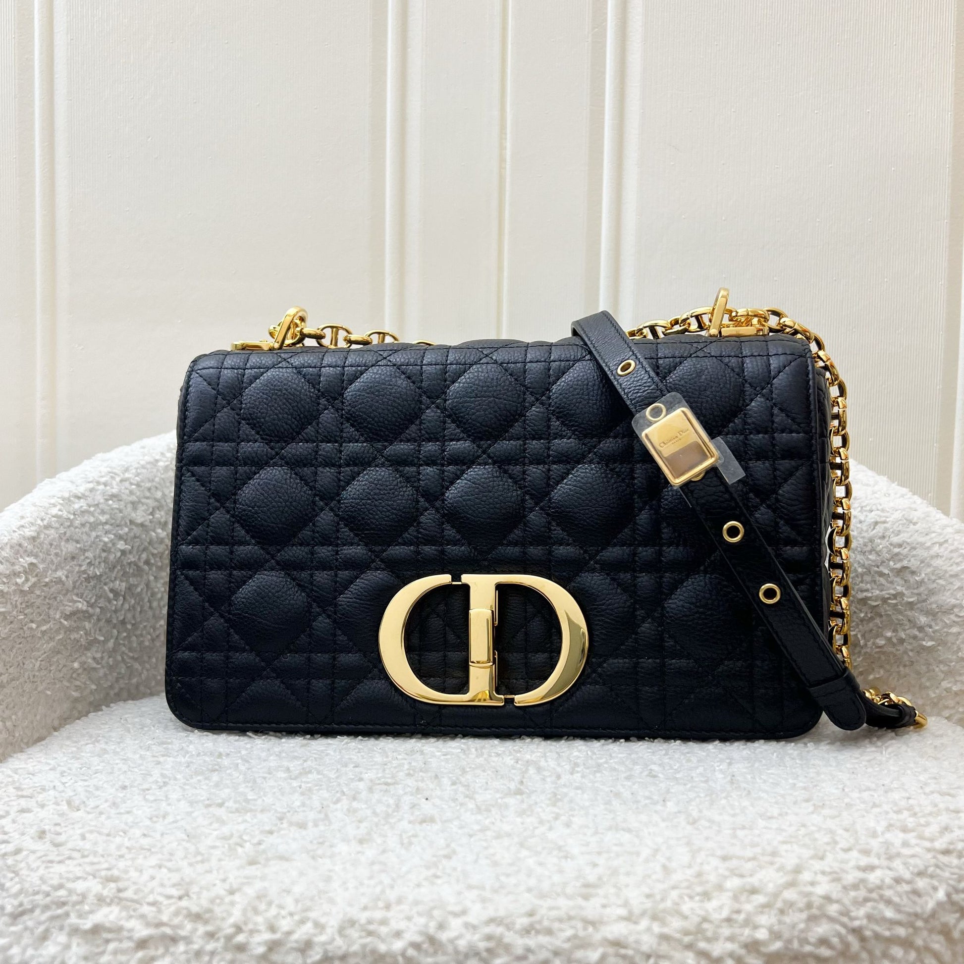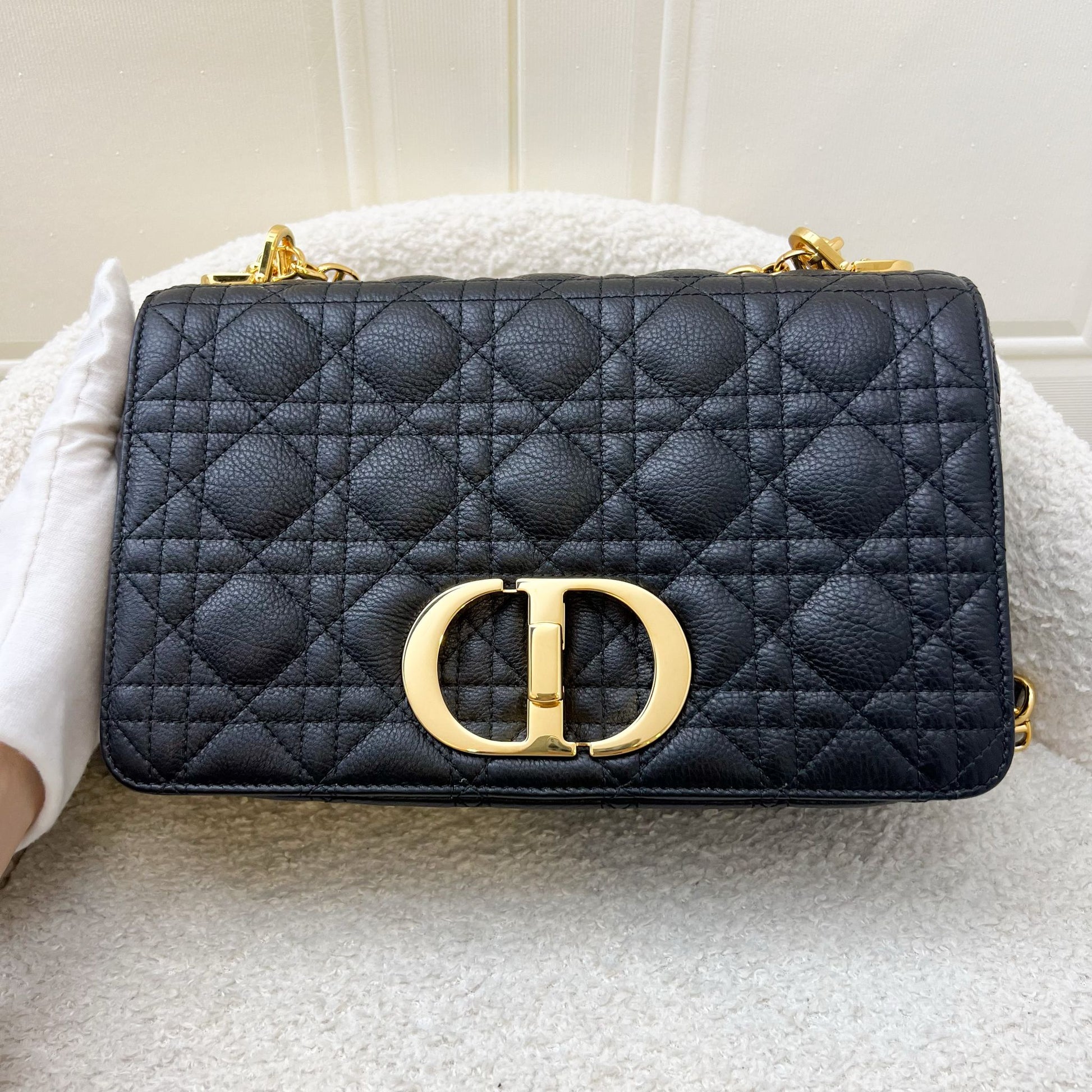 Dior Medium Caro Flap Bag in Black Grained Calfskin and GHW (Model: M9242UWHC)