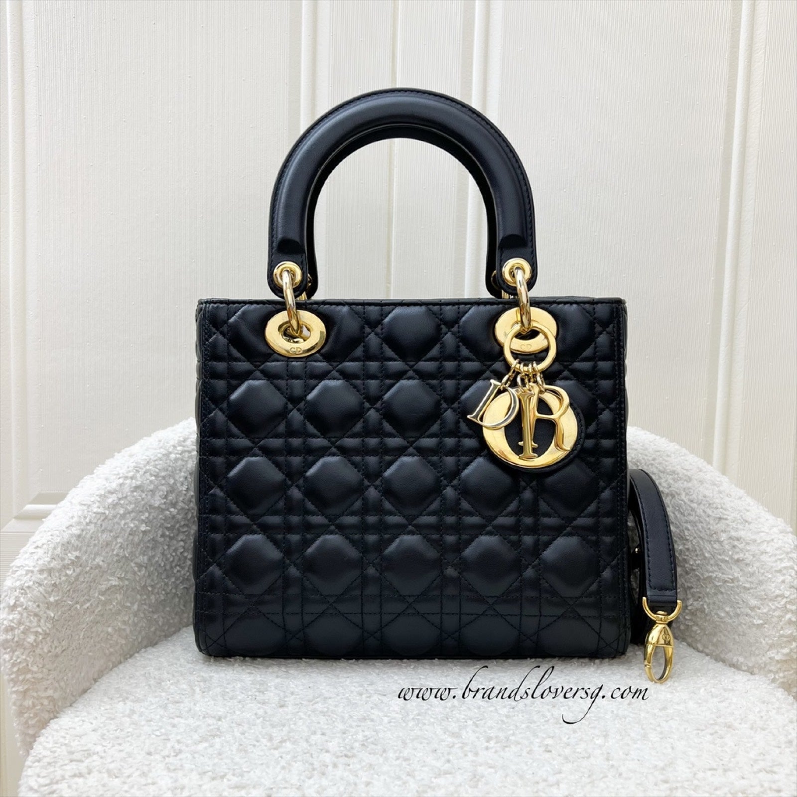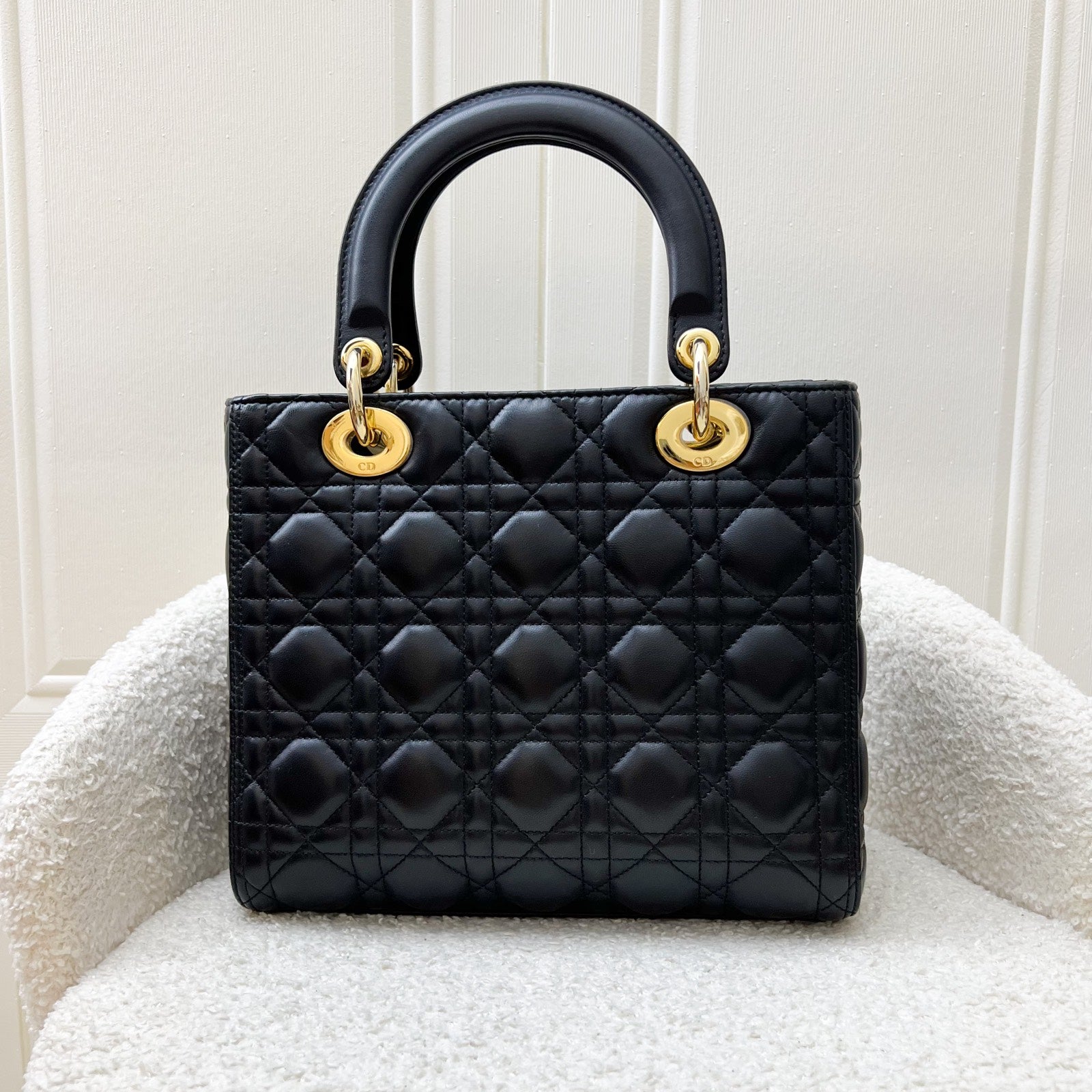 Dior Medium Lady Dior in Black Lambskin and LGHW