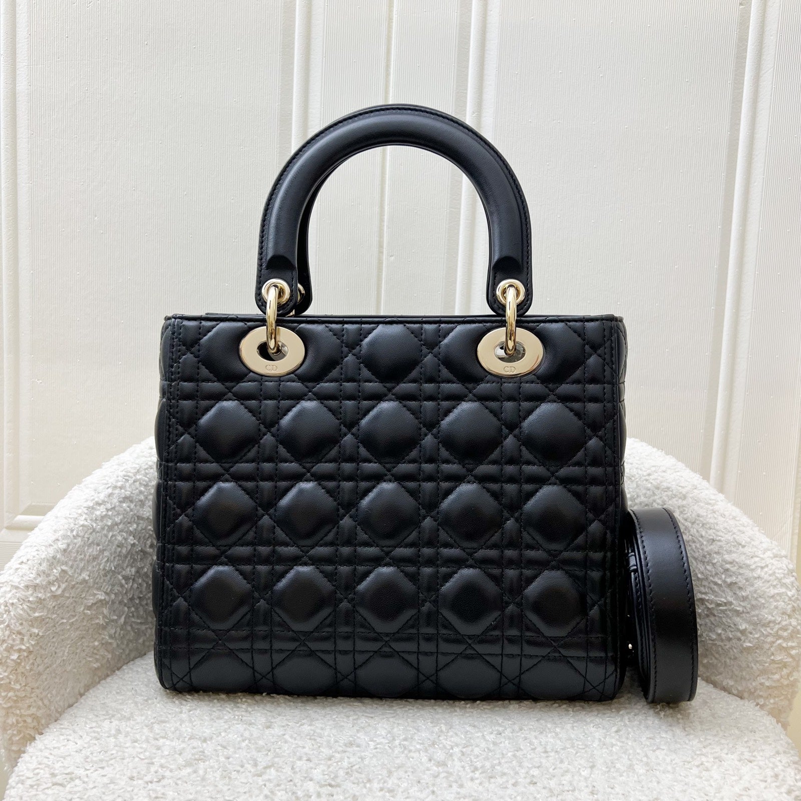 Dior Medium Lady Dior in Black Lambskin and LGHW (New Flap Closure) (Includes Mitzah)