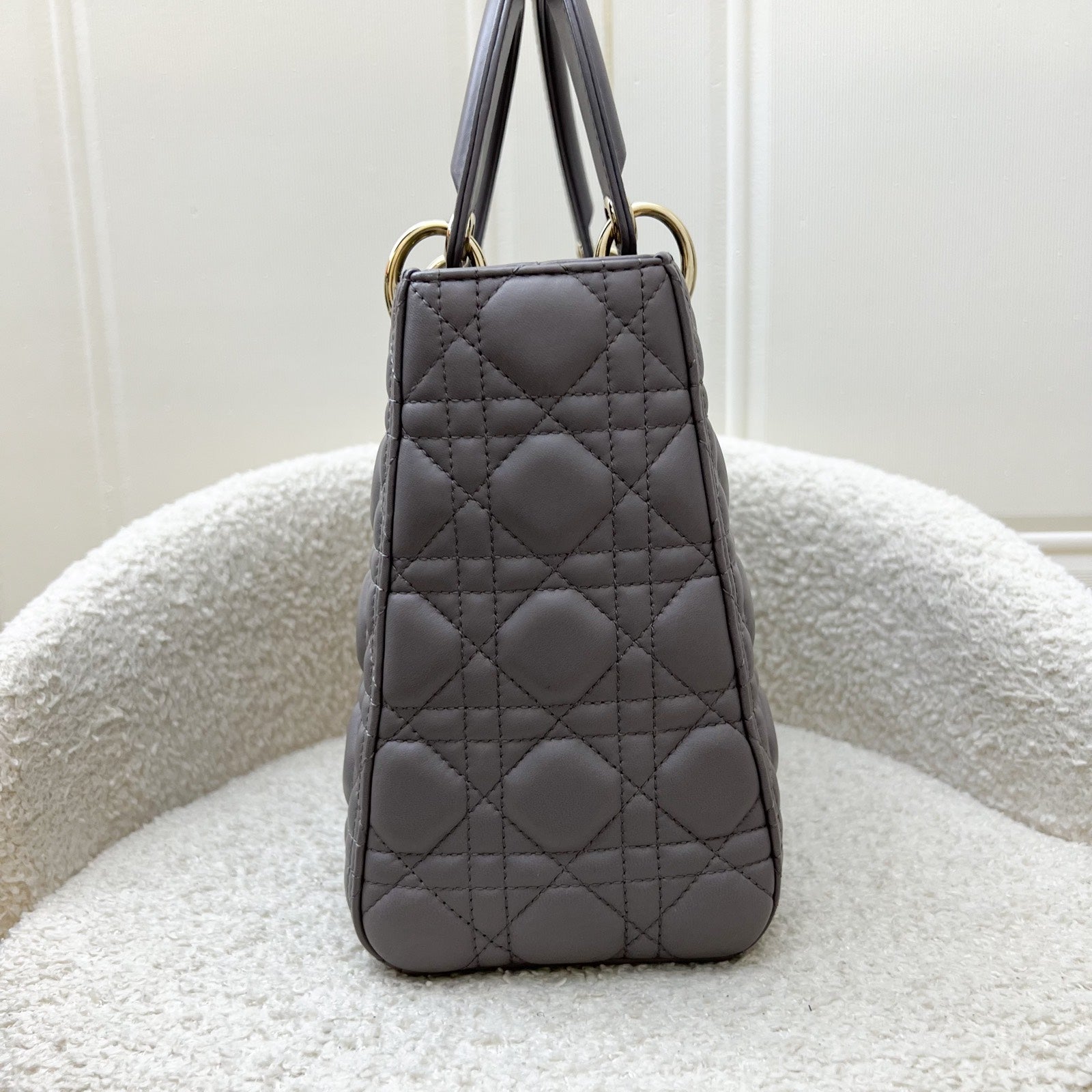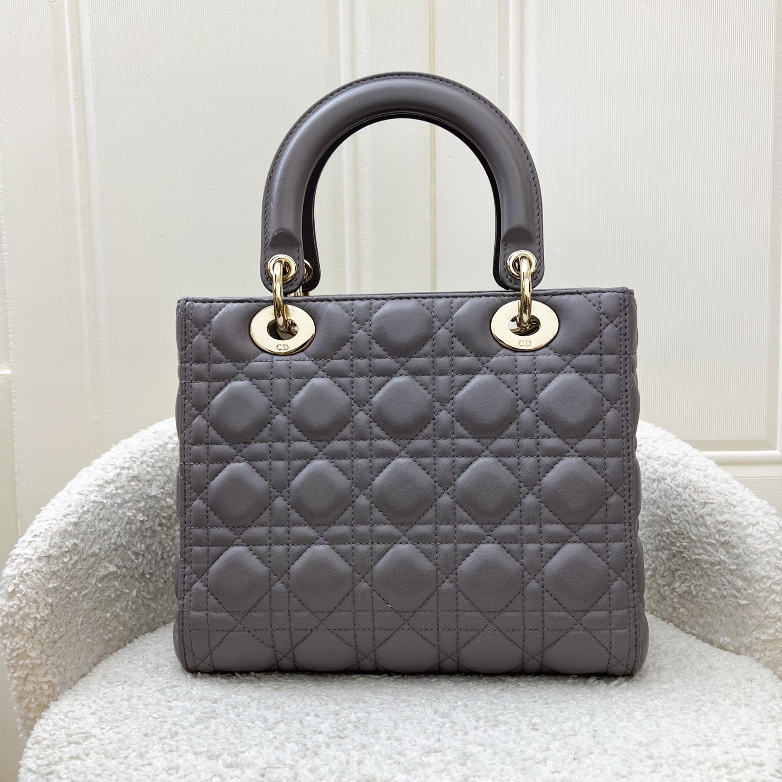 Dior Medium Lady Dior in Grey Lambskin and LGHW (New Version with Adjustable Strap)