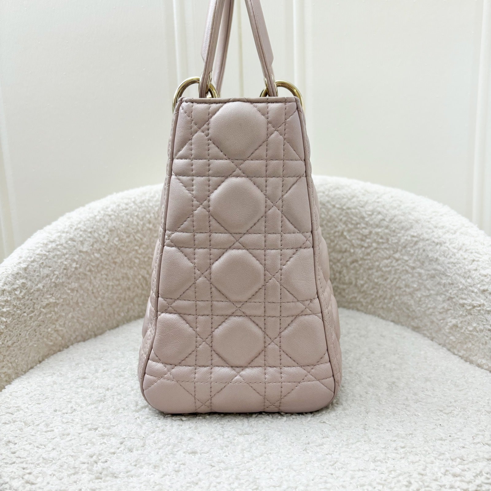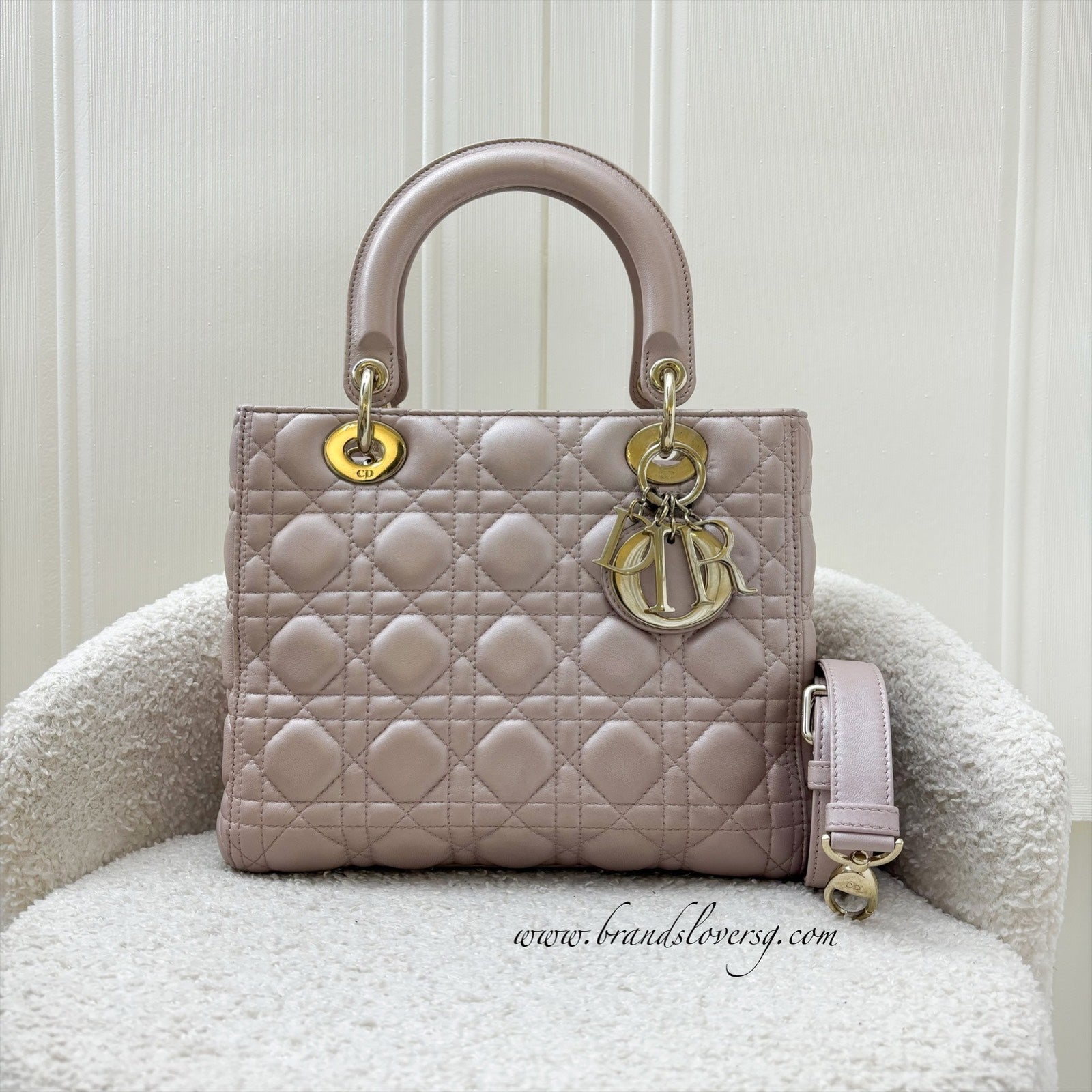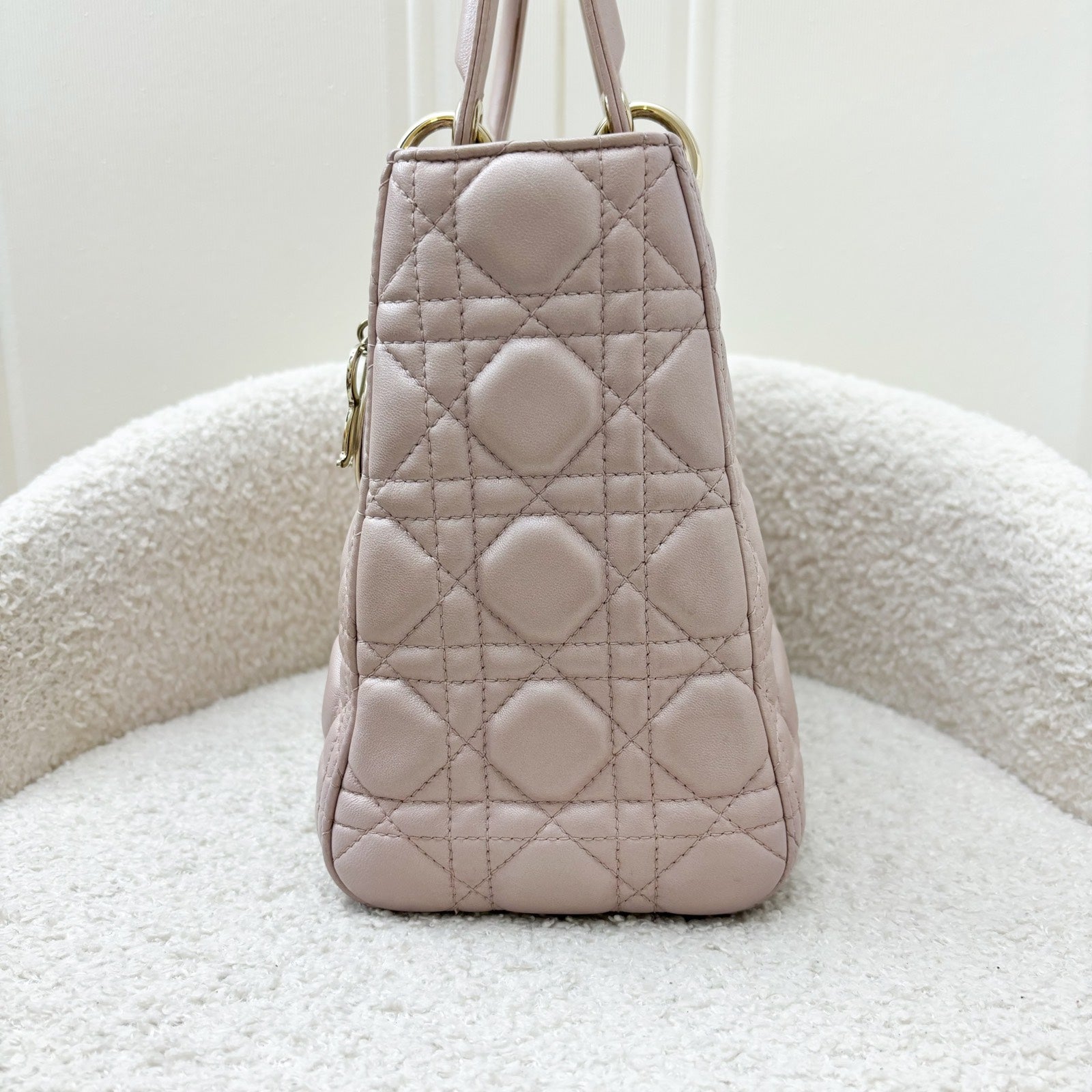 Dior Medium Lady Dior in Lotus Pearly Pink Lambskin LGHW (New version with Adjustable Strap)