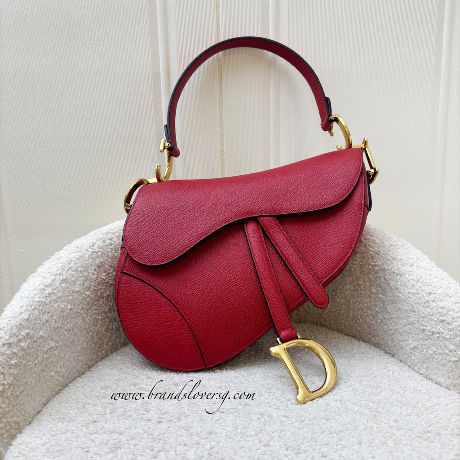 Dior Medium Saddle Bag In Red Grained Calfskin and GHW