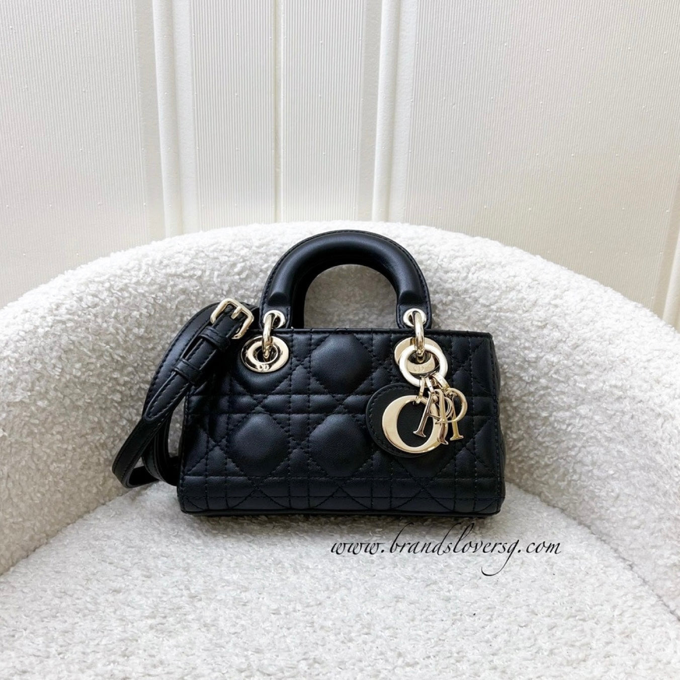 Dior Micro Lady D-Joy Bag in Black Cannage Lambskin and LGHW (Model: S0910ONGE)