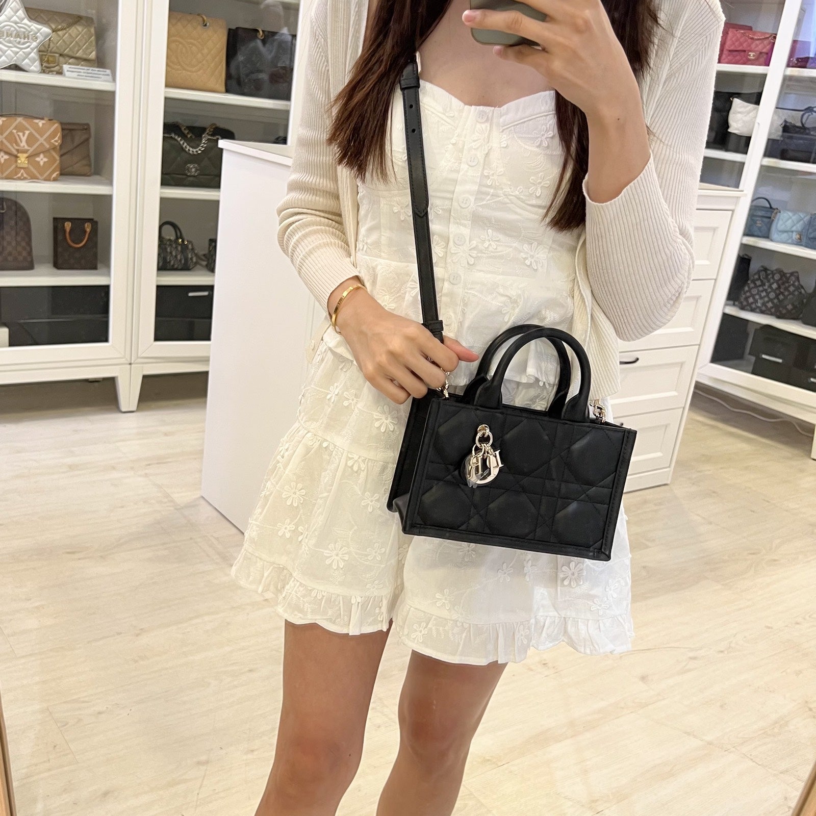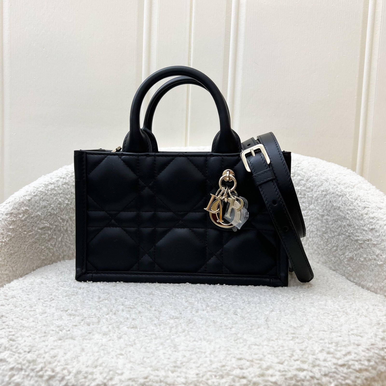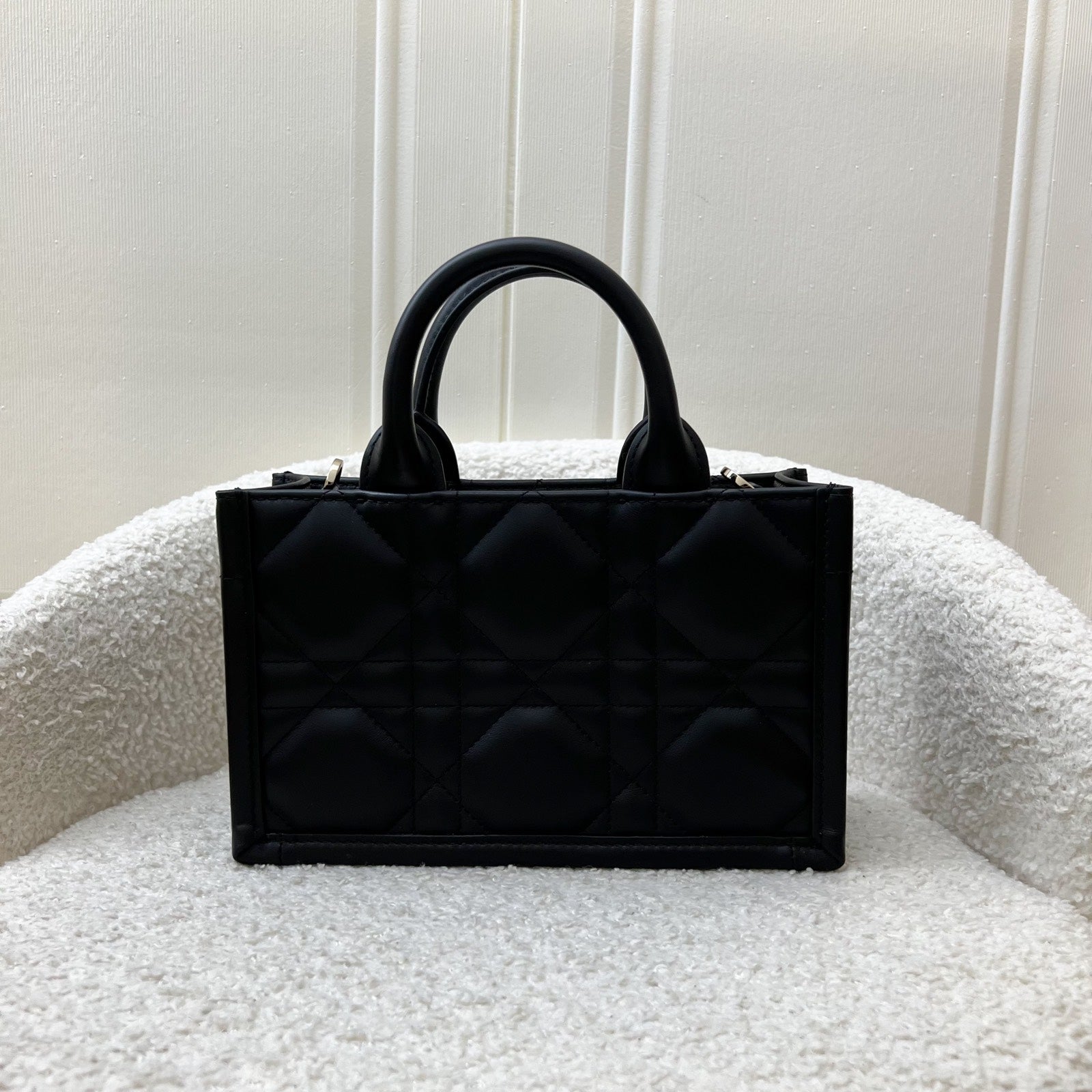 Dior Mini Book Tote in Black Macrocannage Lambskin and LGHW (Model: S5573OWHP)