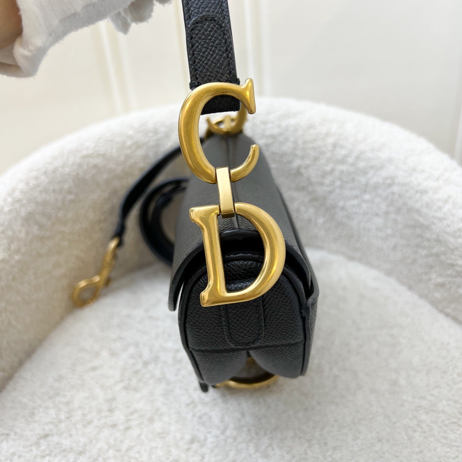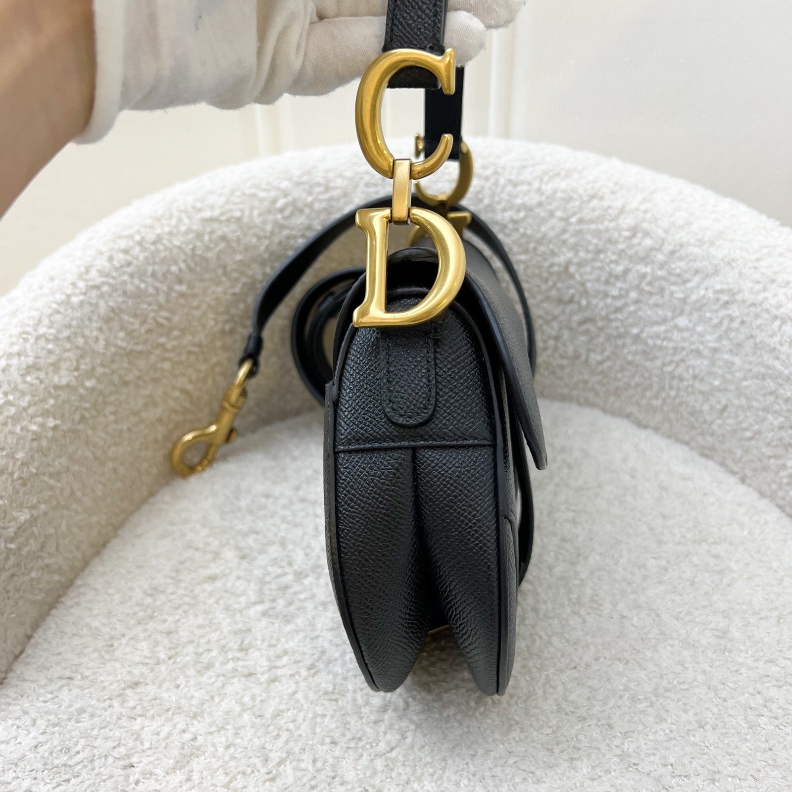 Dior Mini Saddle Bag In Black Grained Calfskin and GHW (Newer Version with Strap)