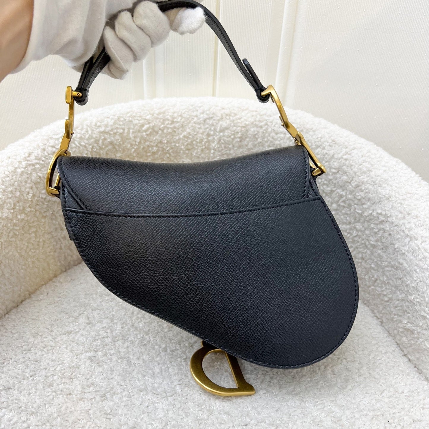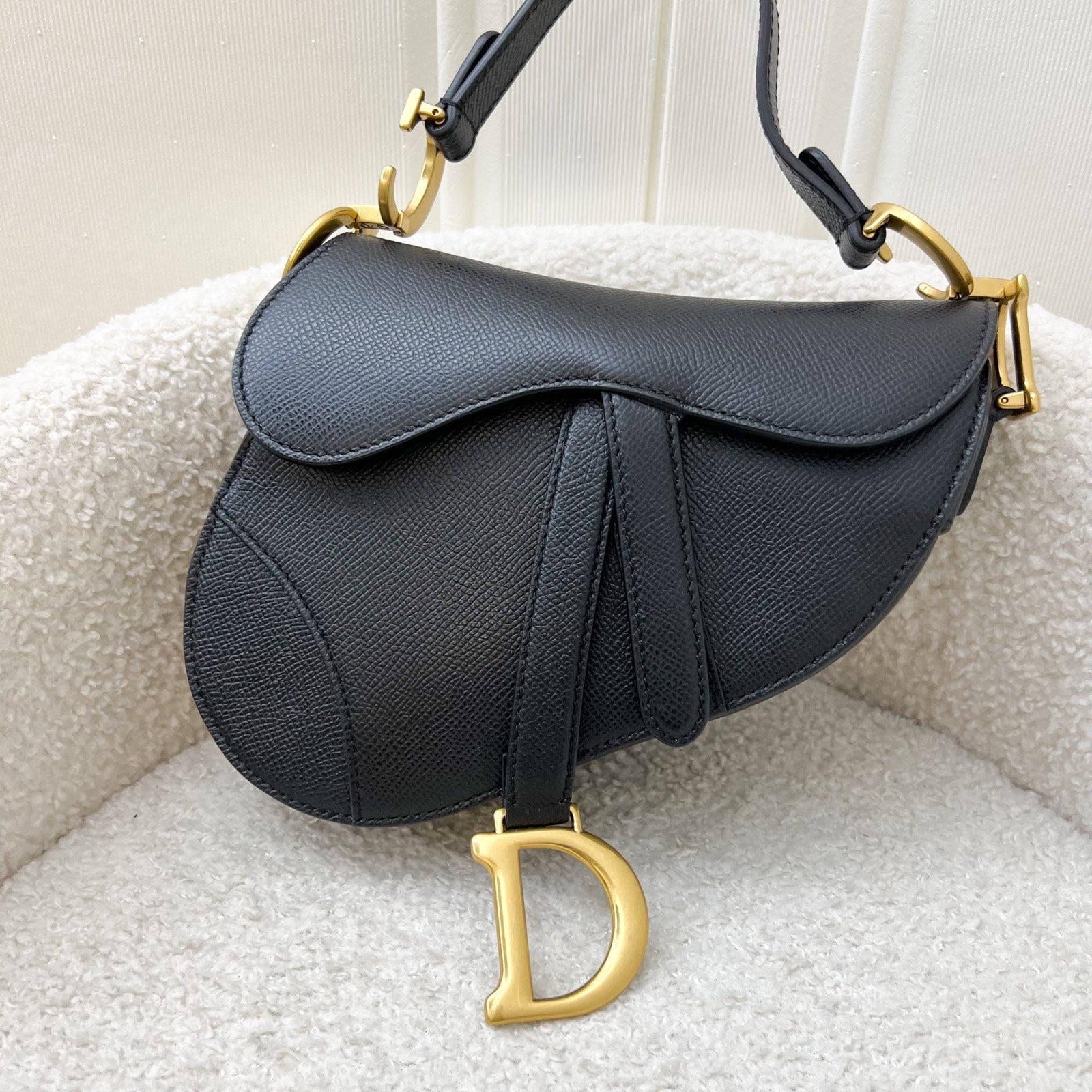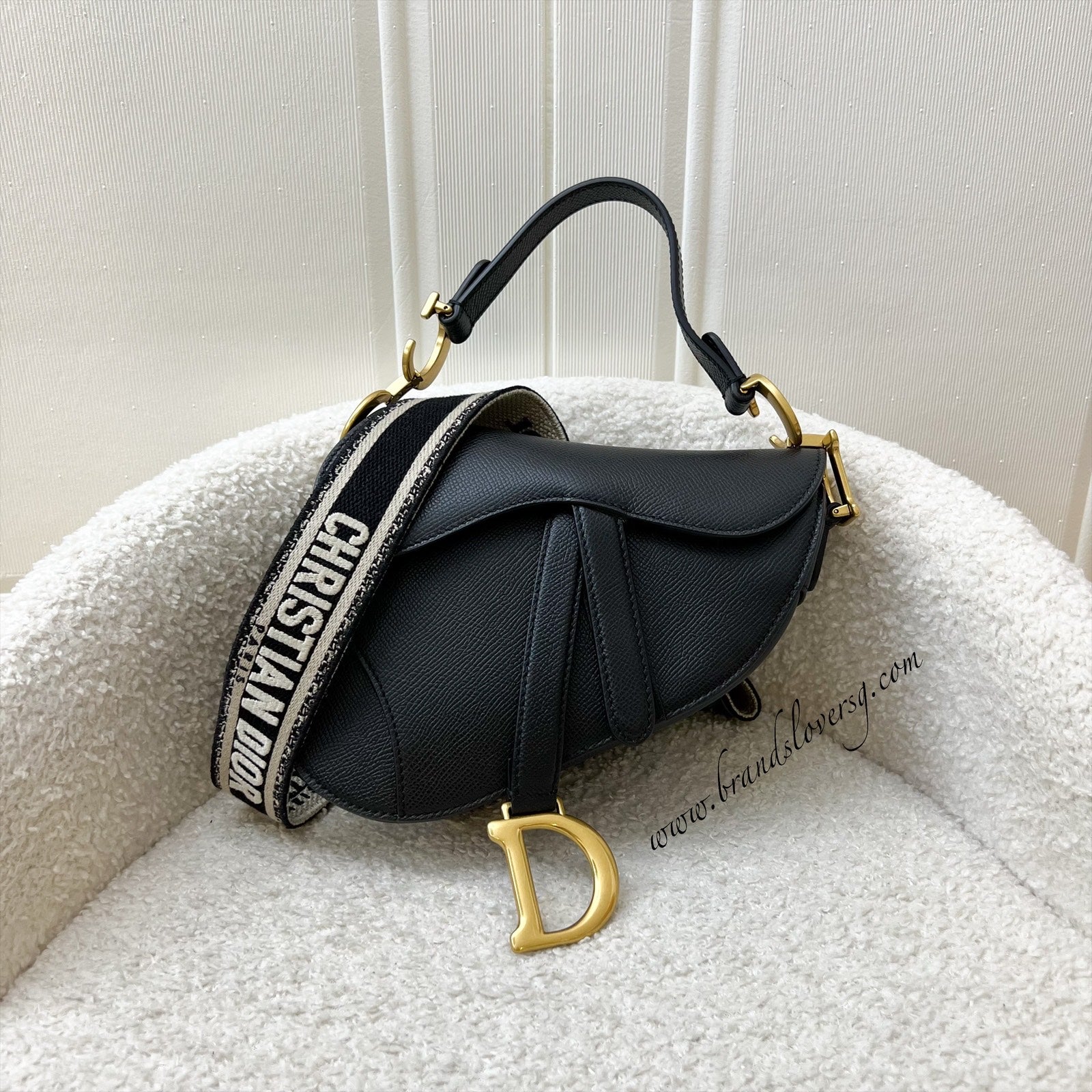 Dior Mini Saddle Bag In Black Grained Calfskin and GHW, with Additional Canvas Adjustable Strap (Model: M0447CBAA)