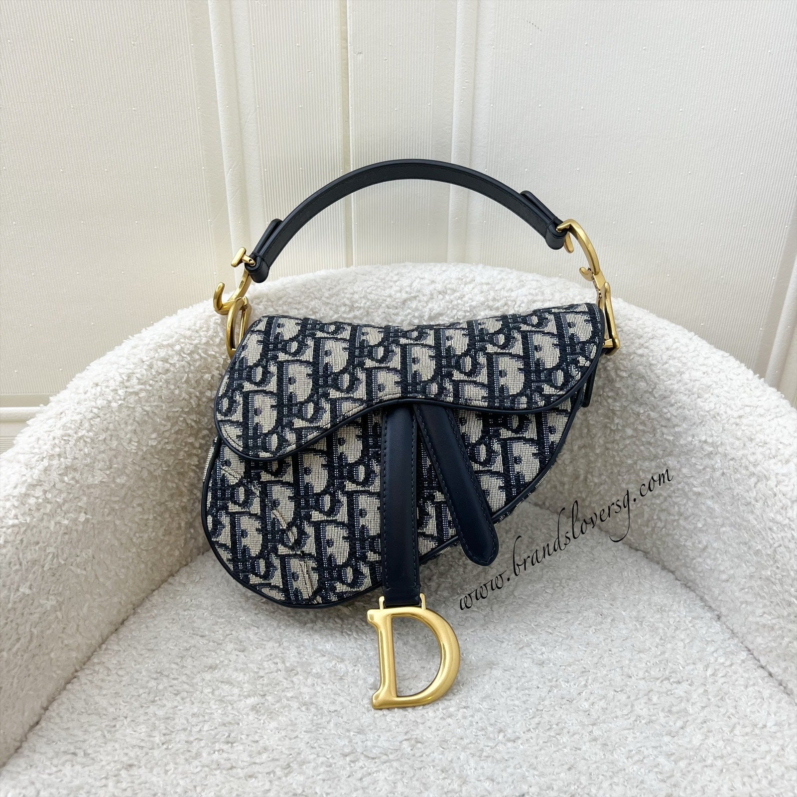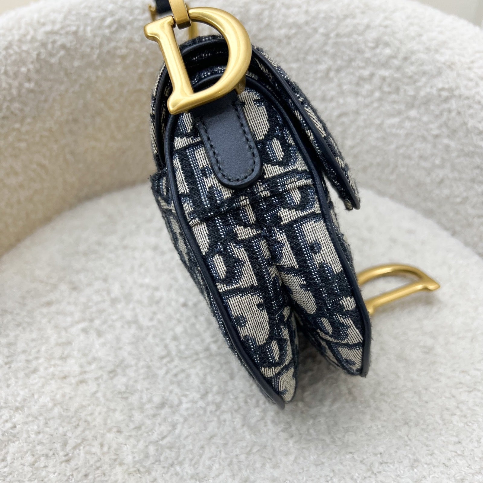 Dior Mini Saddle Bag in Blue Oblique Jacquard and AGHW