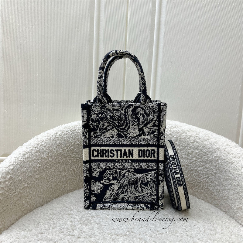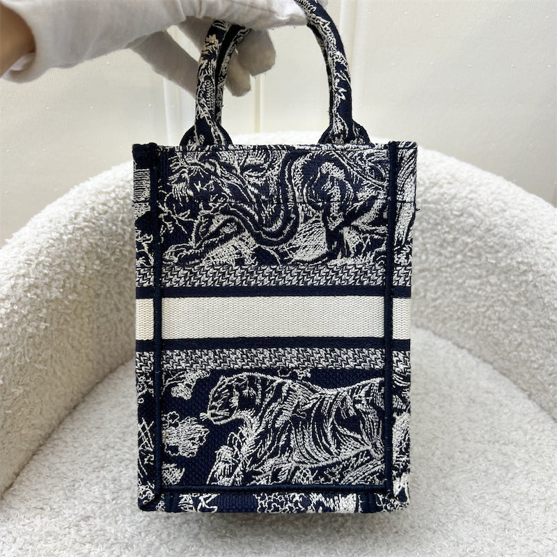 Dior Mini Vertical Book Tote in Blue Toile de Jouy Reverse Embroidery Canvas AGHW