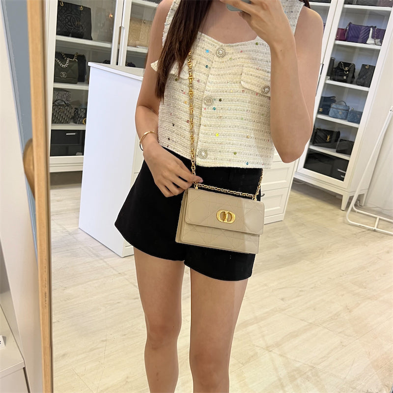 Dior Miss Caro Mini Flap Bag in Powder Beige Macrocannage Lambskin and GHW