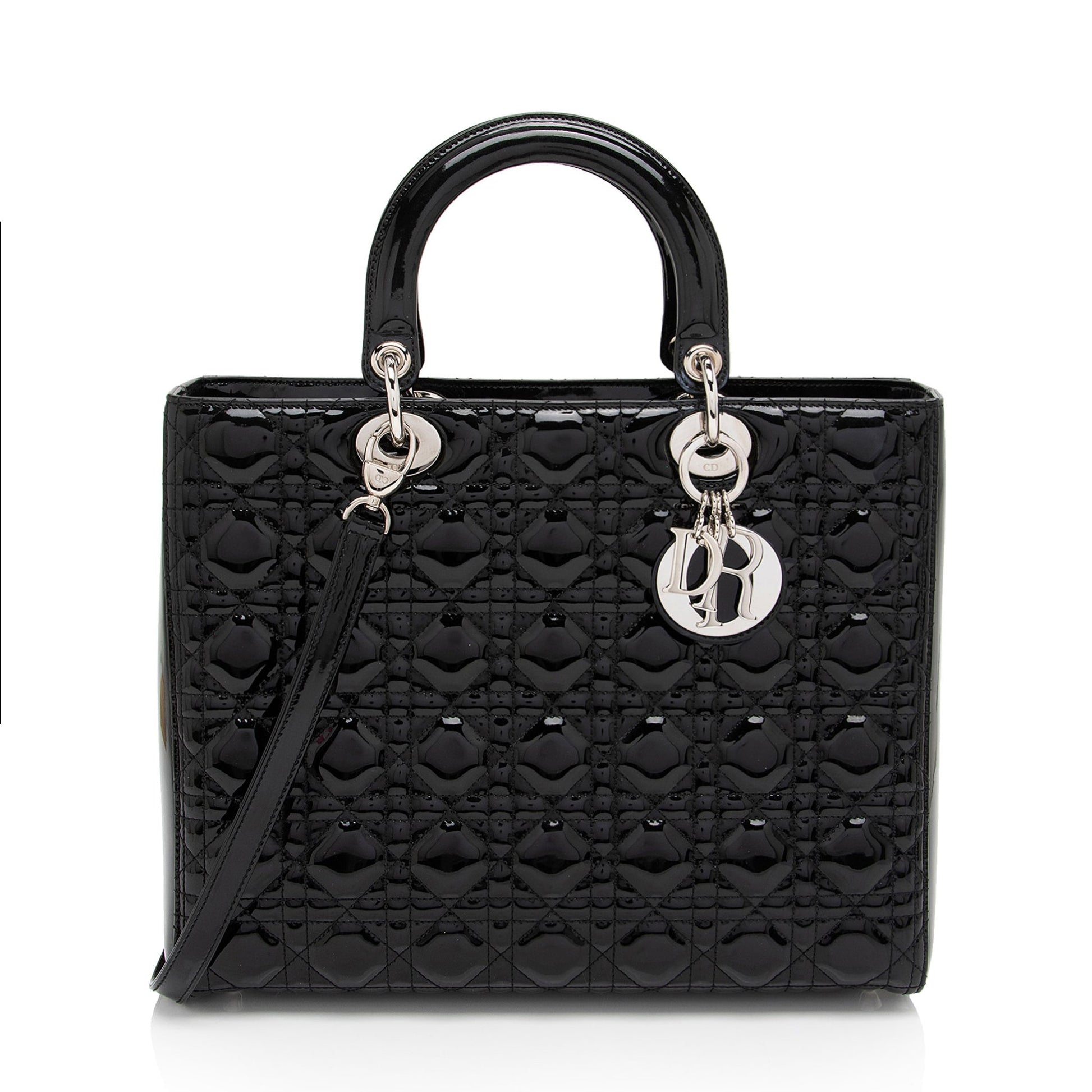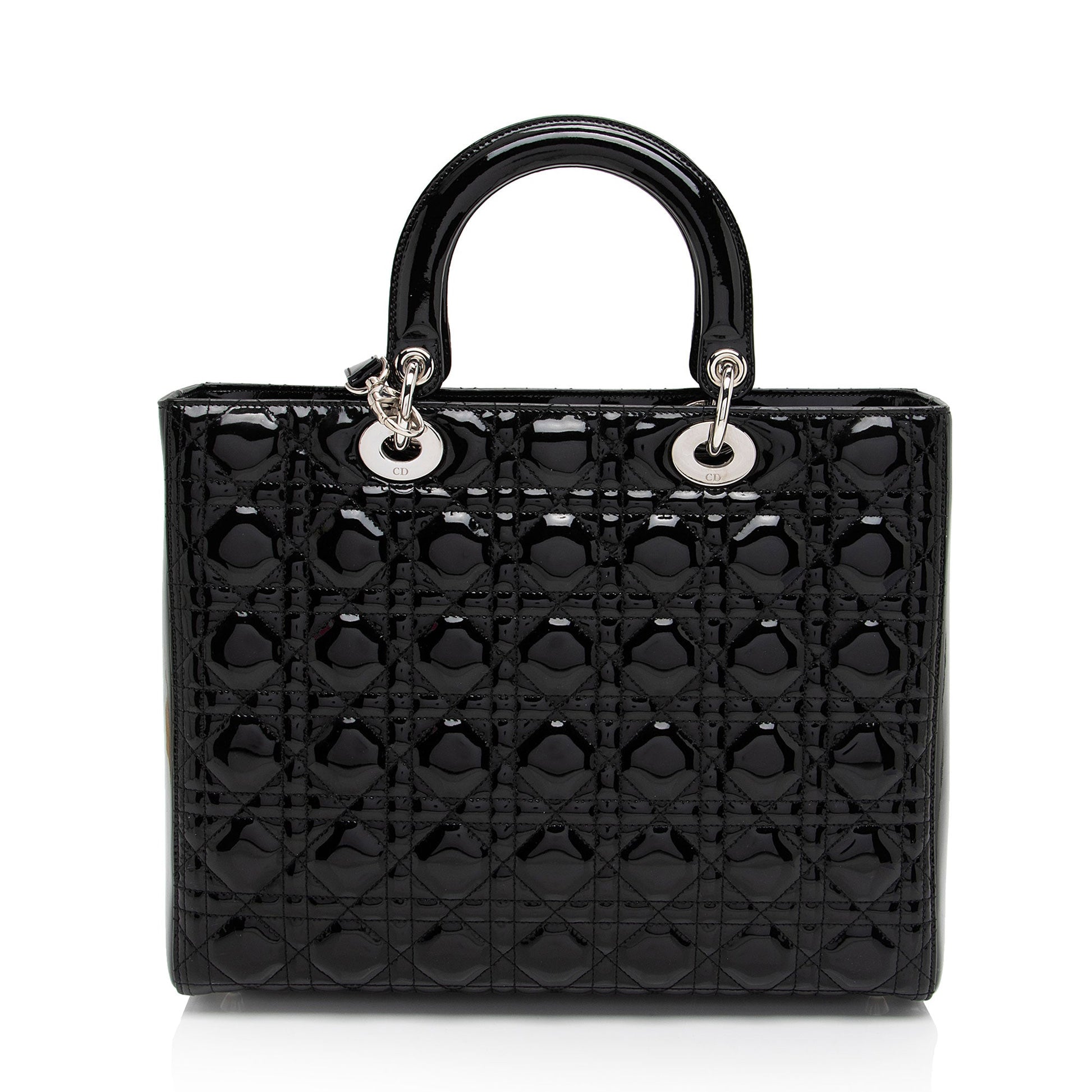 Dior Patent Leather Lady Dior Large Tote (SHF-DomNwp)