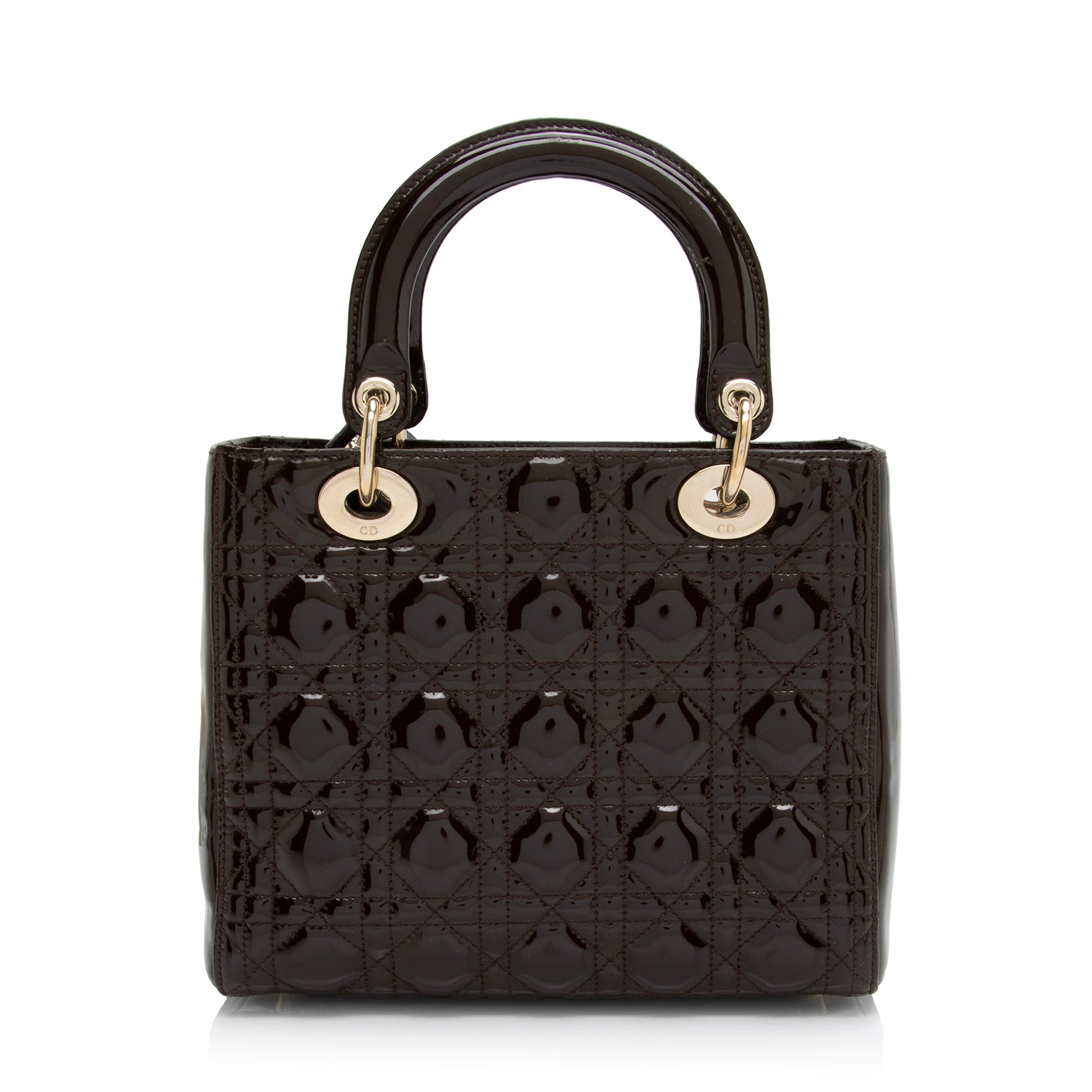 Dior Patent Leather Lady Dior Medium Tote (SHF-c6eBWA)