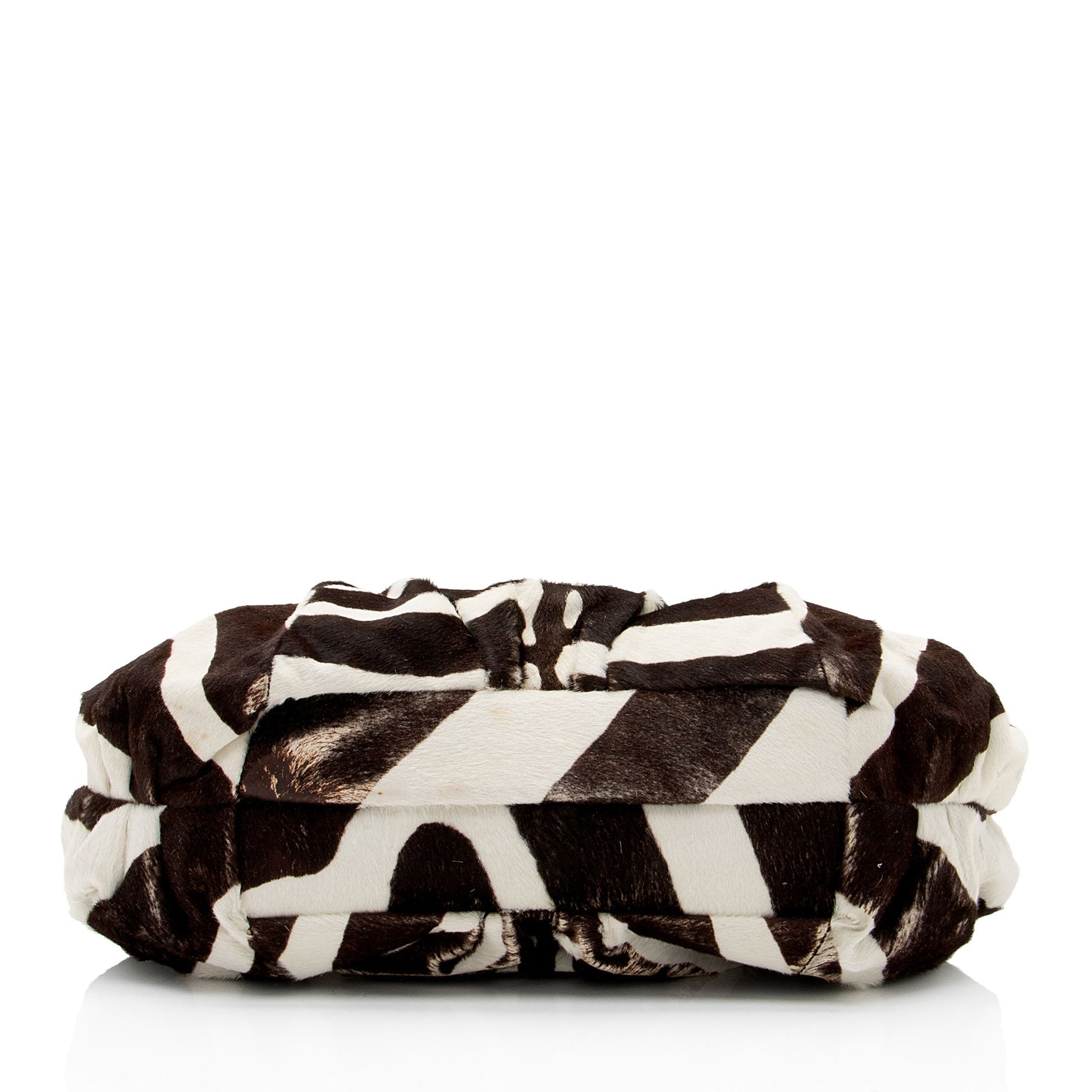 Condition Notes: Visible marks and missing pony hair throughout exterior. Minor creasing and scuffs throughout exterior leather trim. Surface scratches to hardware. Light wear throughout interior.