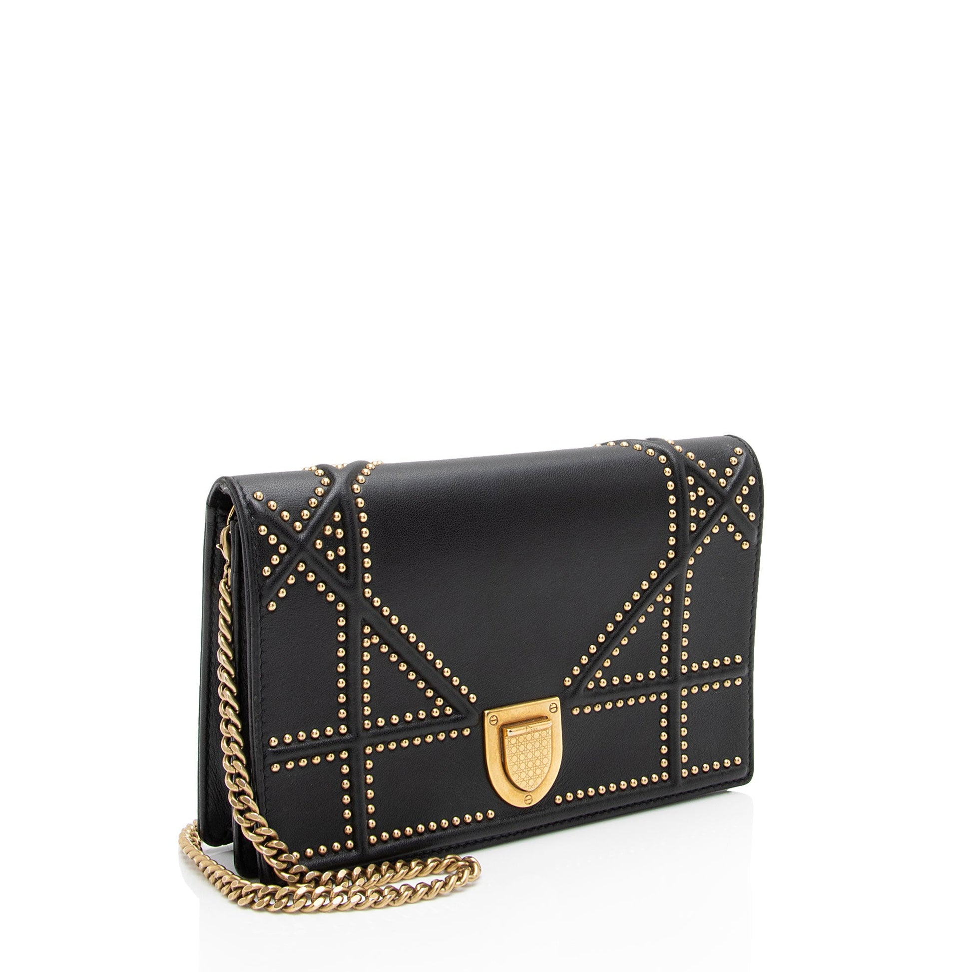 Dior Calfskin Studded Diorama Wallet on Chain Bag (SHF-c4jLp0)