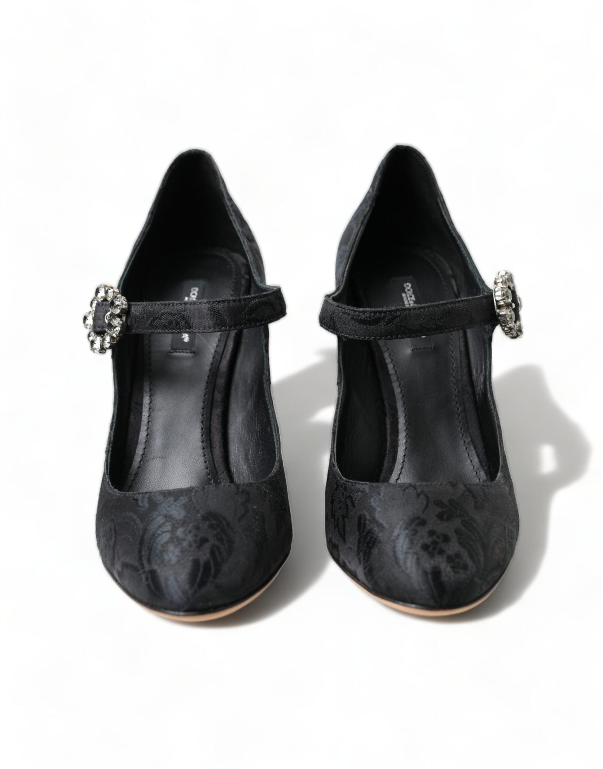 Dolce & Gabbana Black Brocade Mary Janes Heels Pumps Women's Shoes