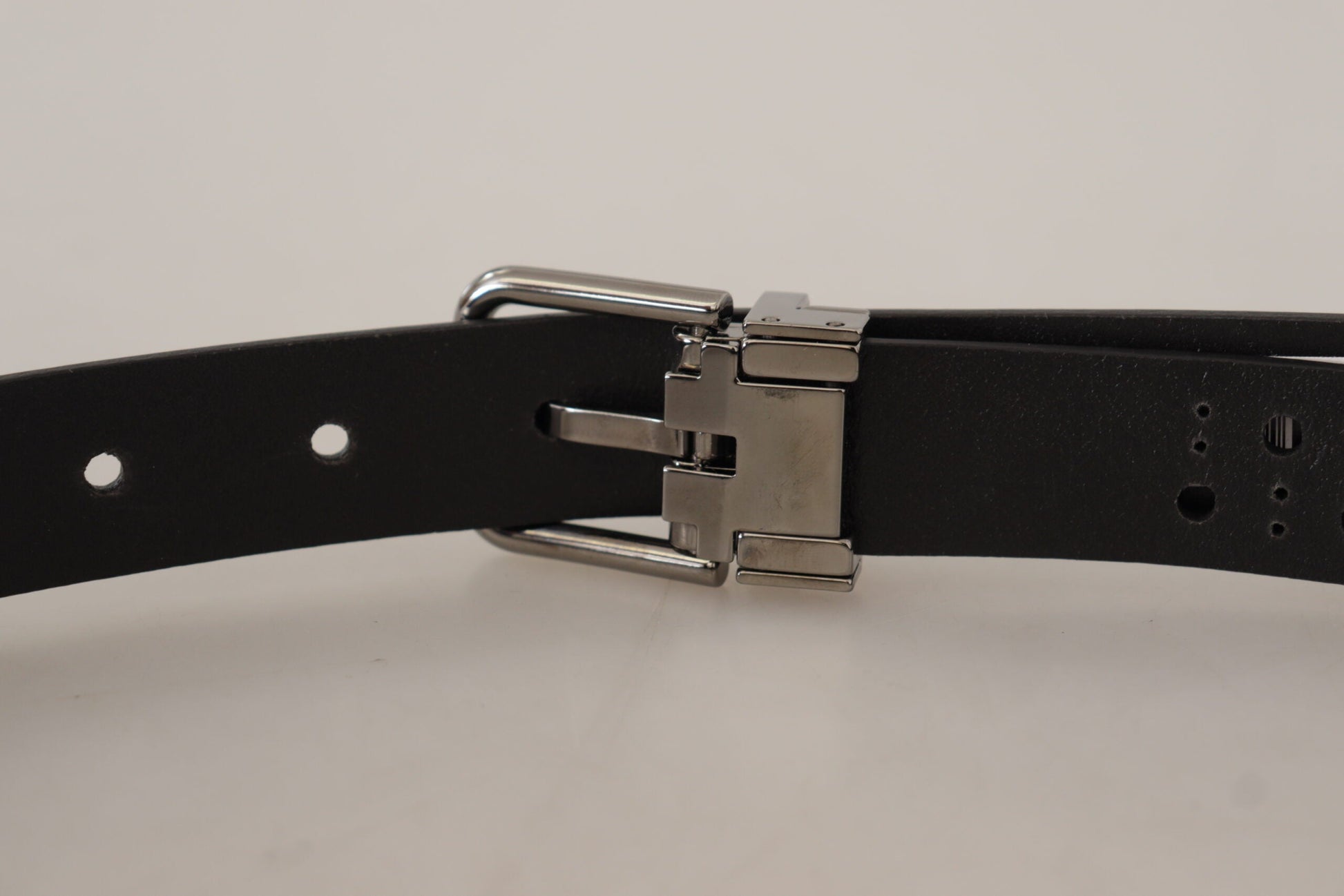 Dolce & Gabbana Black Calf Leather Perforated Metal Buckle Men's Belt