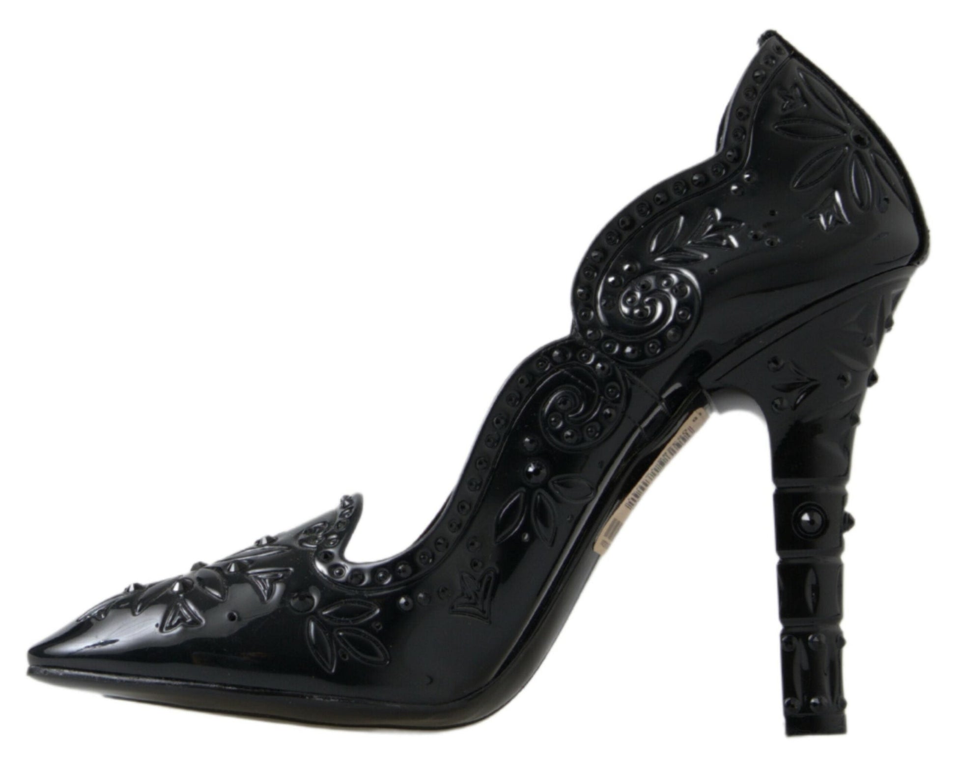 Dolce & Gabbana Black CINDERELLA Floral Crystal Heels Women's Shoes
