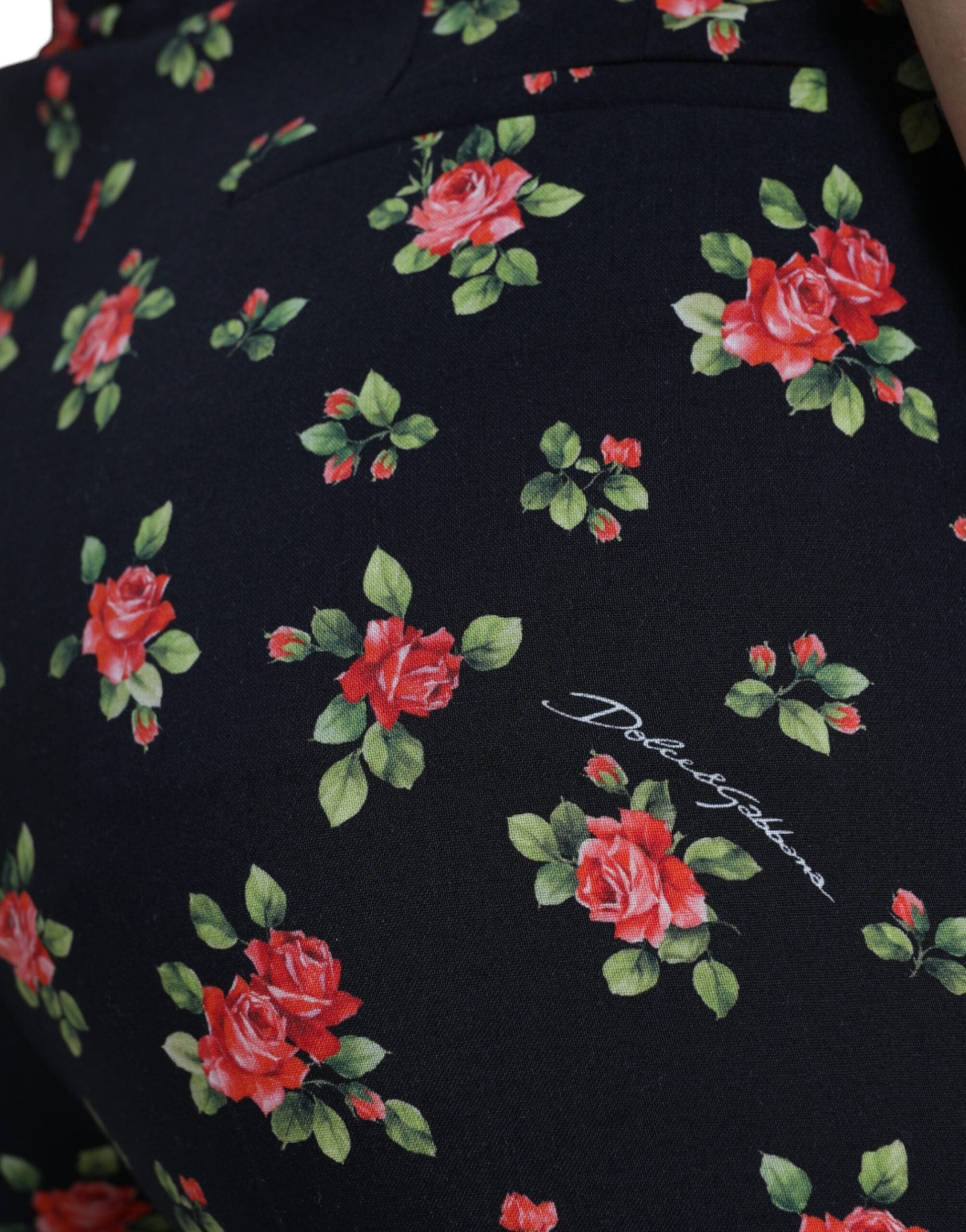 Dolce & Gabbana Black Floral Wool High Waist Tapered Women's Pants