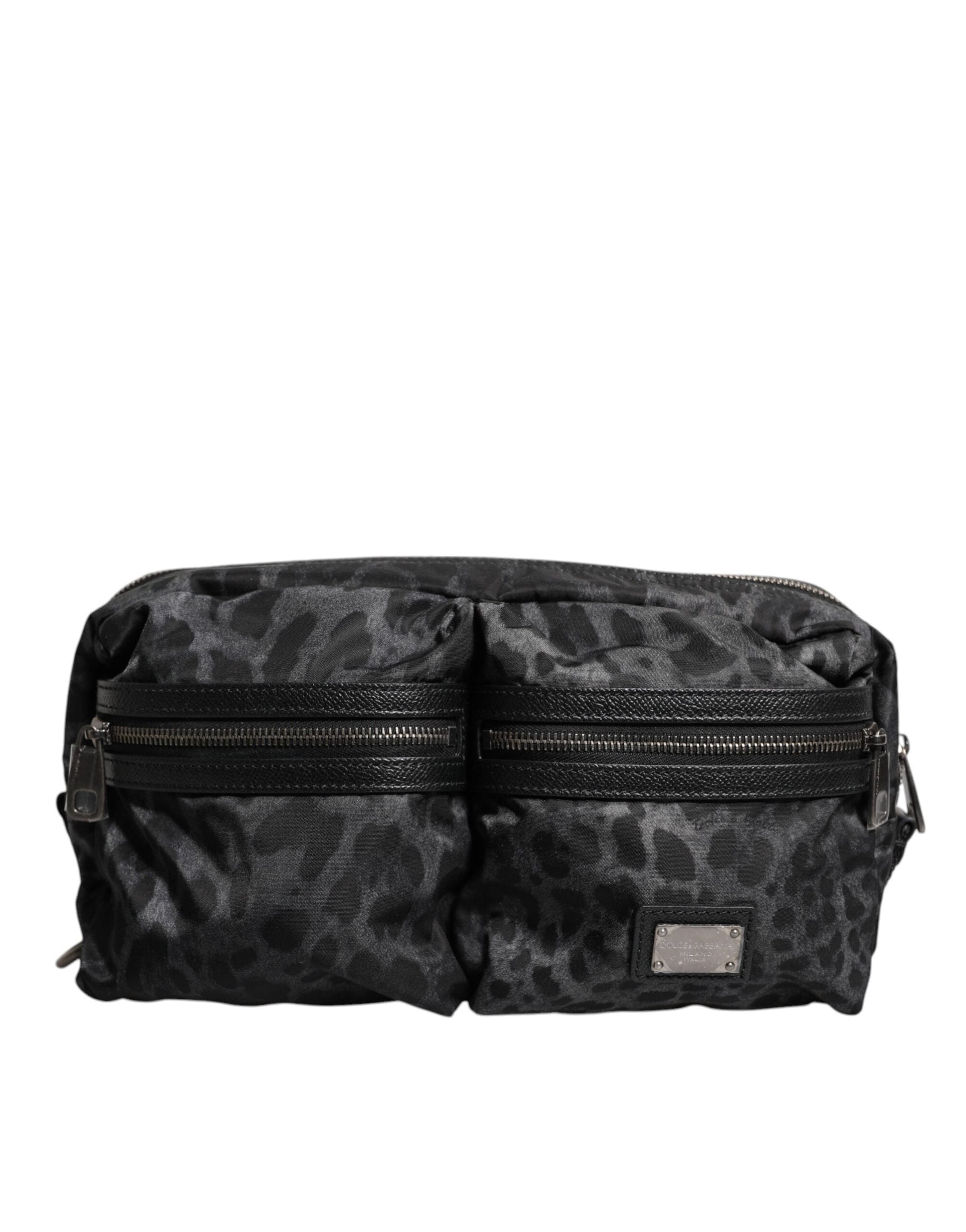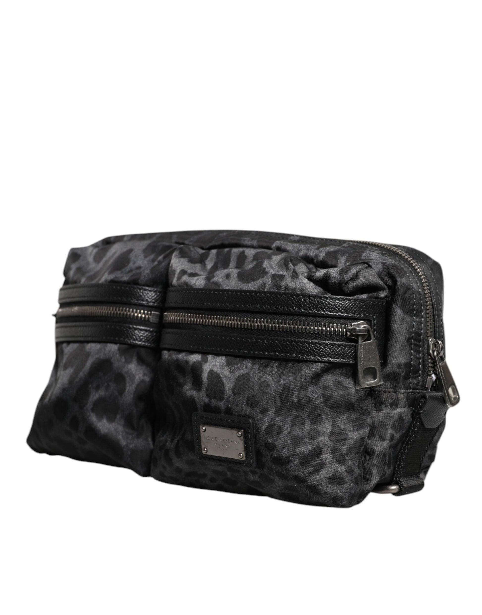 Dolce & Gabbana Black Gray Leopard DG Logo Belt Waist Fanny Pack Men's Bag