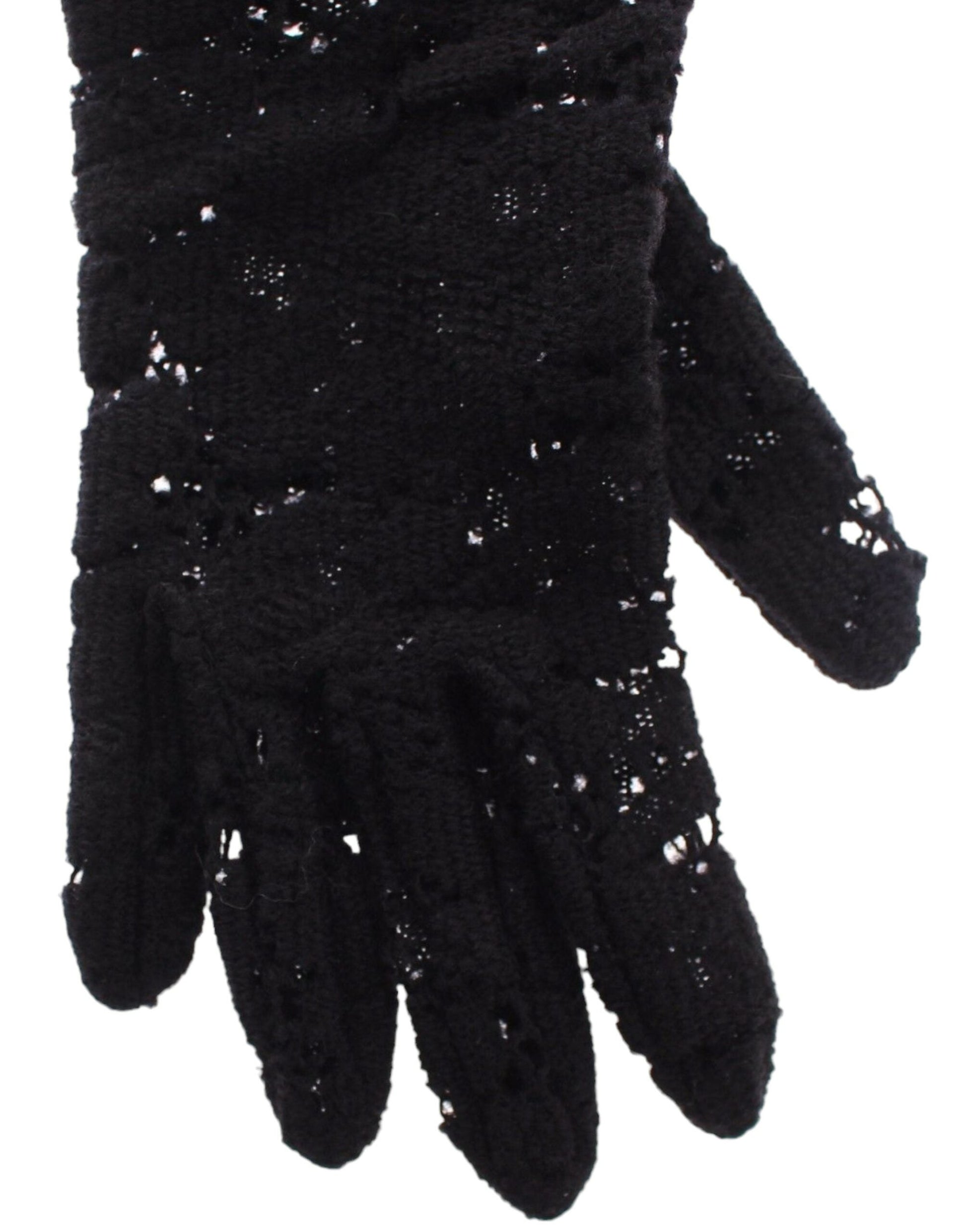 Dolce & Gabbana Black Lace Wool Lambskin Fur Elbow Women's Gloves