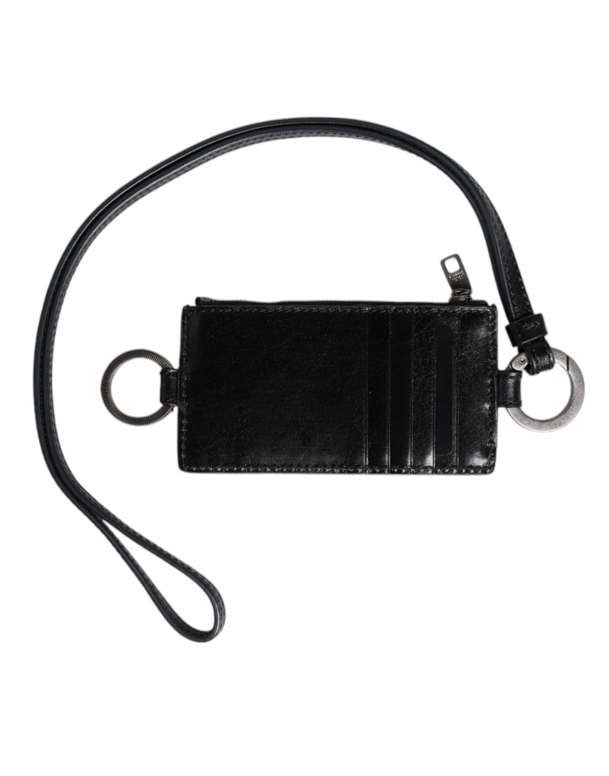 Dolce & Gabbana Black Leather Logo Embossed Lanyard Card Holder Men's Wallet