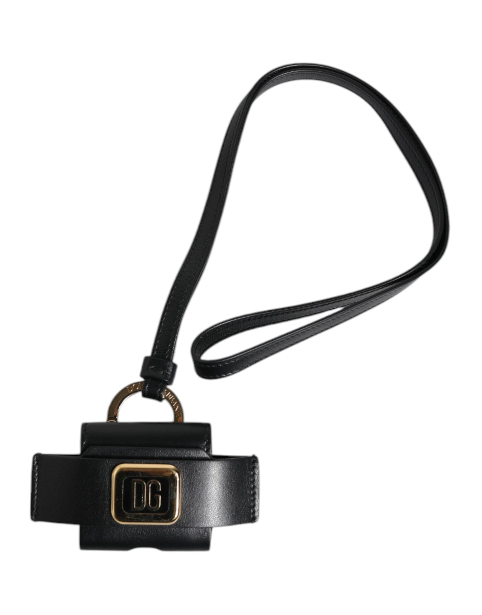 Dolce & Gabbana Black Leather Strap Gold Metal Logo Plaque Airpods Men's Case