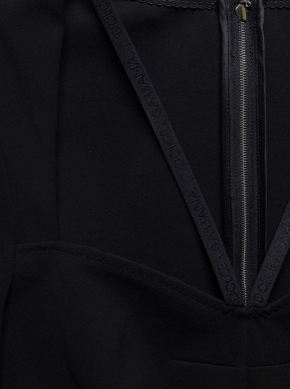 Dolce & Gabbana Women Black Mini Dress With Short Sleeves And Neckline Detail In Viscose Blend Woman