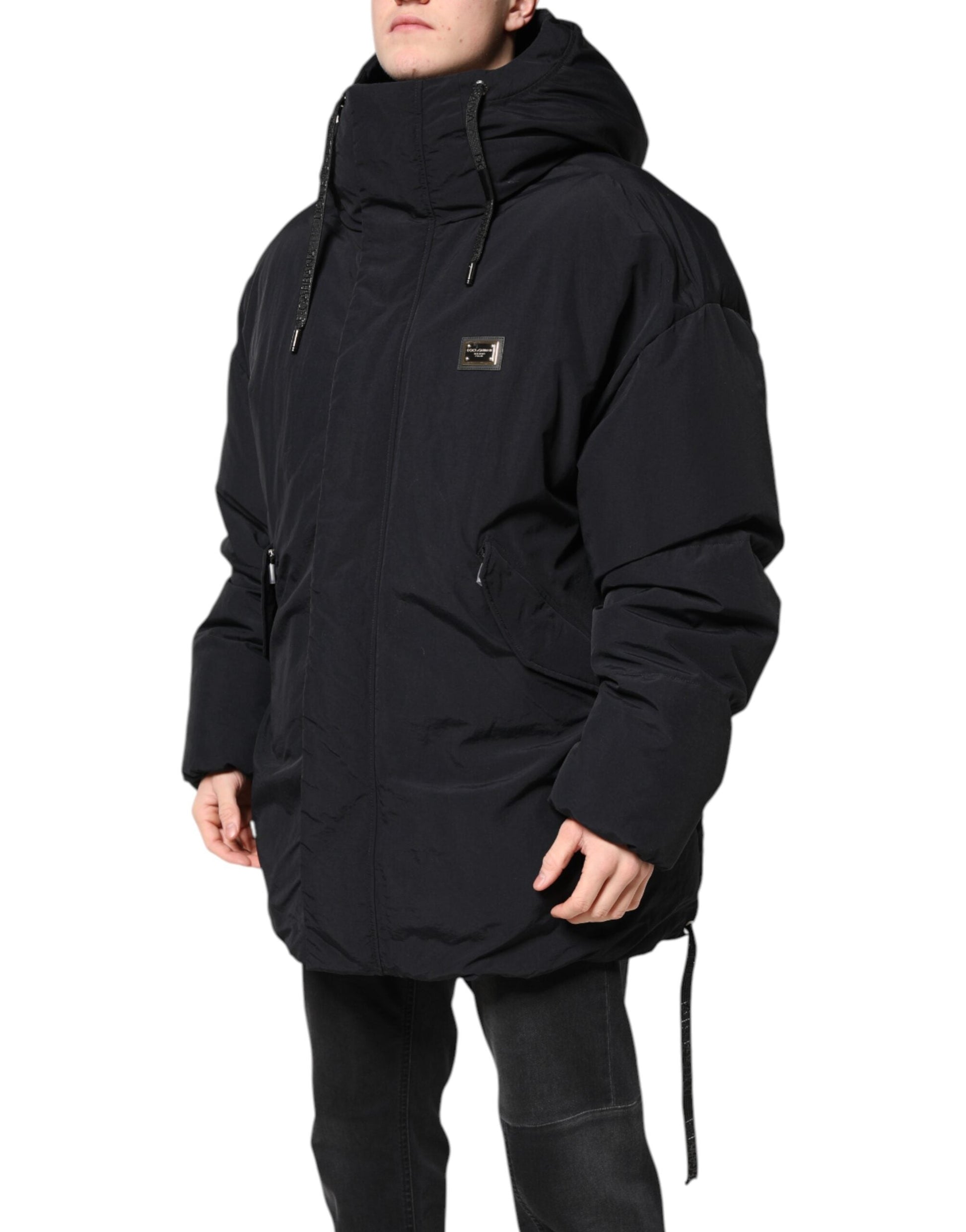 Dolce & Gabbana Black Nylon Full Zip Hooded Parka Men's Jacket
