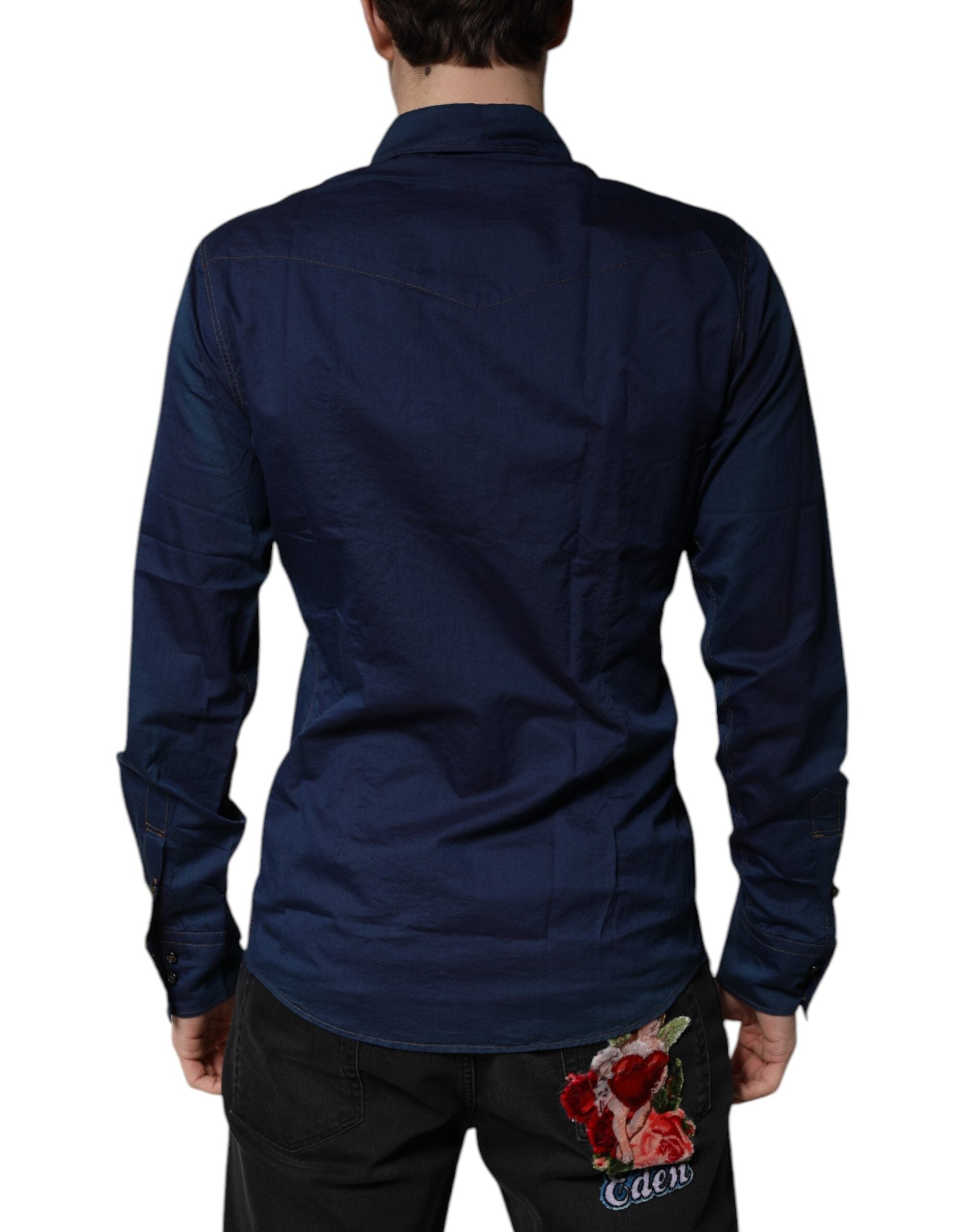 Dolce & Gabbana Dark Blue Cotton GOLD Dress Formal Men's Shirt ()