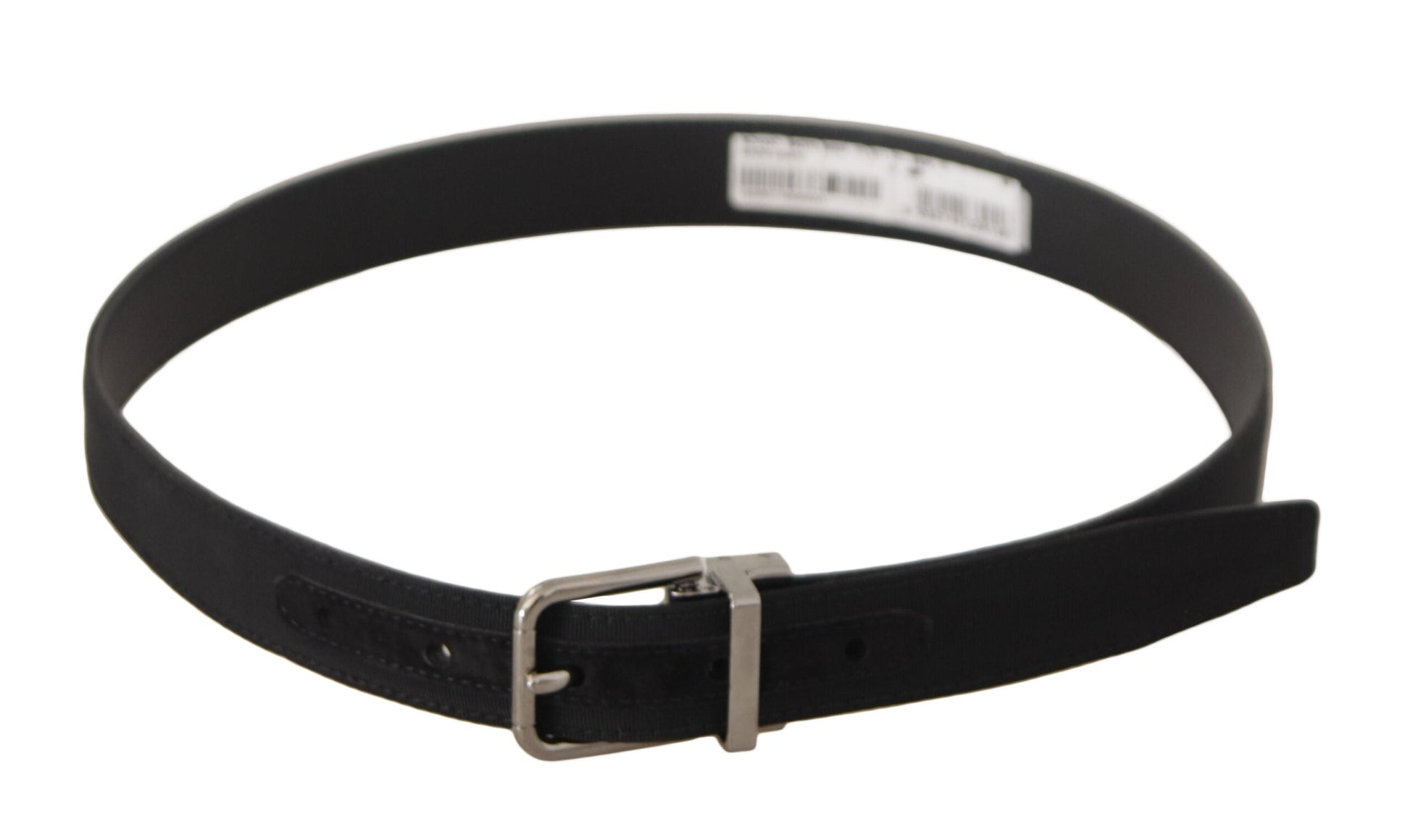 Dolce & Gabbana Black Canvas Leather Silver Tone Metal Buckle Women's Belt