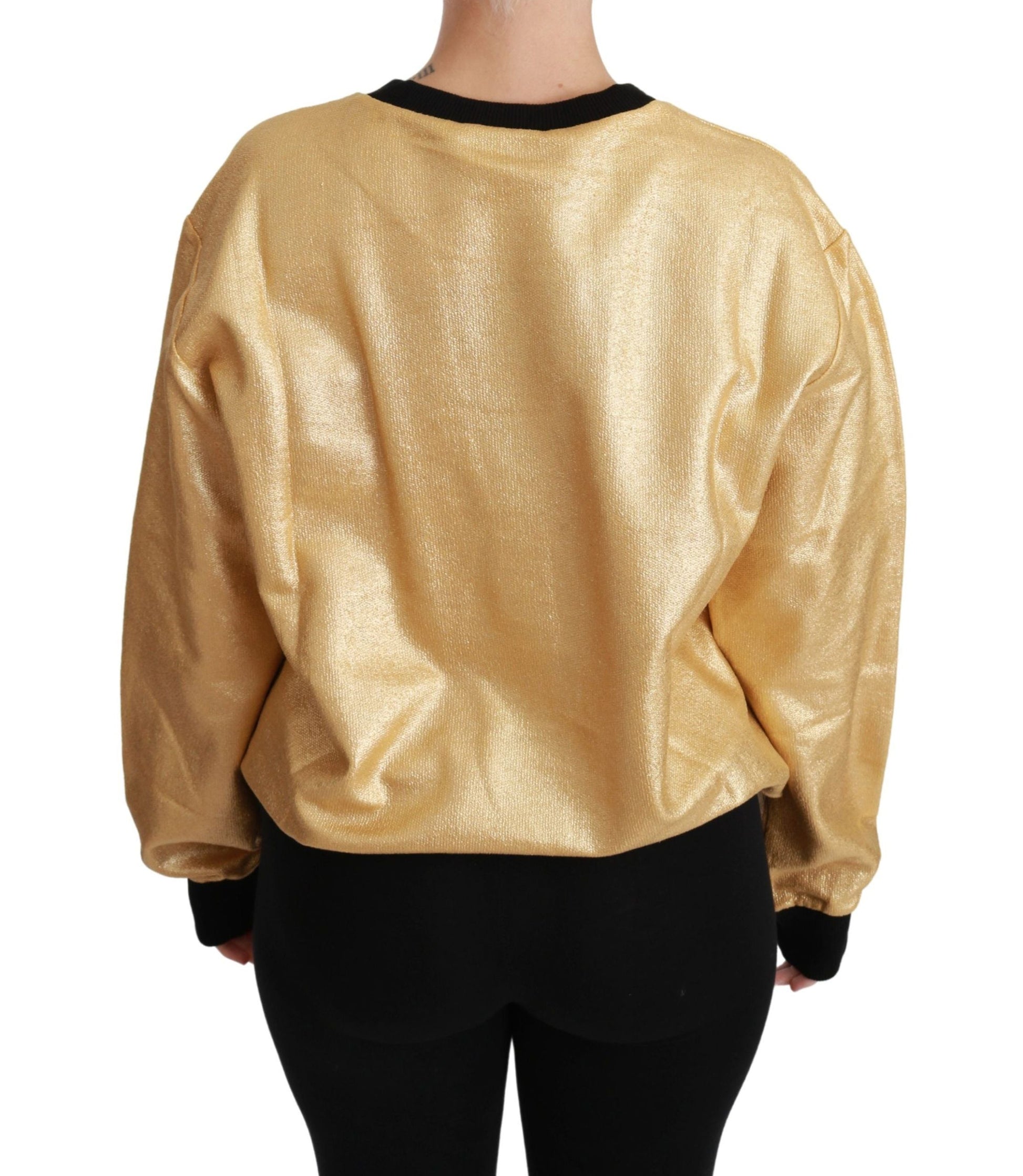Dolce & Gabbana Gold Cotton Crewneck Pullover Women's Sweater