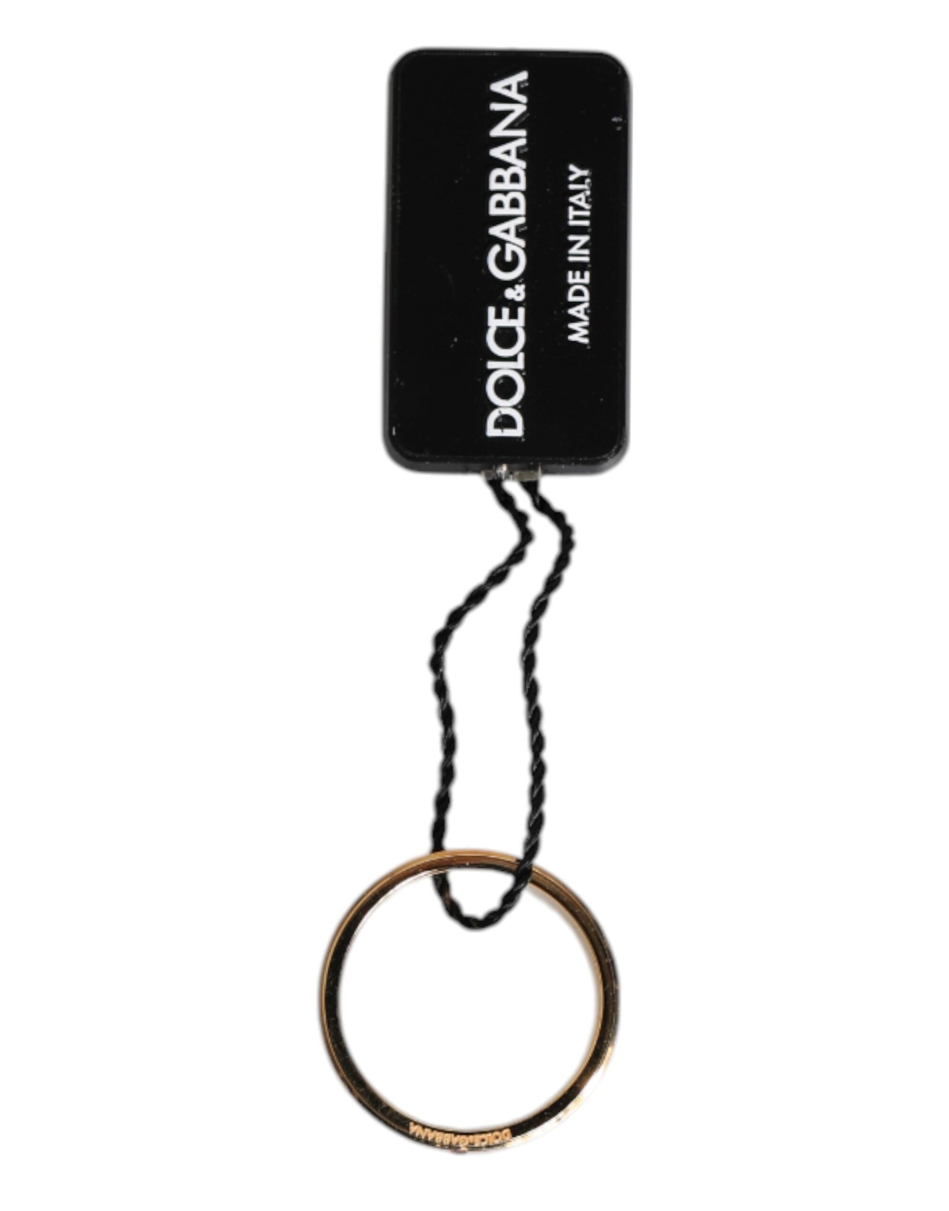 Dolce & Gabbana Gold Tone Brass Red Crystal DG Logo Men's Ring