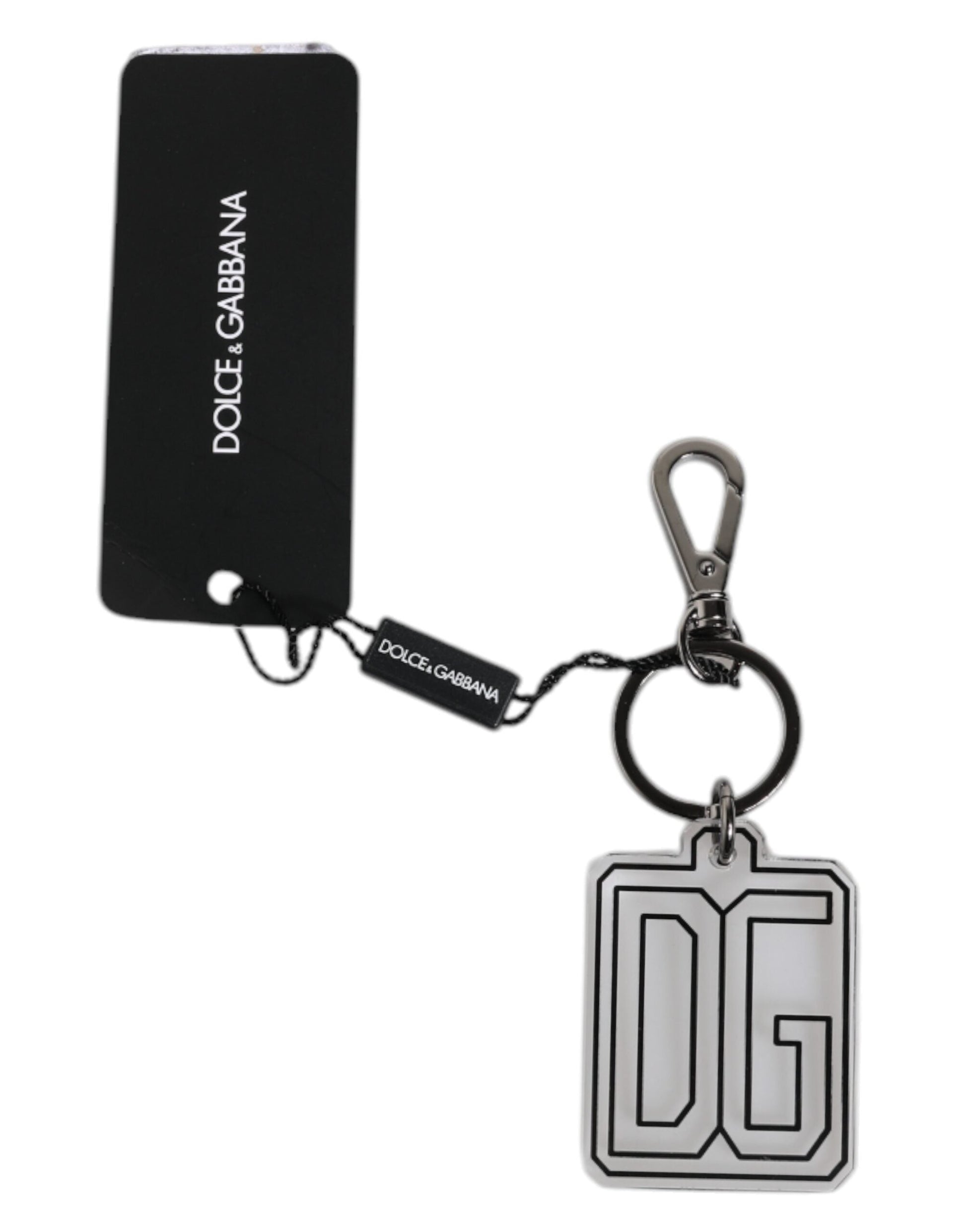 Dolce & Gabbana Gray Black DG Rubber Logo Silver Men's Keychain Men's Keyring