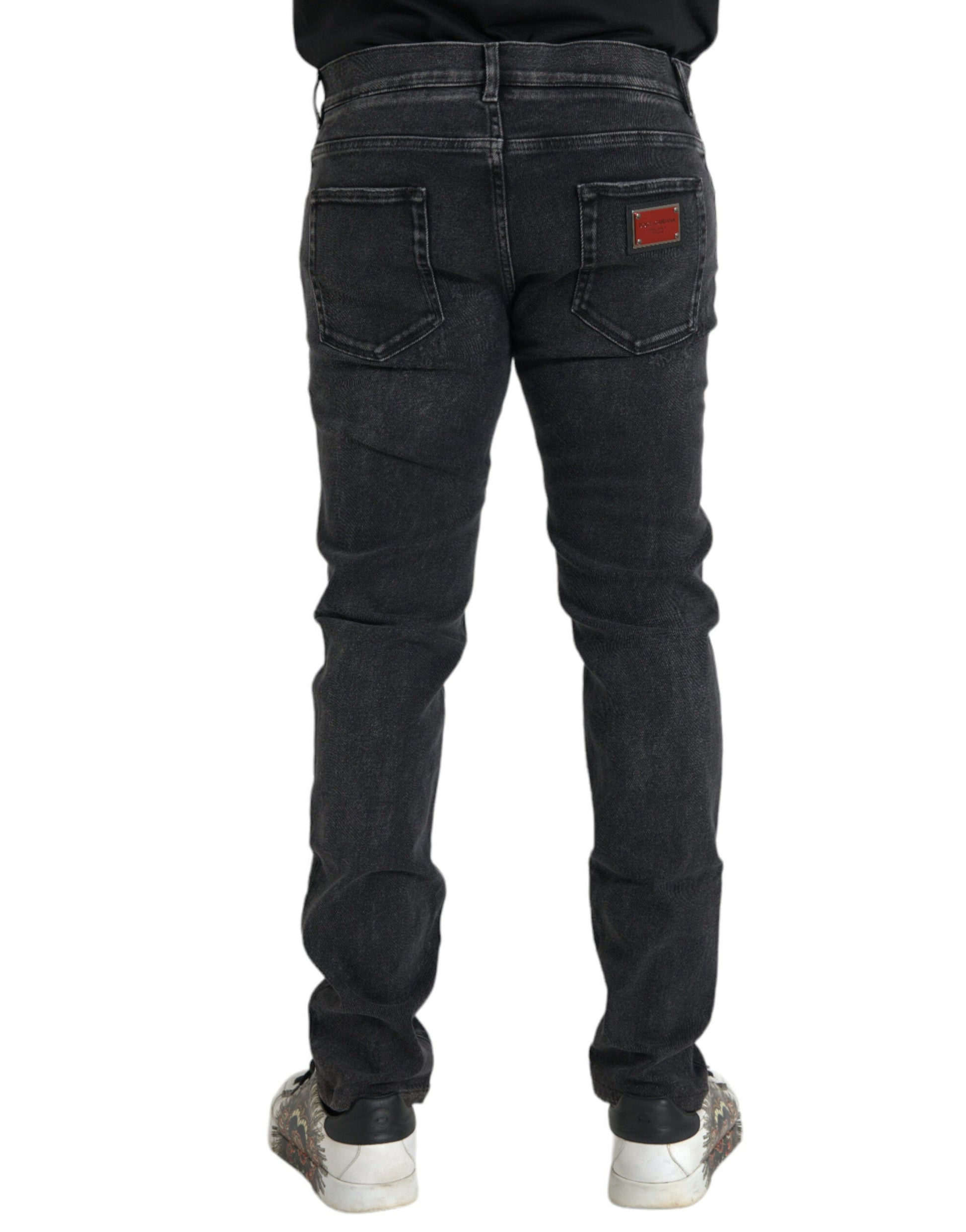 Dolce & Gabbana Gray Cotton Stretch Skinny Denim Logo Men's Jeans